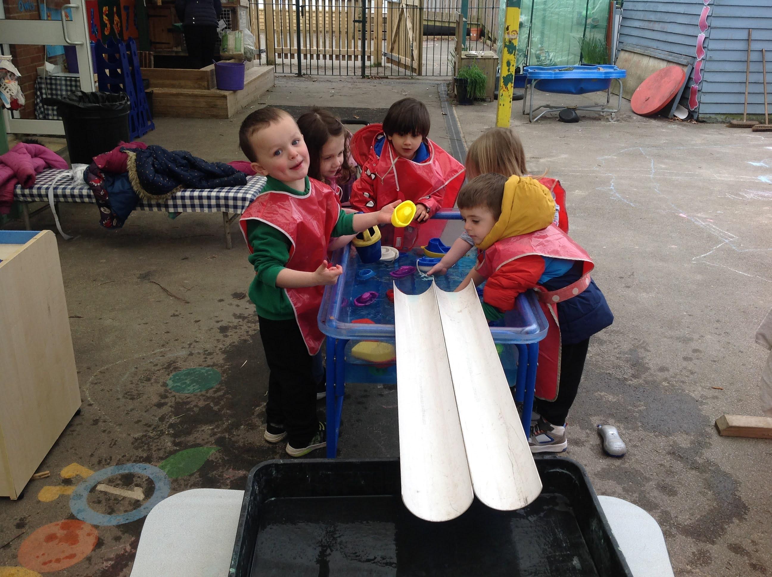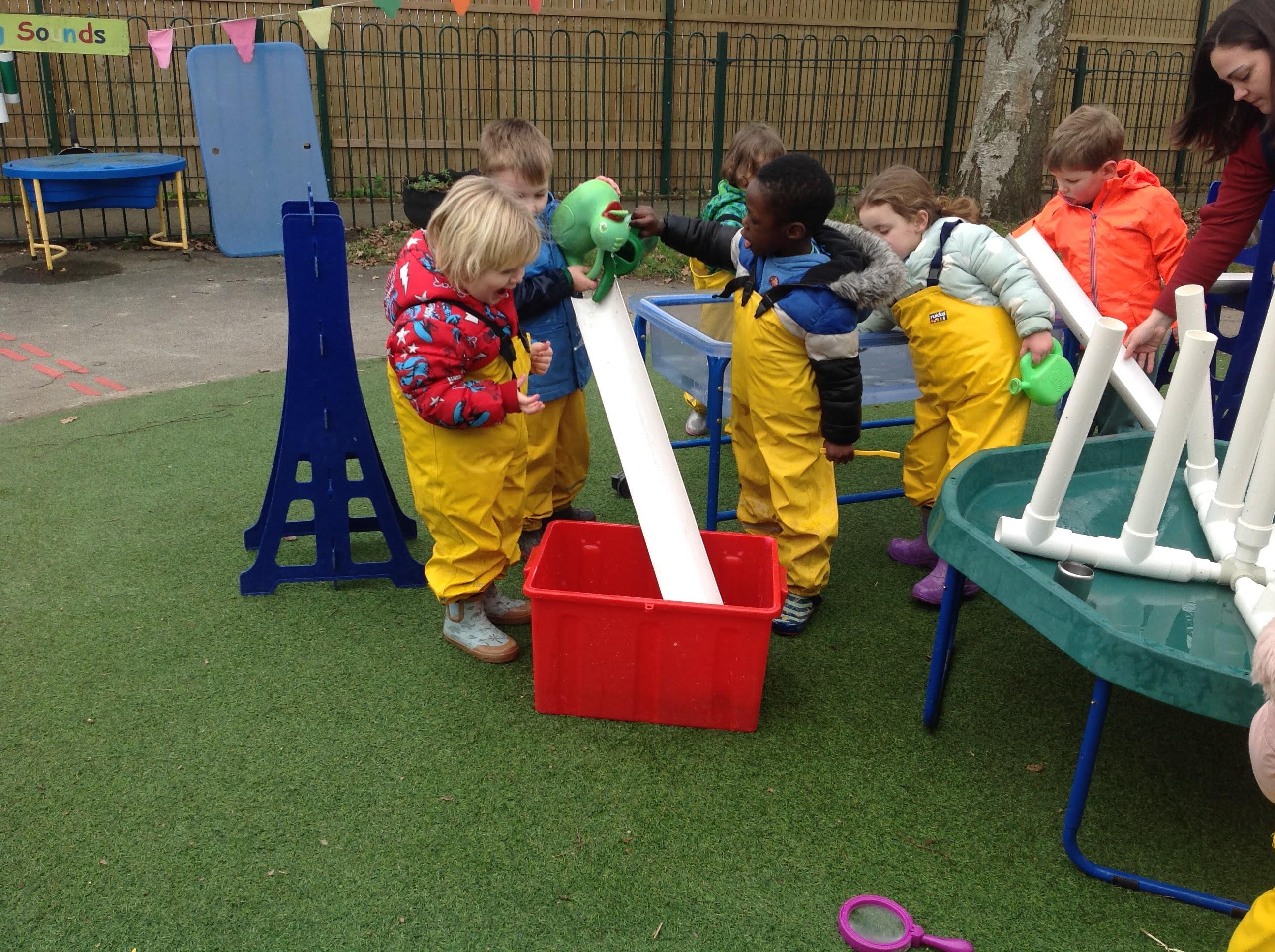 There was lots of fun when we used different watering cans to explore the water tray and tubes on Wednesday. We also wanted to see which items could float or sink.