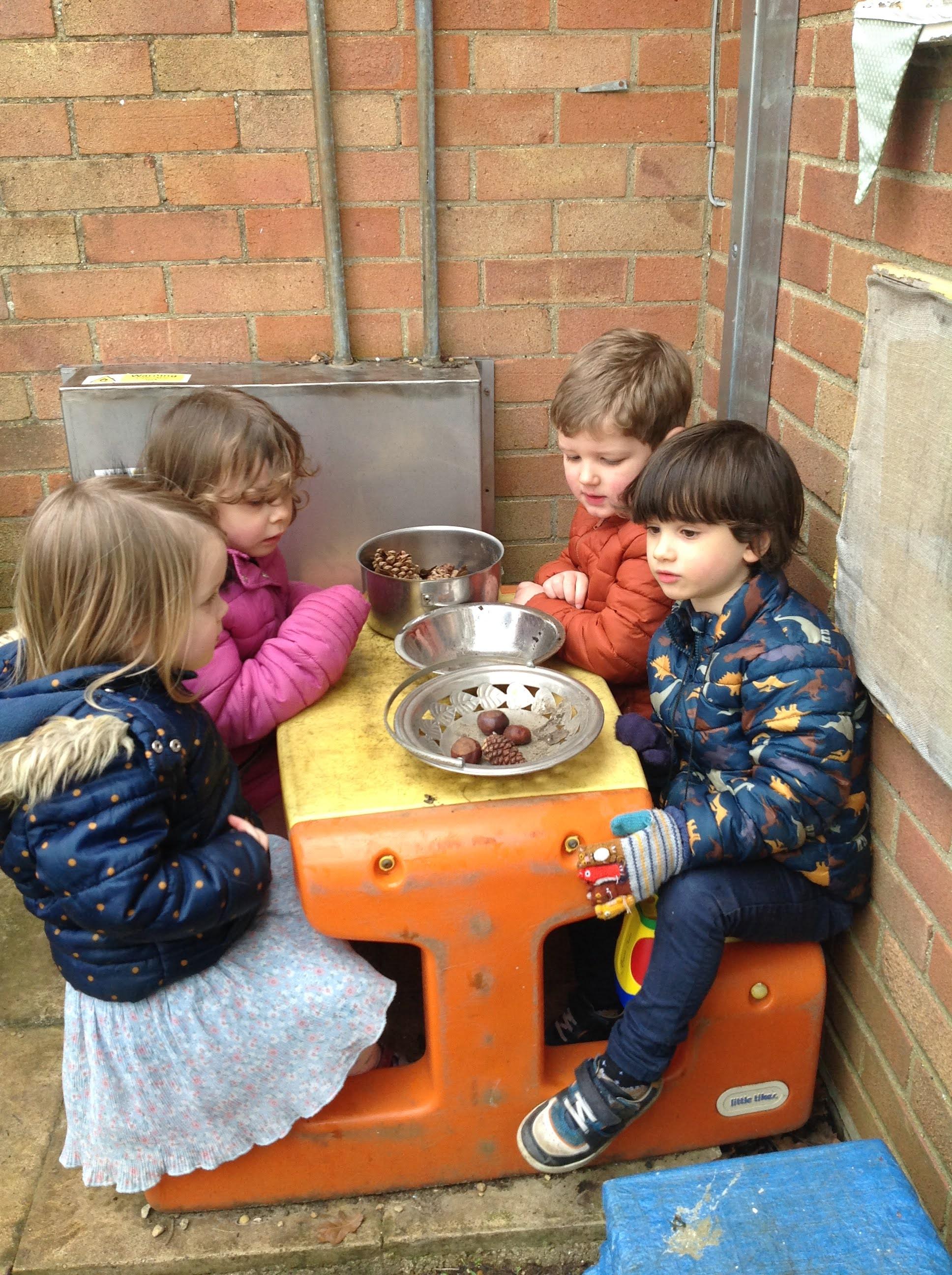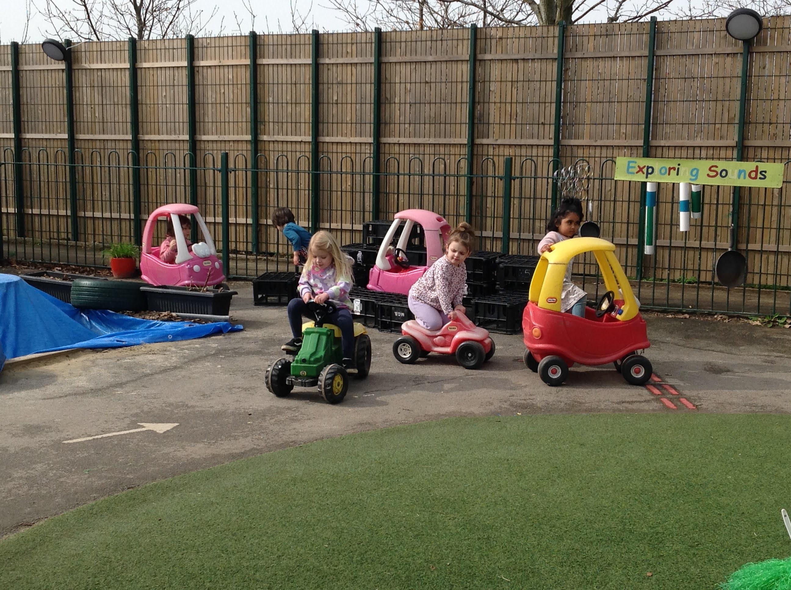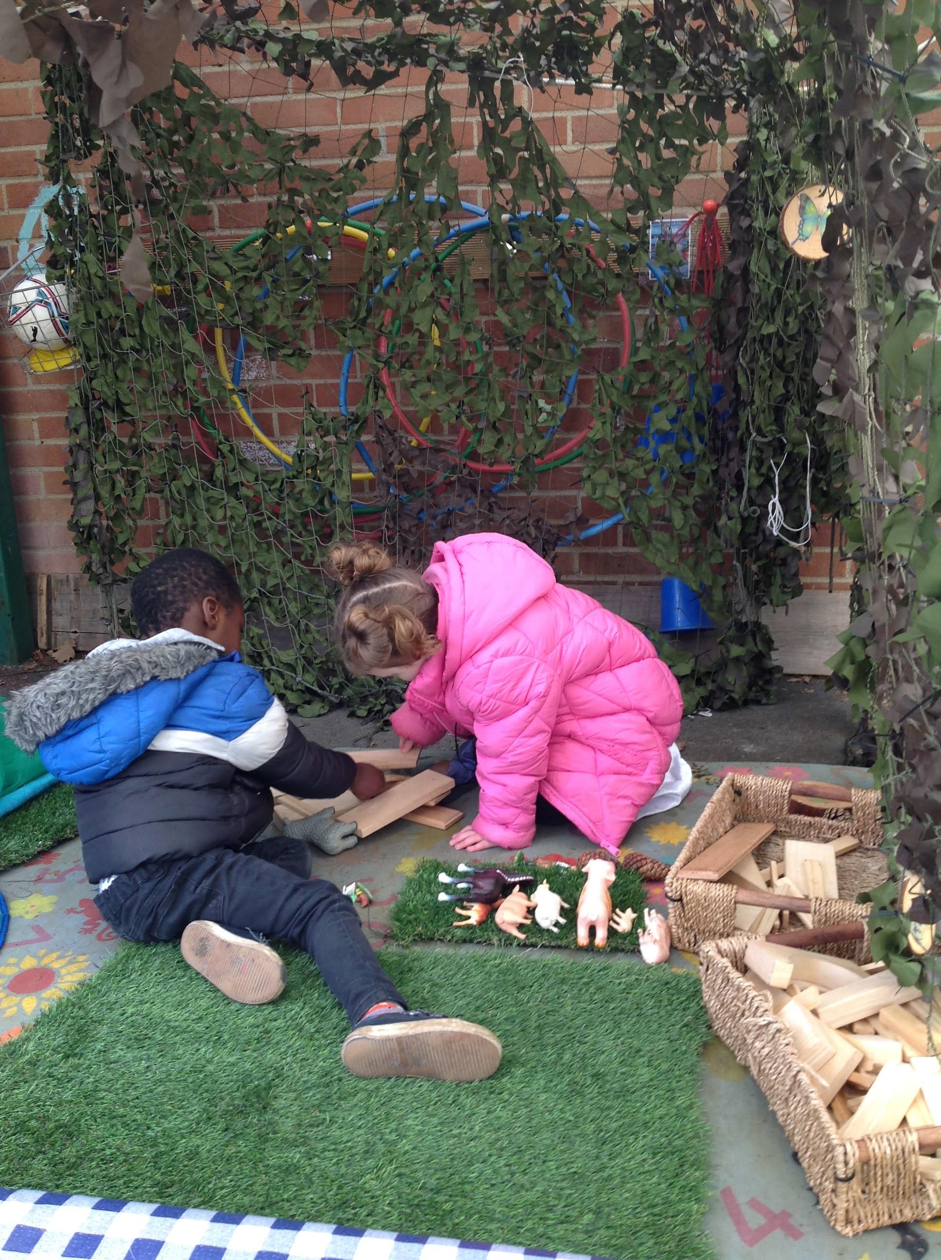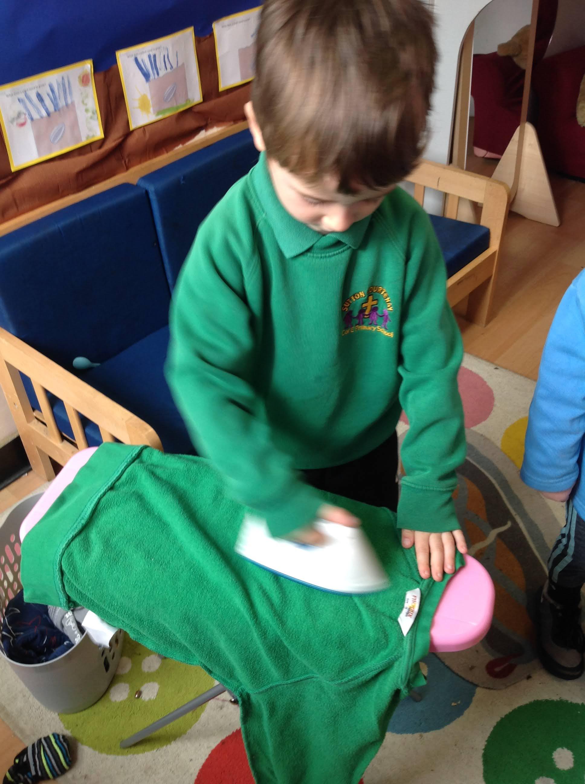 The Barn Owls showed how they worked together as a team to get the jobs completed, just like Farmer Duck had to do. This was the ironing and washing in the home corner. Outside they cleaned the cars and make meals in the garden kitchen.