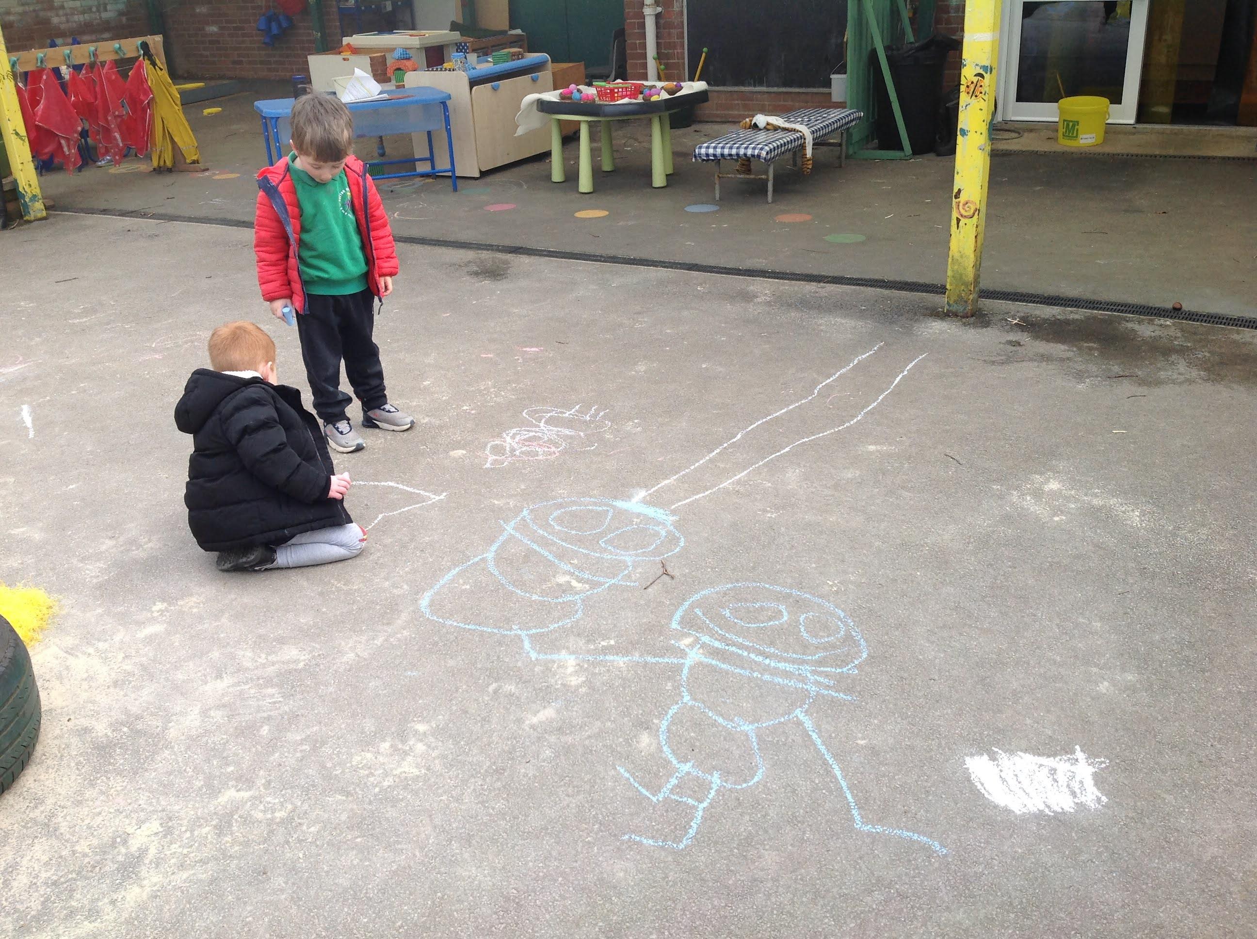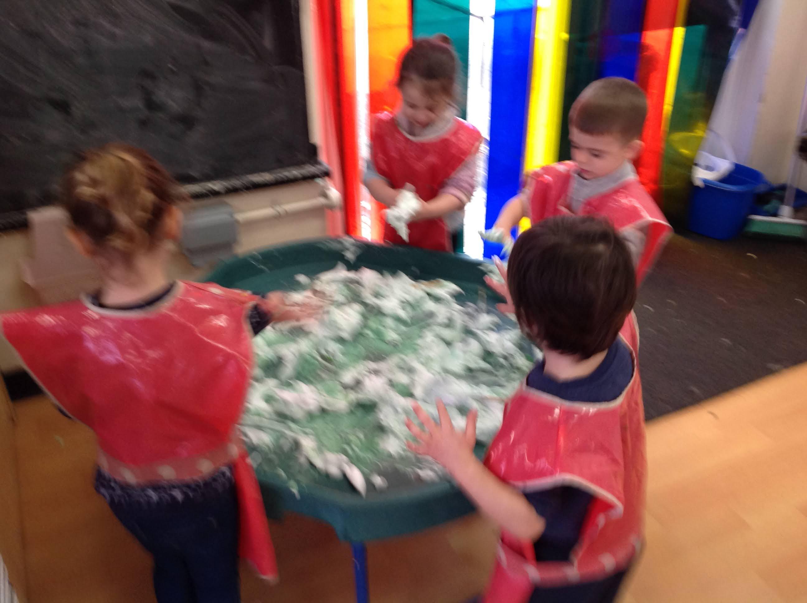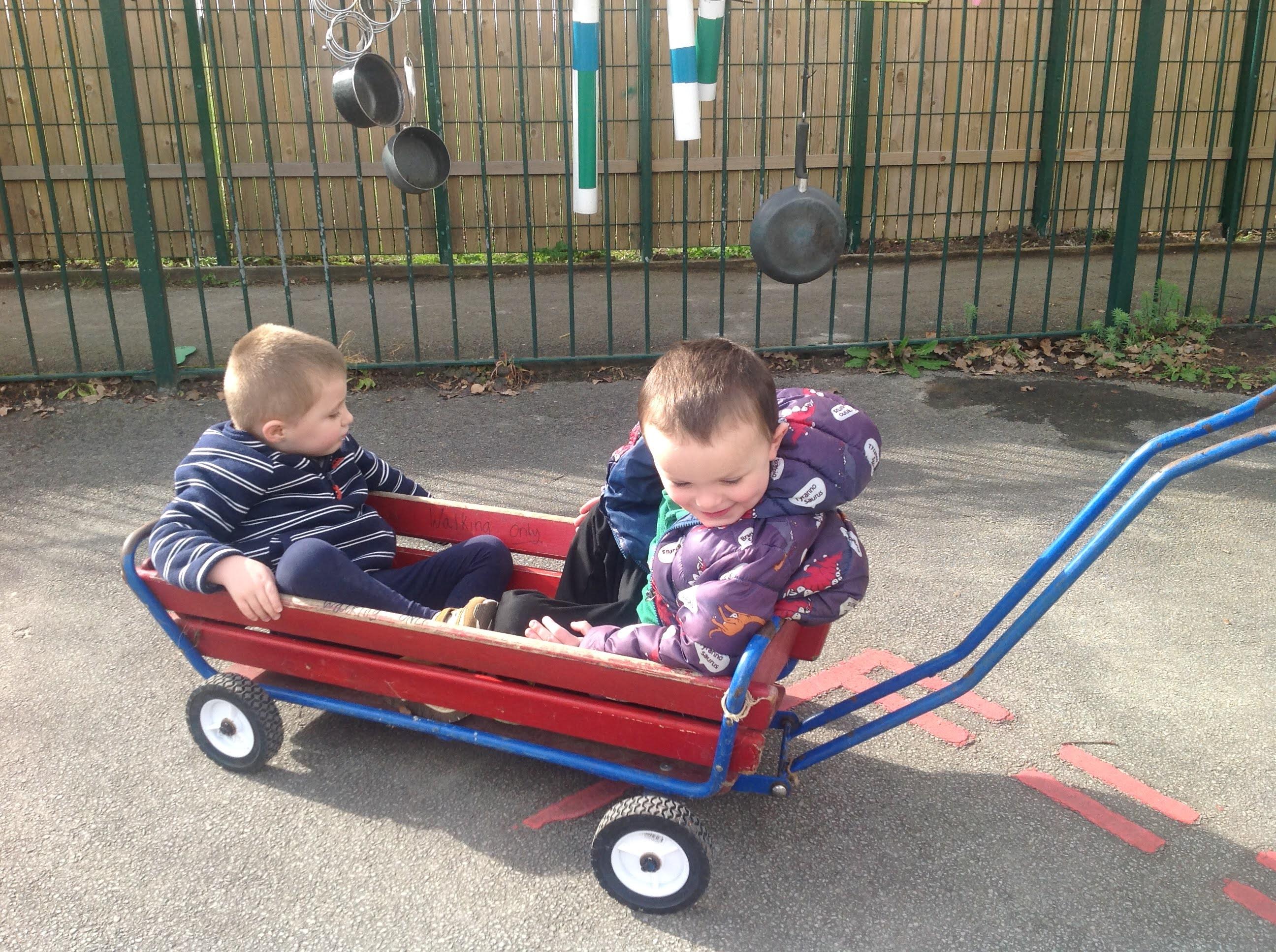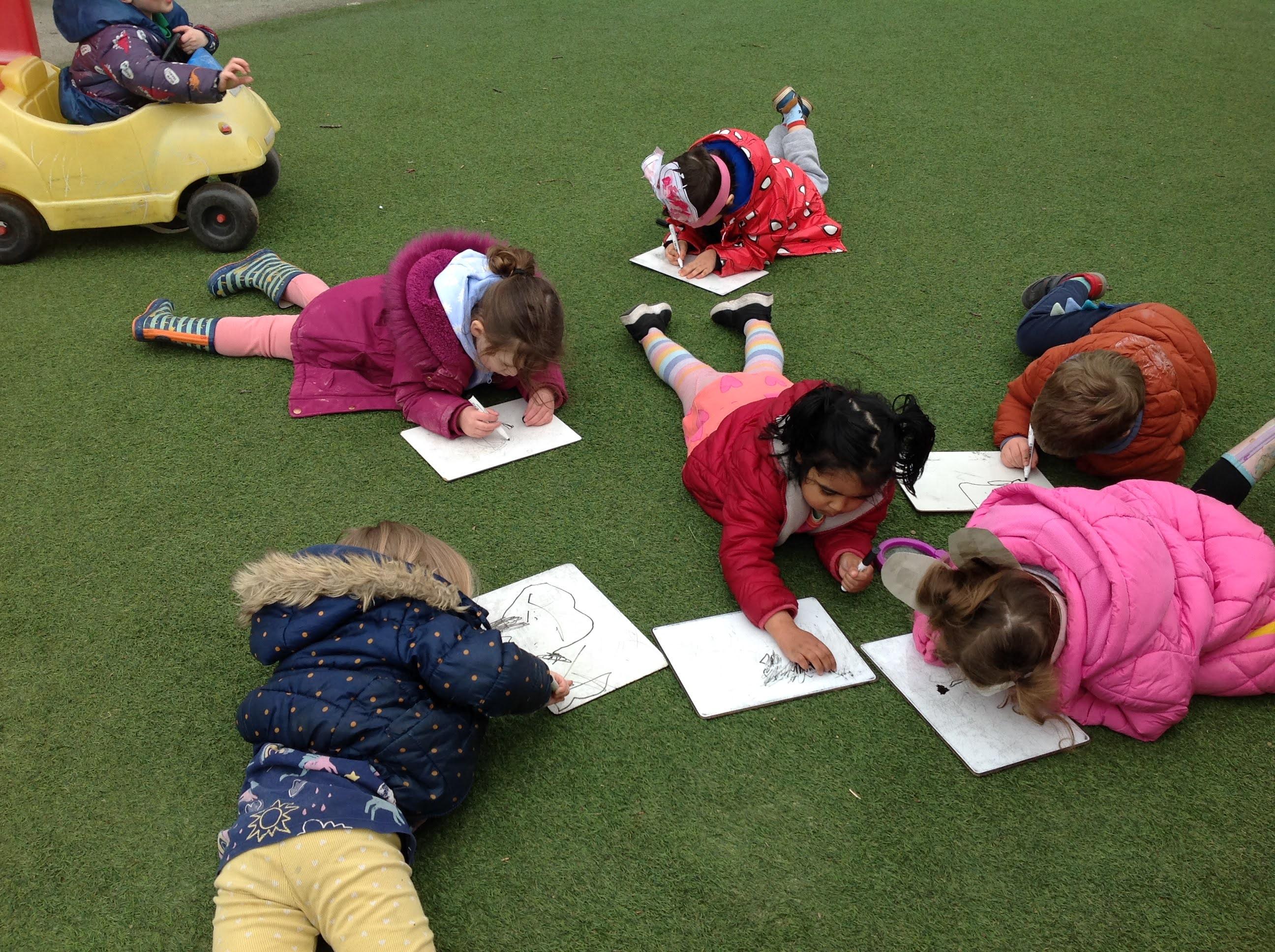 The Barn Owls showed how they worked together as a team to get the jobs completed, just like Farmer Duck had to do. This was the ironing and washing in the home corner. Outside they cleaned the cars and make meals in the garden kitchen.