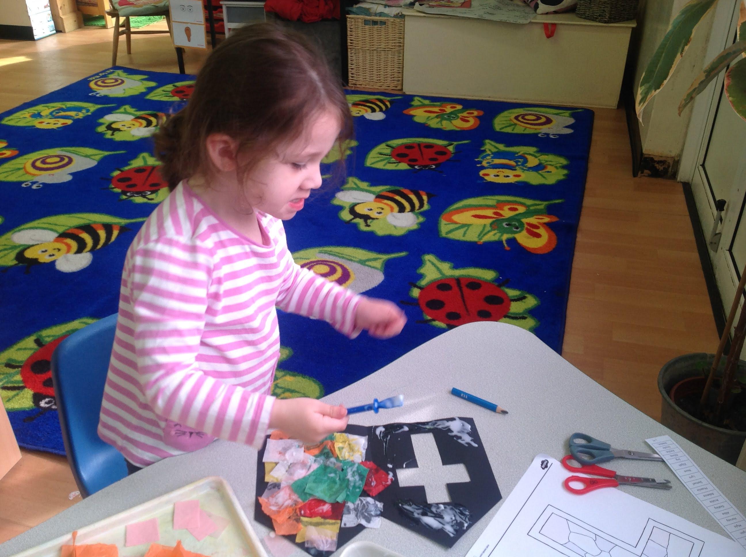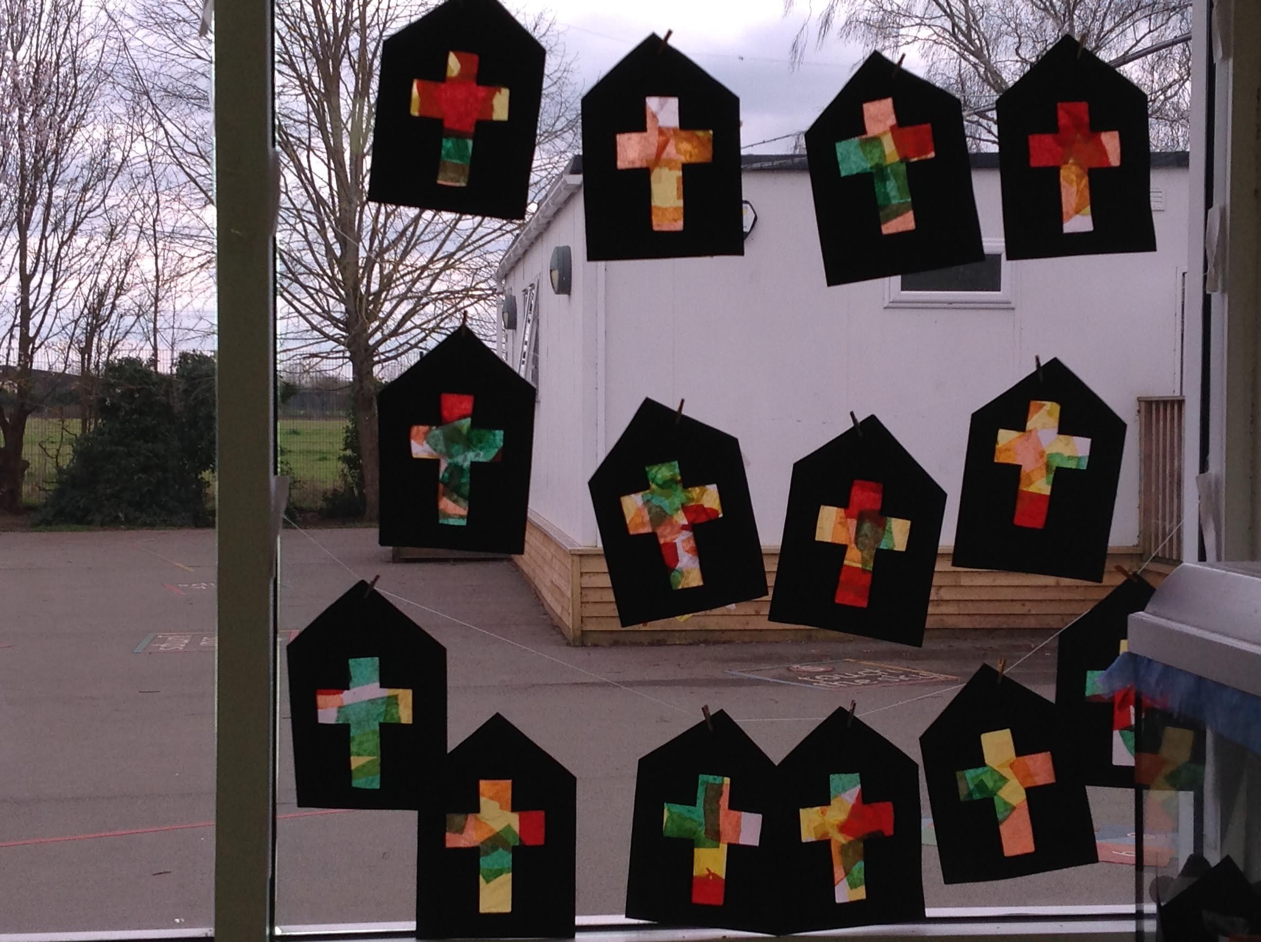 We have used puppets to retell the story. You can see our beautiful stained glass Crosses in the window.