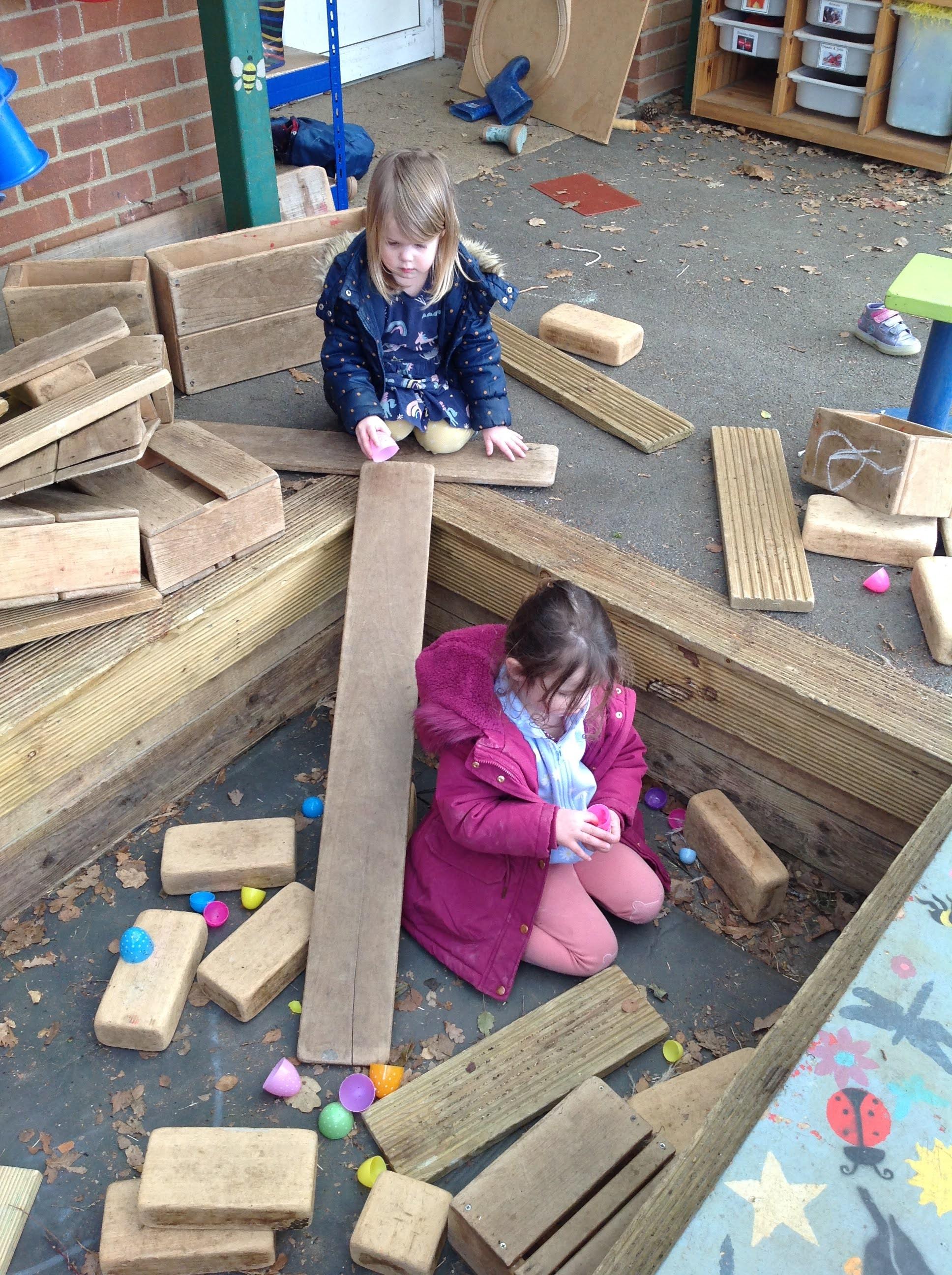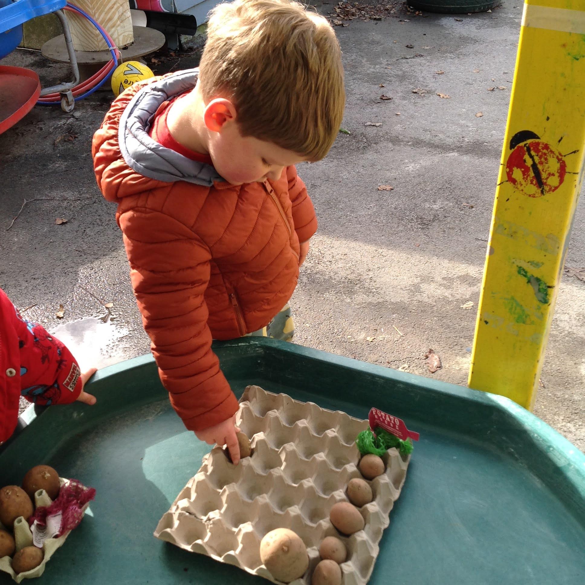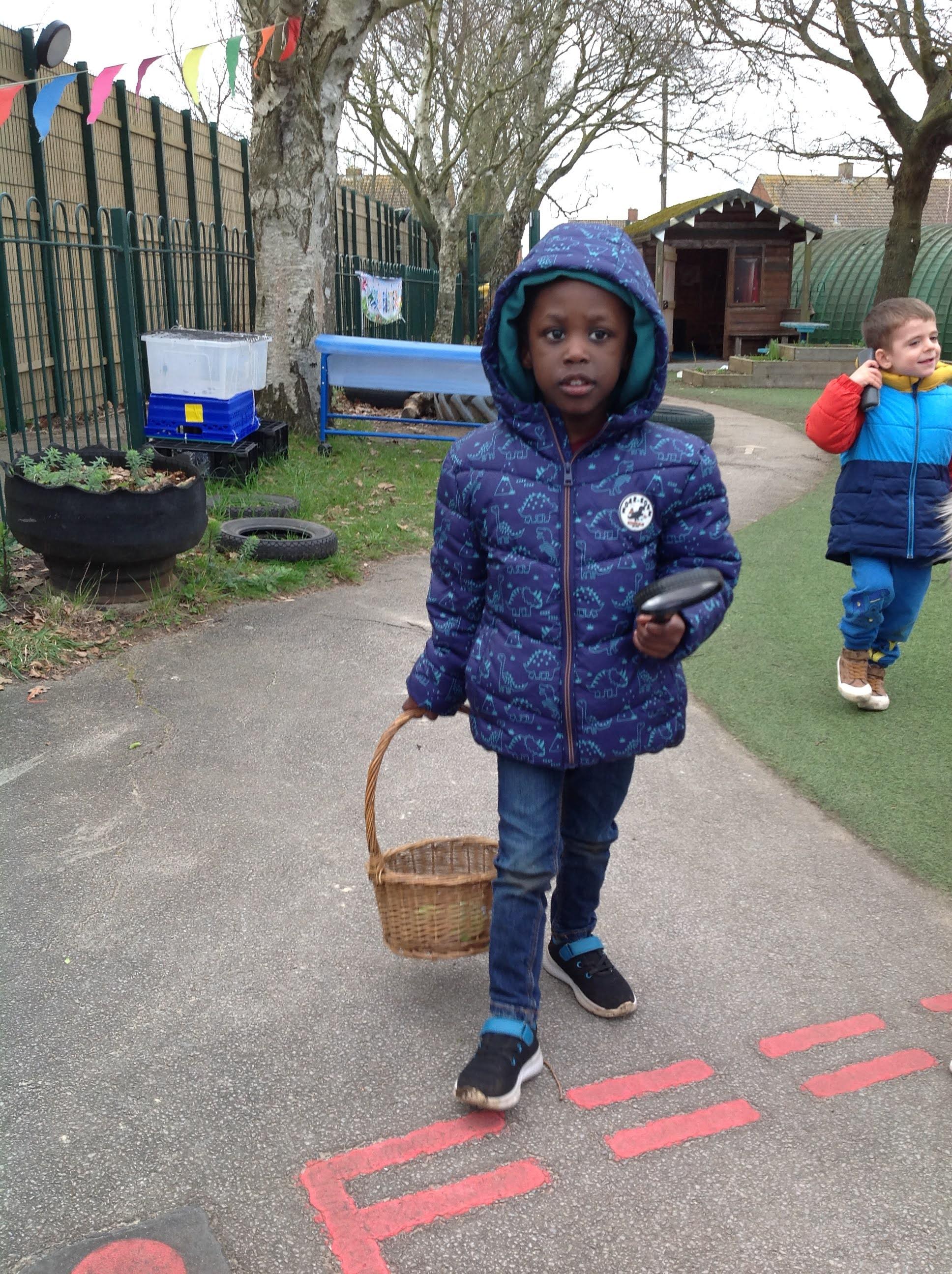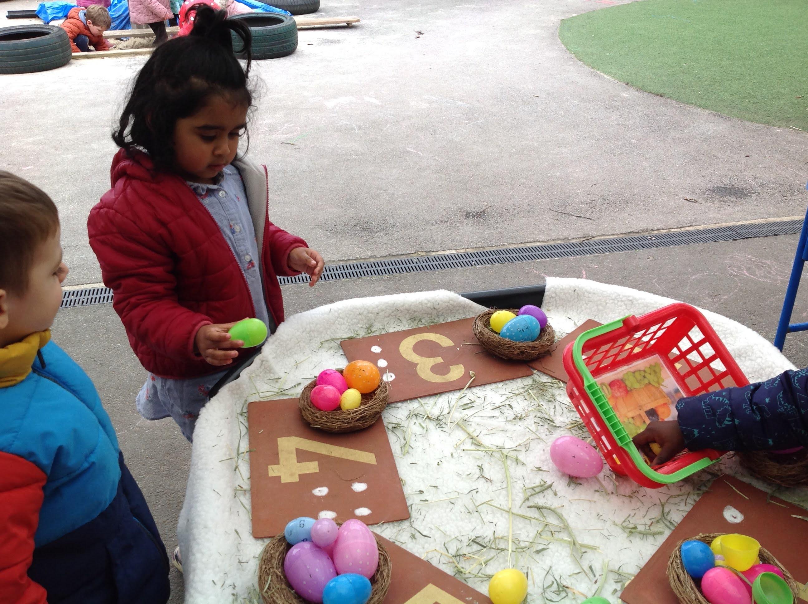 There has been lots of fun in the garden looking for plastic eggs and counting these by placing them in nests. We enjoyed playing with the Robins class and also singing our Easter song together.
