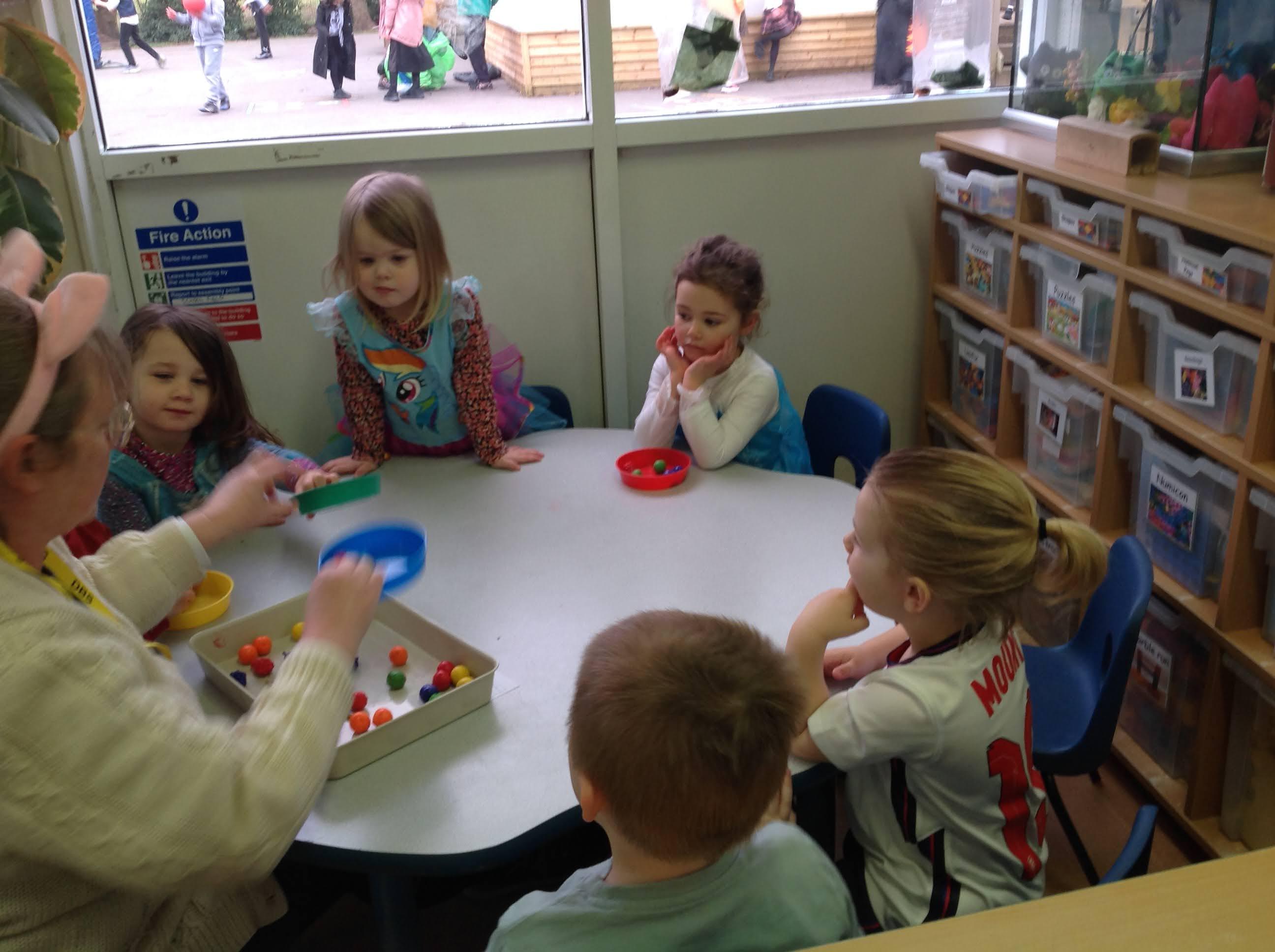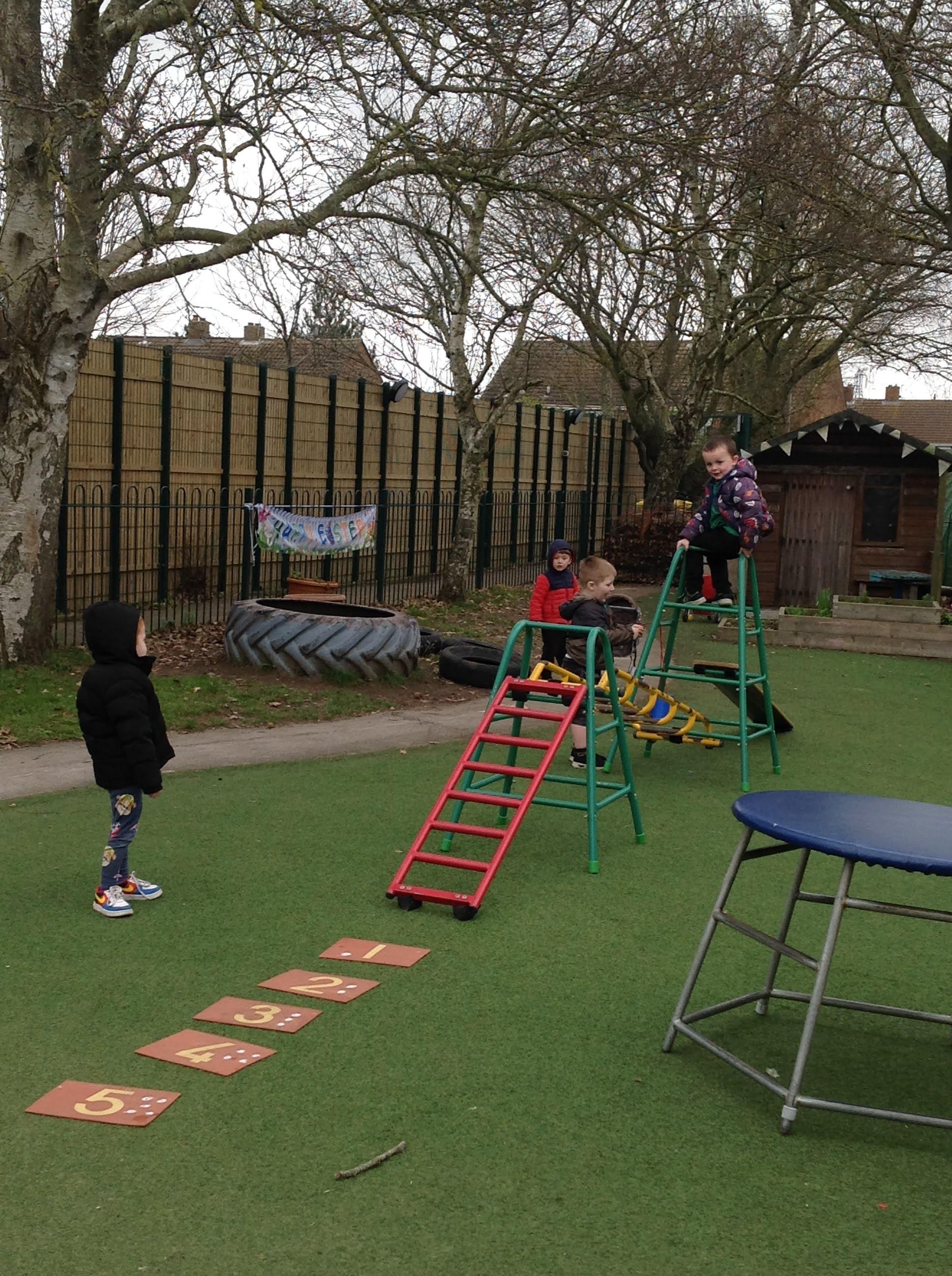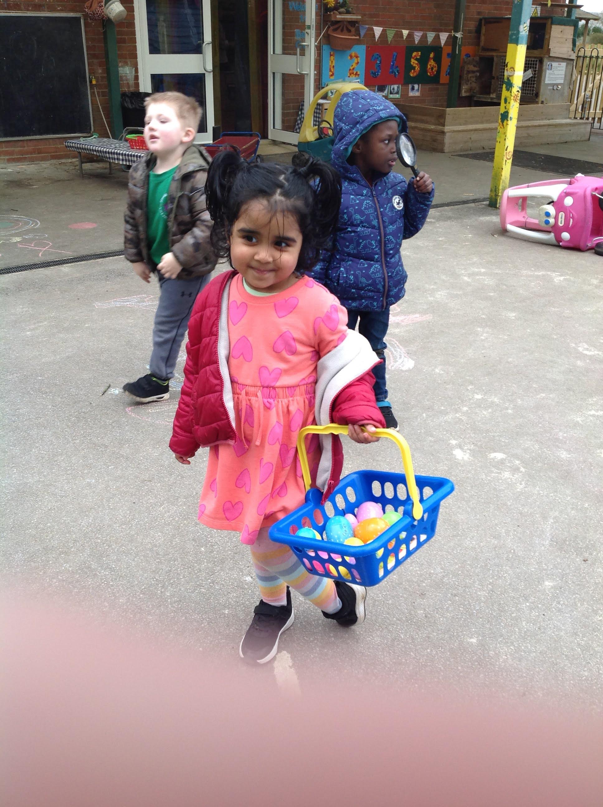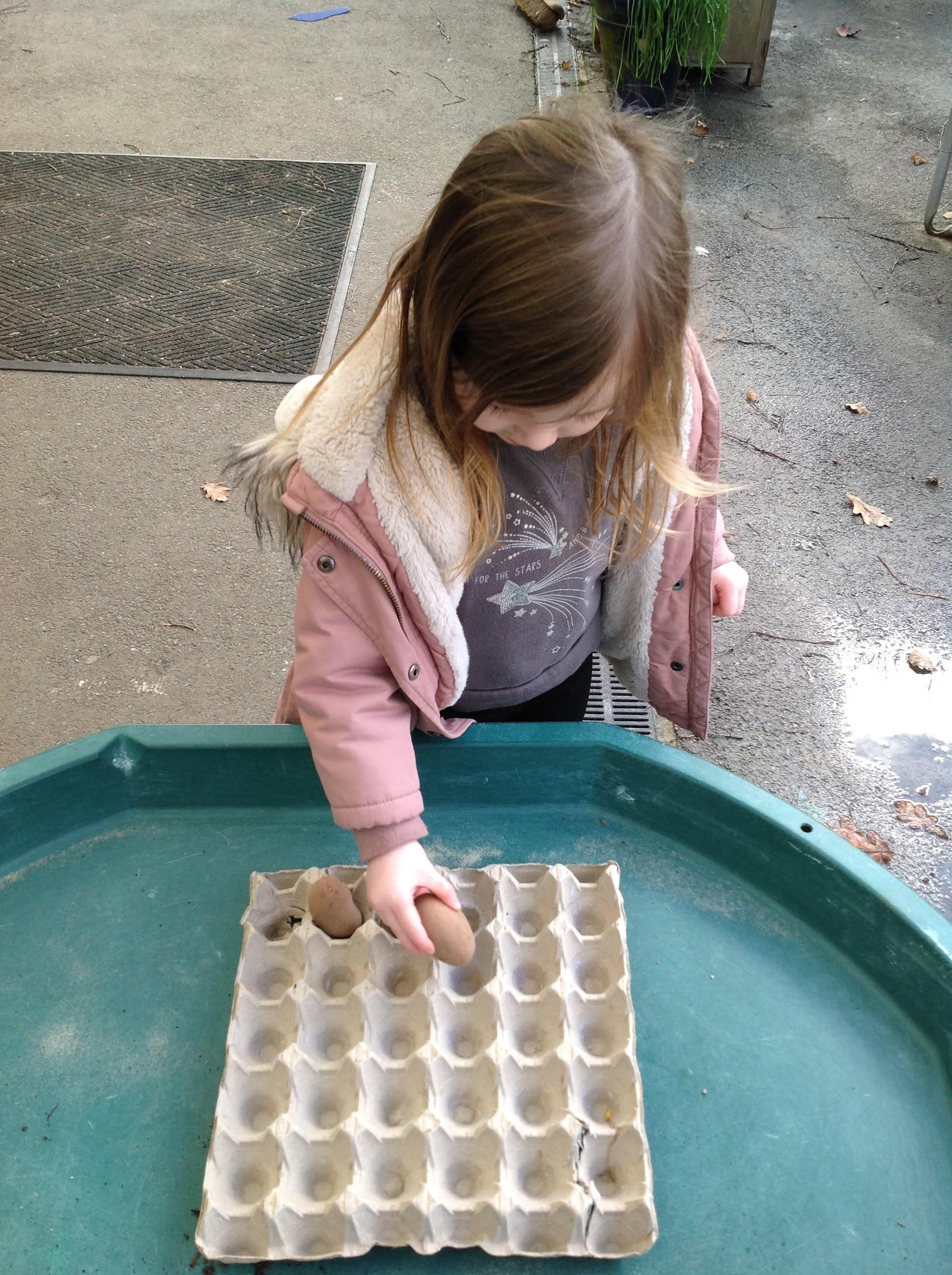 There has been lots of fun in the garden looking for plastic eggs and counting these by placing them in nests. We enjoyed playing with the Robins class and also singing our Easter song together.
