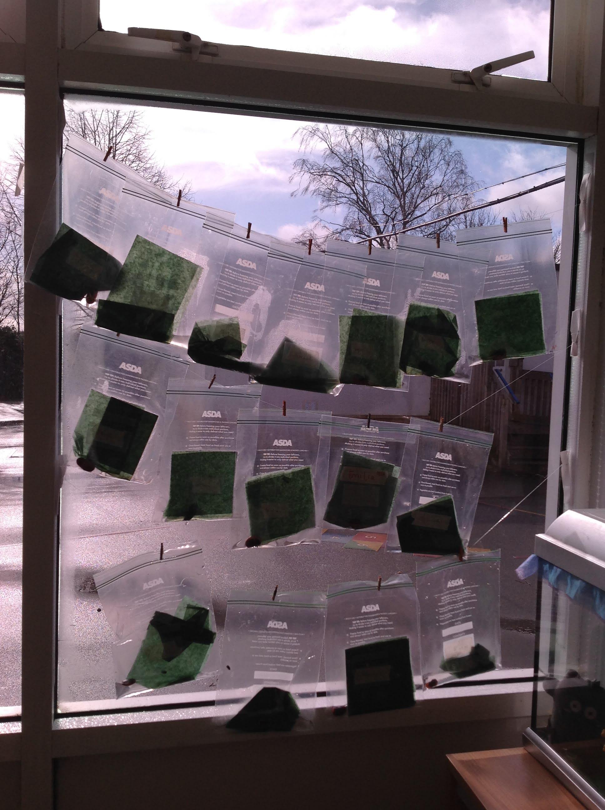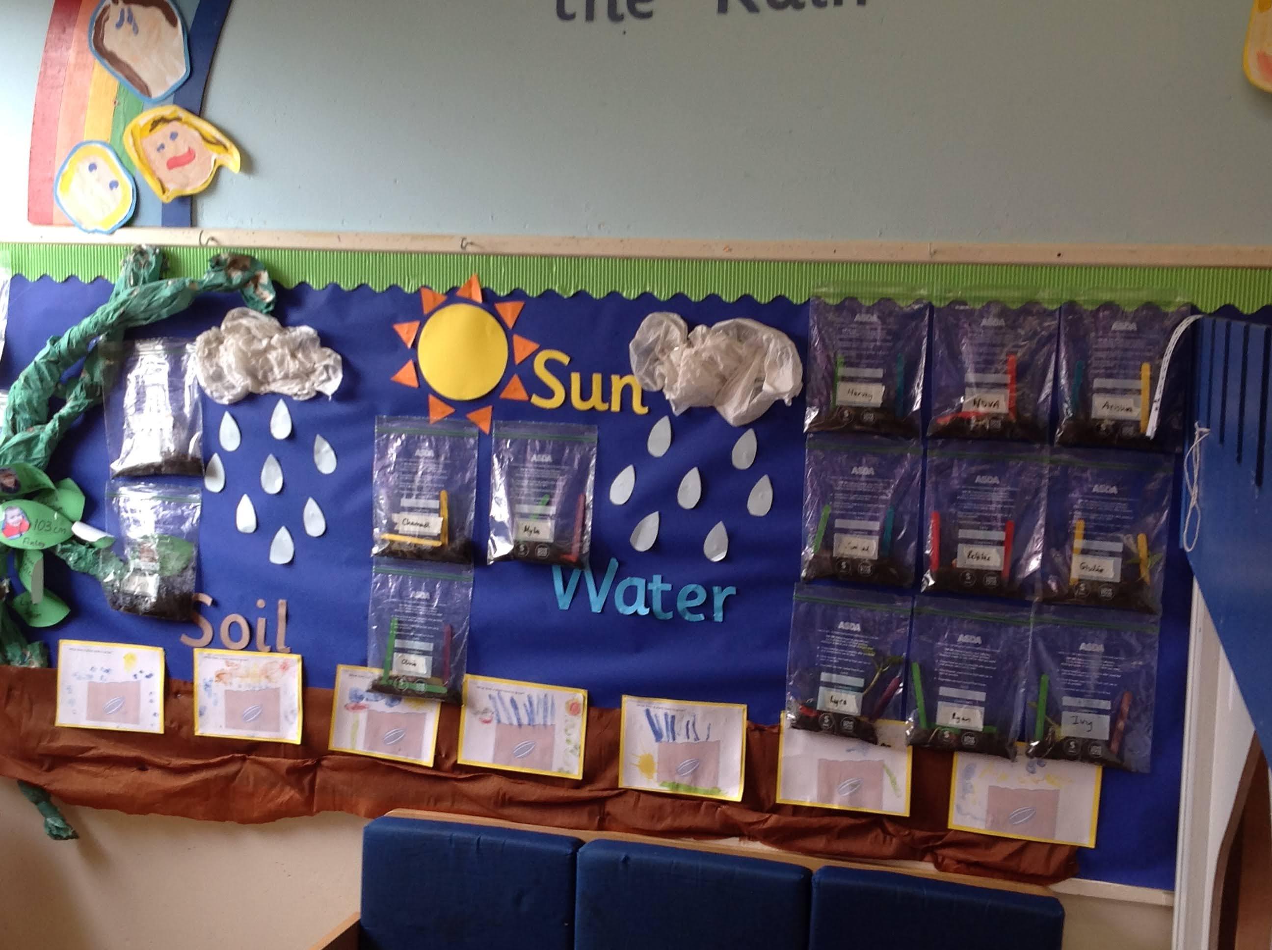 We have put our own beans in a bag with moist paper towel and we are waiting patiently to see what happens. You can see them pegged in our classroom window.