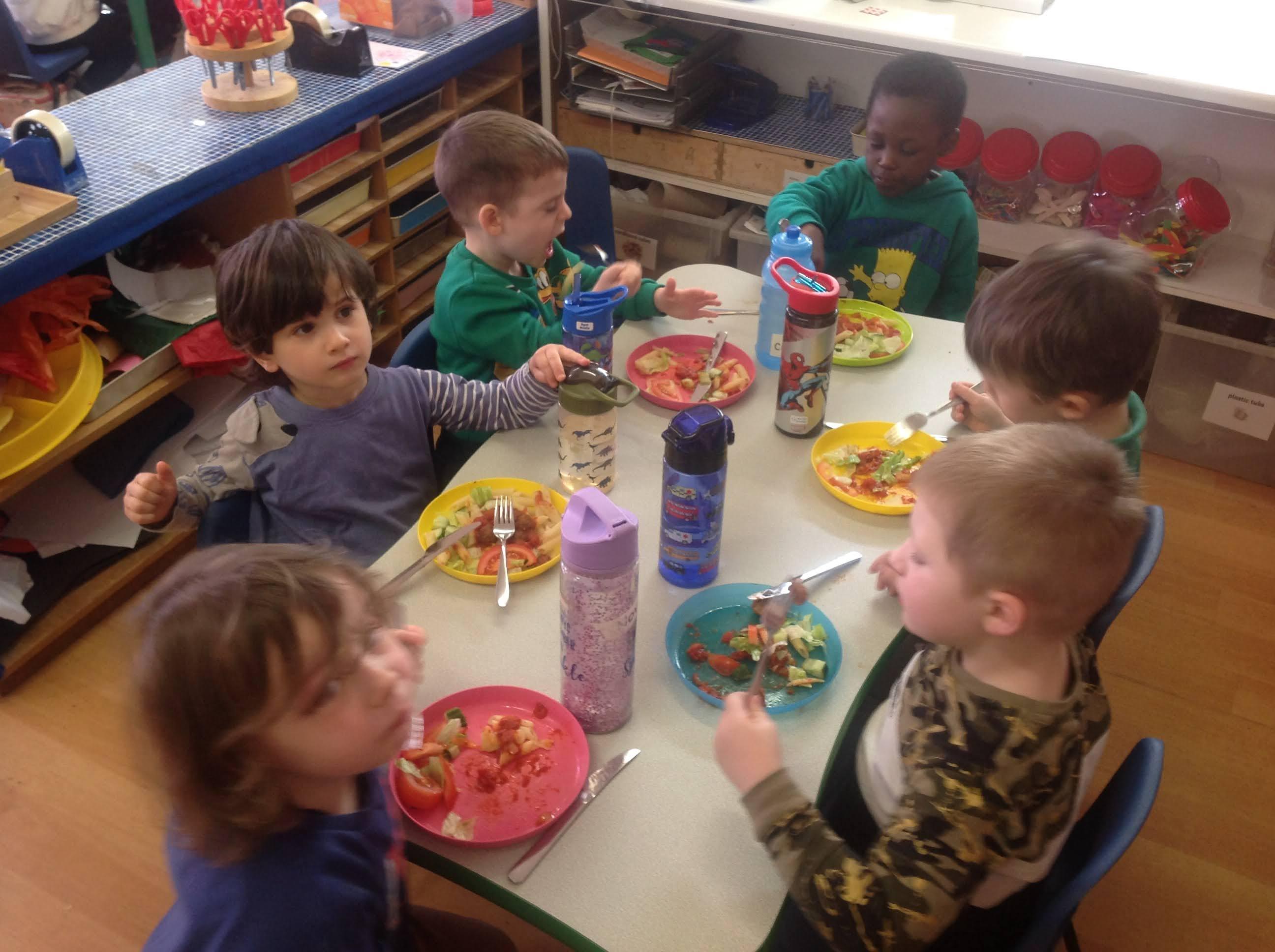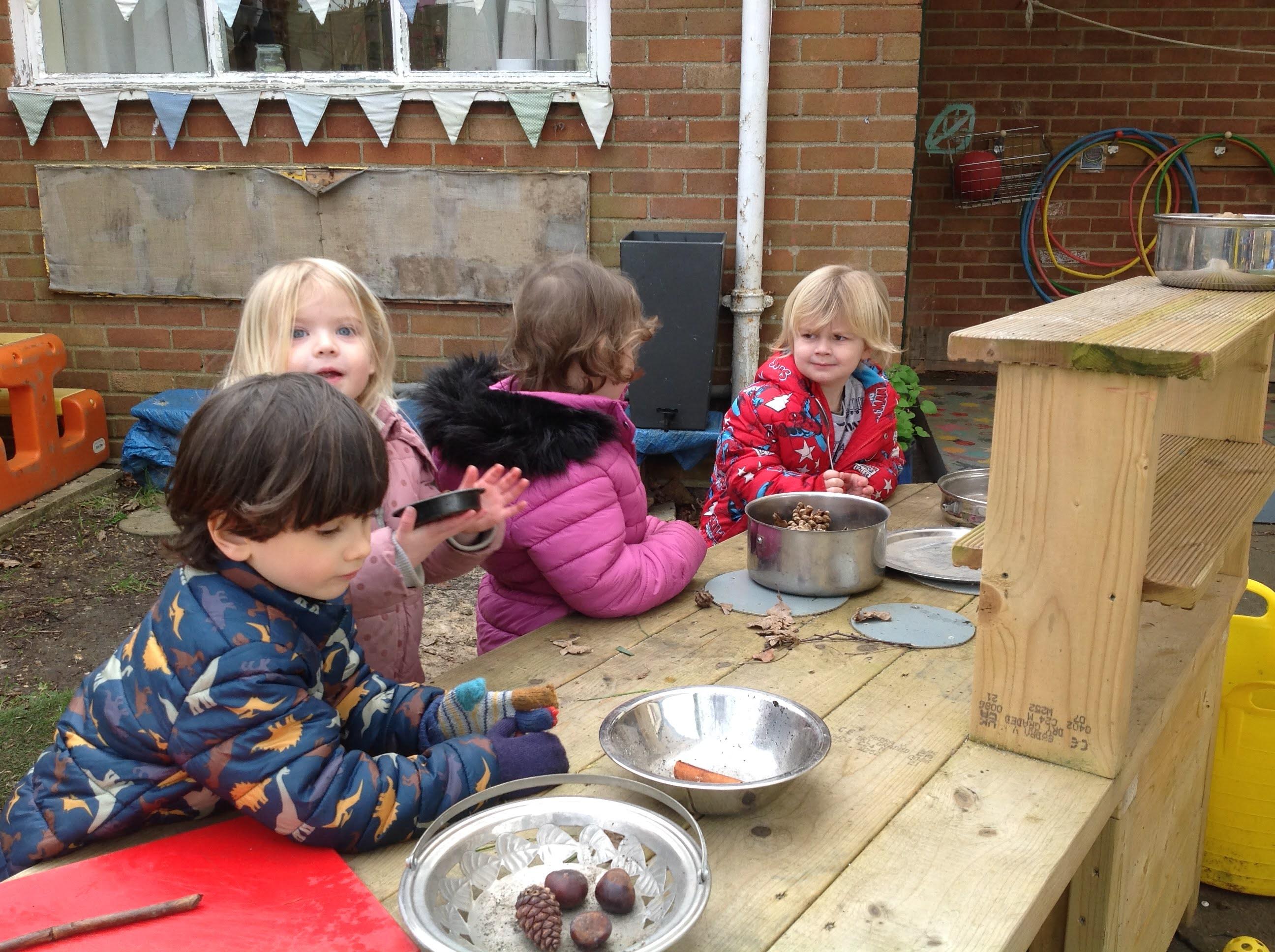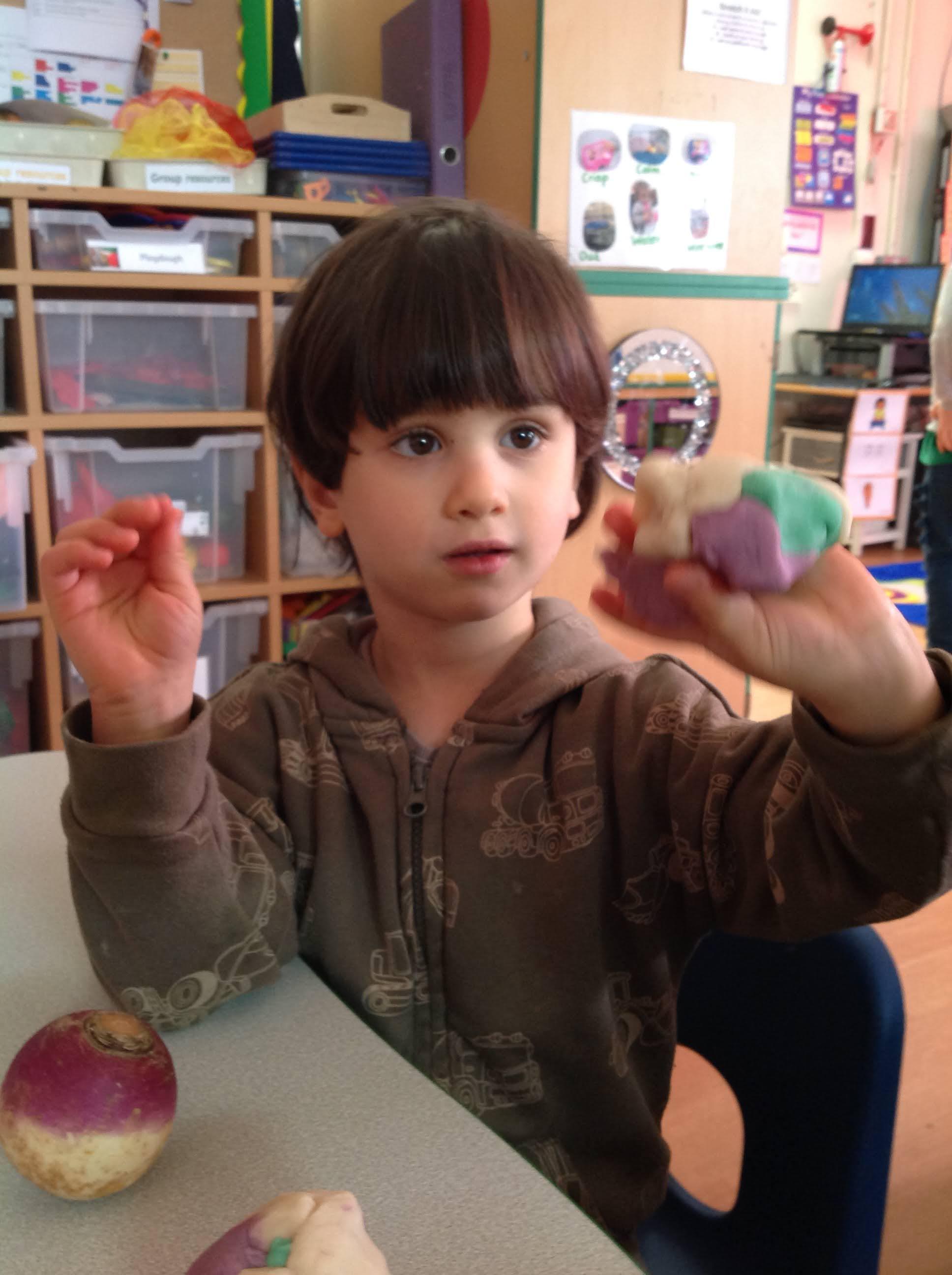 This week we have been reading the story of The Enormous Turnip. We made our own turnips from playdough. We having been sorting vegetables to print pictures and make patterns too. The Barn Owls have worked together to try and pull an enormous turnip by pulling the rope as a team. There was also turnip soup making in the water tray!