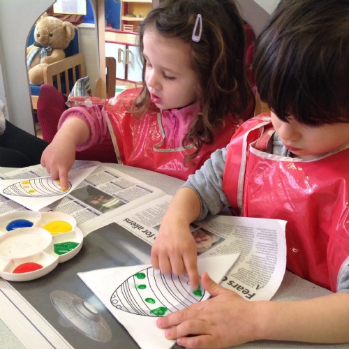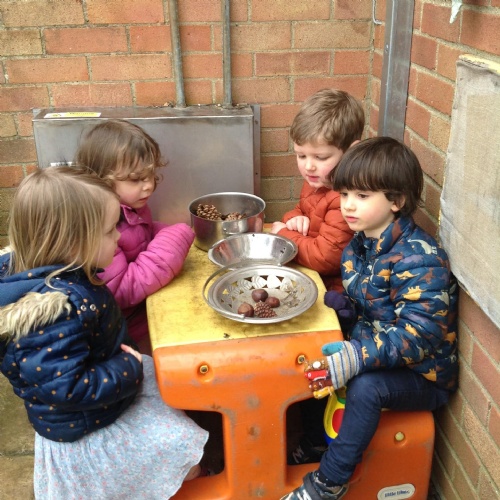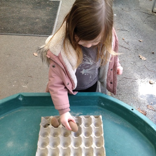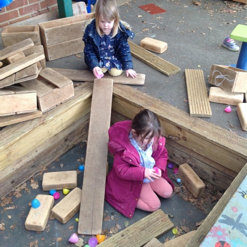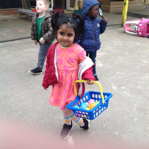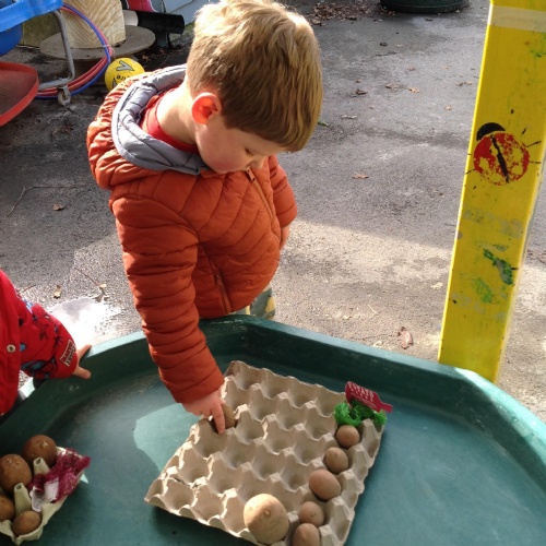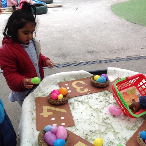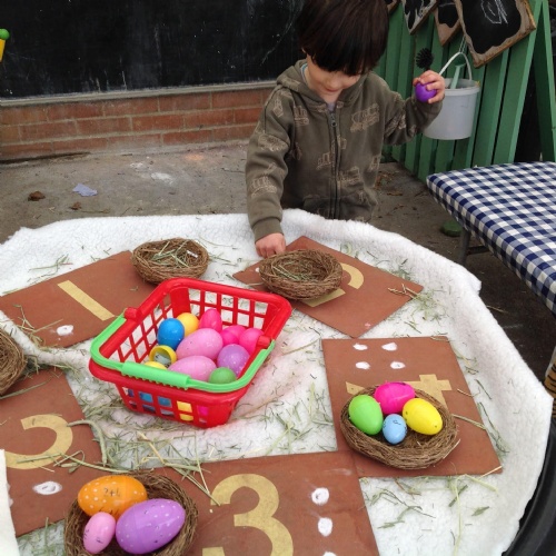 There has been lots of fun in the garden looking for plastic eggs and counting these by placing them in nests. We enjoyed playing with the Robins class and also singing our Easter song together.