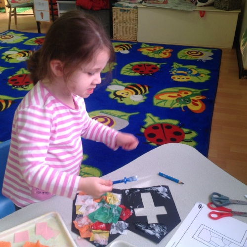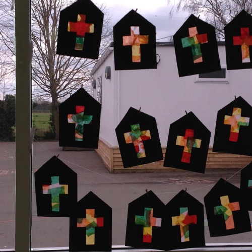 We have used puppets to retell the story. You can see our beautiful stained glass Crosses in the window.