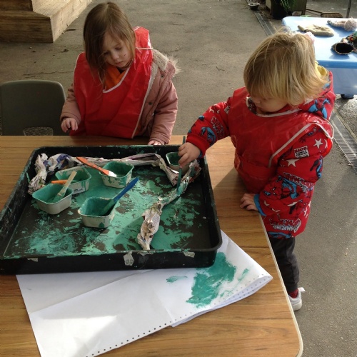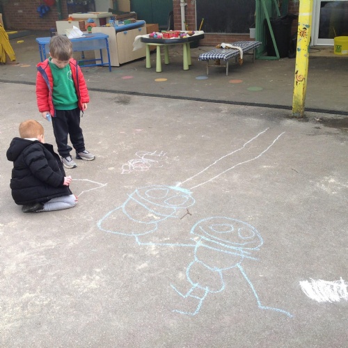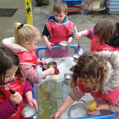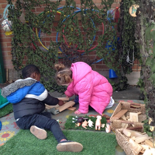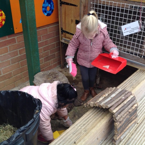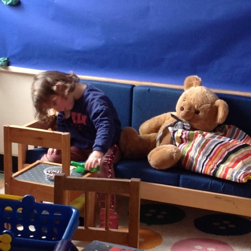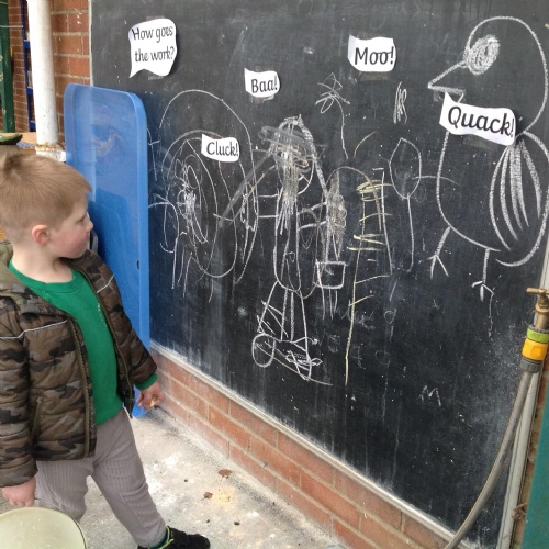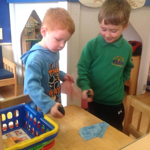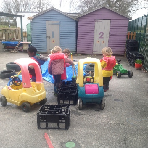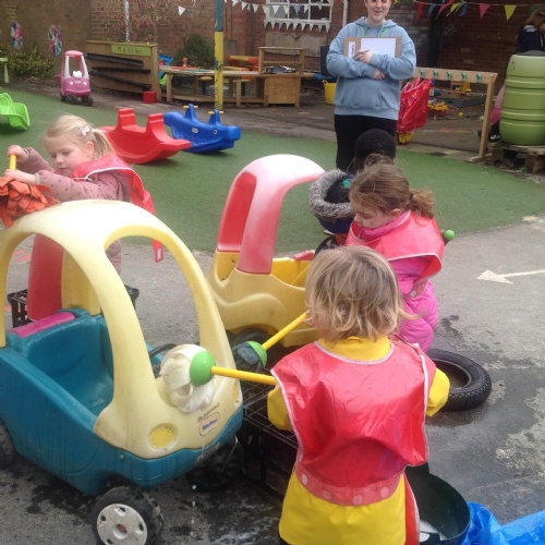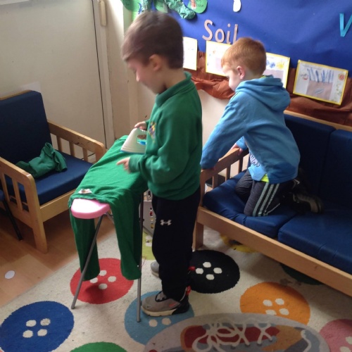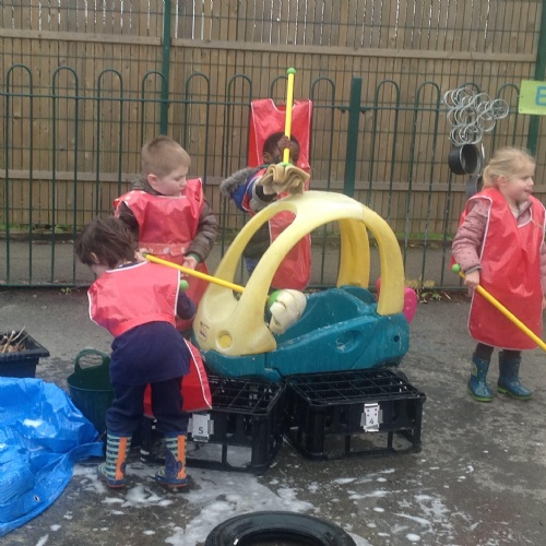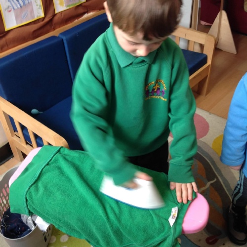The Barn Owls showed how they worked together as a team to get the jobs completed, just like Farmer Duck had to do. This was the ironing and washing in the home corner. Outside they cleaned the cars and make meals in the garden kitchen.