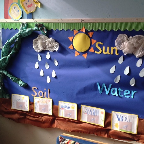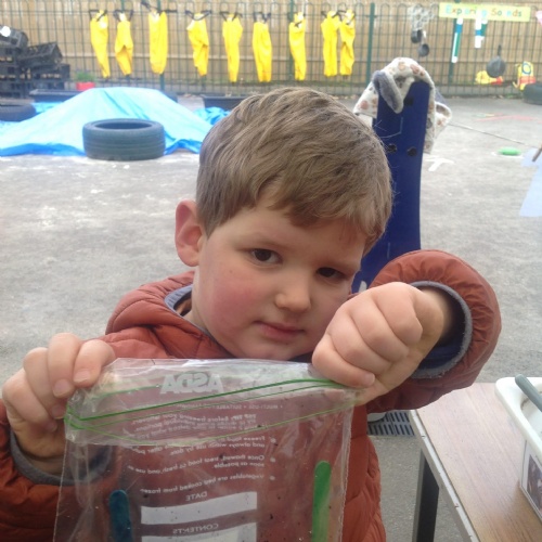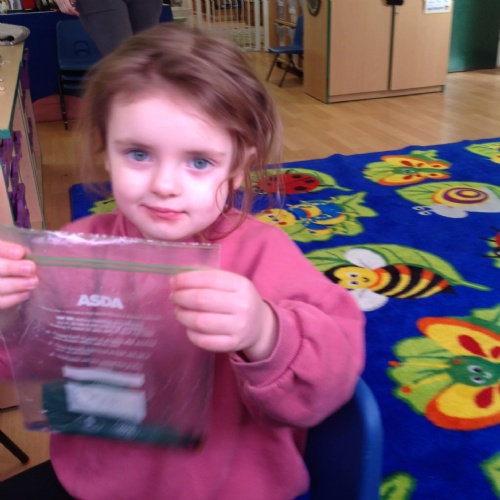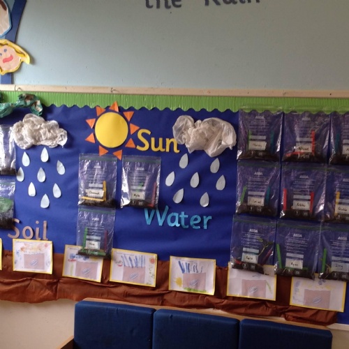 We have put our own beans in a bag with moist paper towel and we are waiting patiently to see what happens. You can see them pegged in our classroom window.