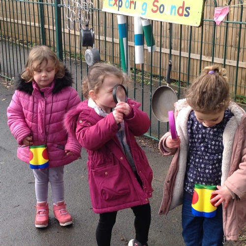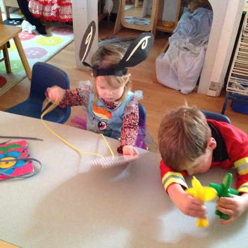 This week we have also used the musical instruments to create music that we thought the beanstalk might grow to. The Barn Owls have also been showing how great their listening skills have become, as they took it in turns to sit in the middle of the circle wearing a blindfold and had to guess who they could hear in the game. They have also been using these listening skills as we develop our lettersounds in phonics, and blending sounds together.