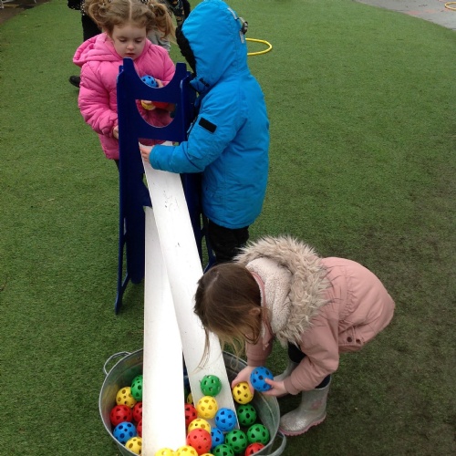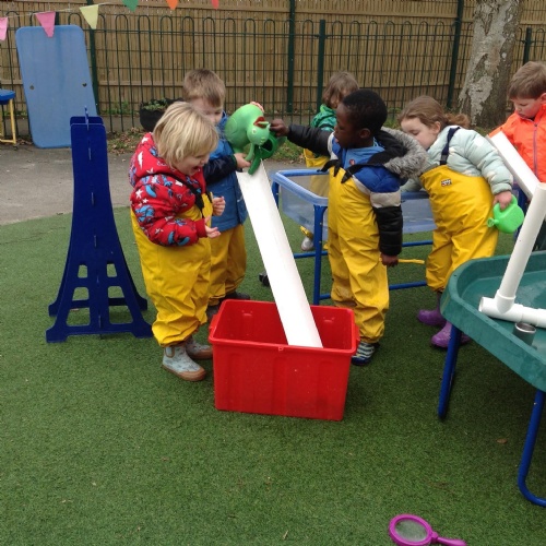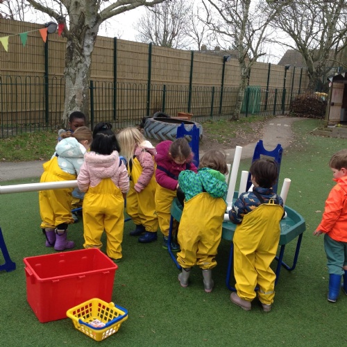 There was lots of fun when we used different watering cans to explore the water tray and tubes on Wednesday. We also wanted to see which items could float or sink.