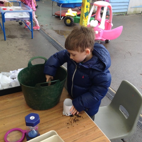 We have had a wonderful first week back. This week we have been reading a nonfiction book, A Seed in Need by Sam Godwin and starting to learn about the plant lifecycle. We made our own paper plant pots and have potted some seeds. Despite the wet weather we have enjoyed looking for signs of Spring around the grounds, using our new binoculars and magnify glasses.