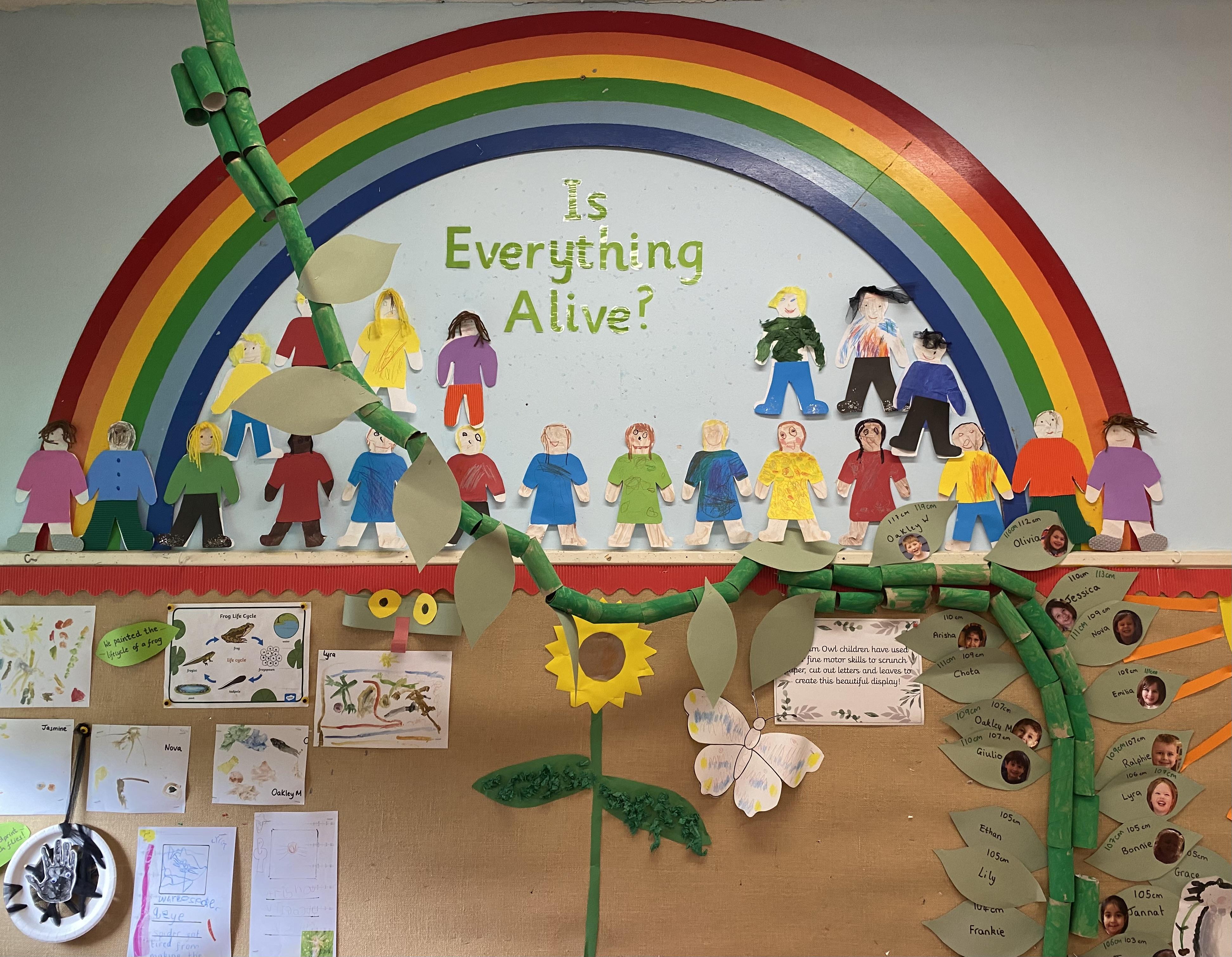 The beanstalk that has been on our class display for two terms now, has a leaf for each child with their height recorded at the beginning of term 4. We measured our heights at the end of term 5 and could see that we had all grown!