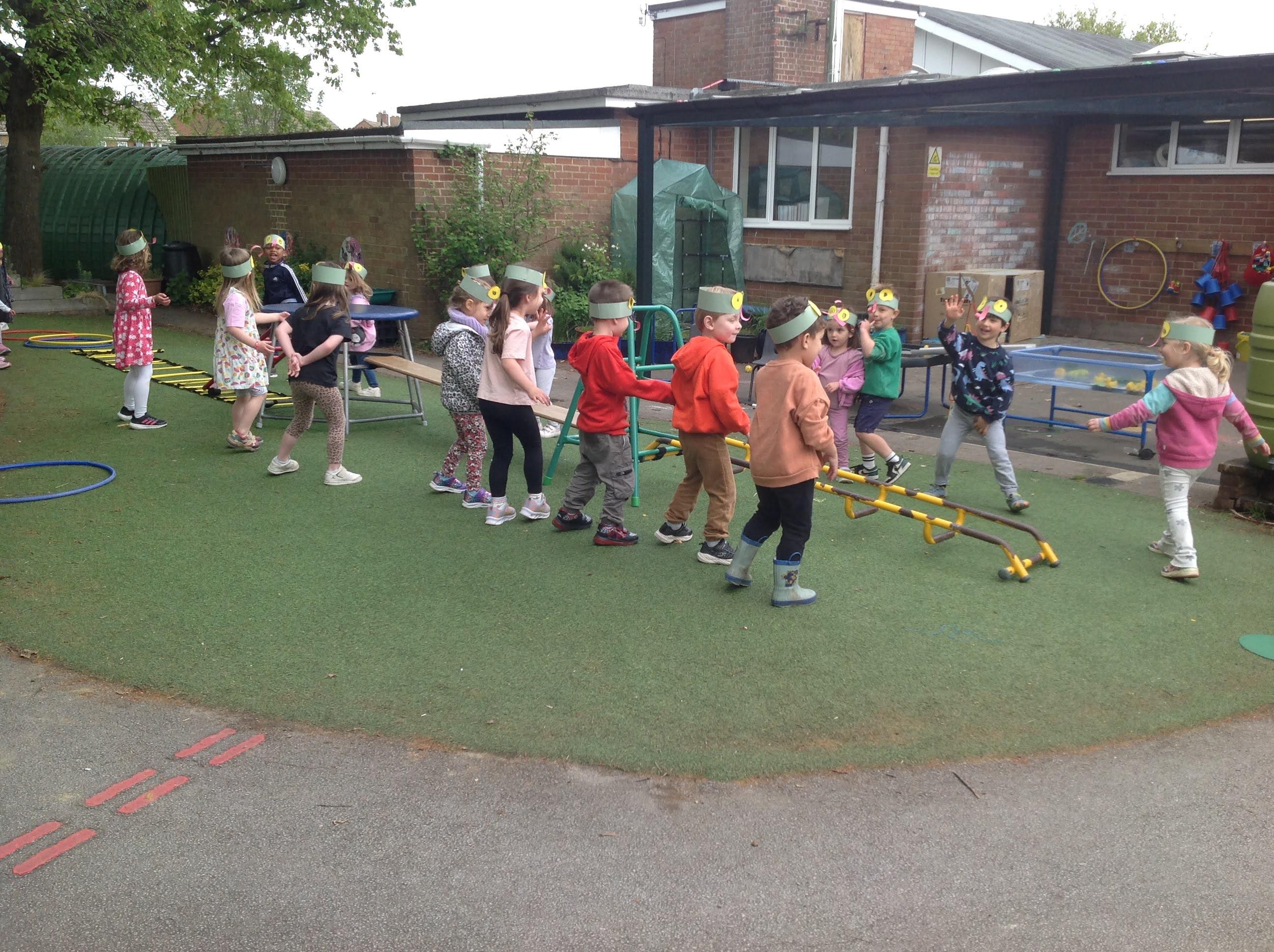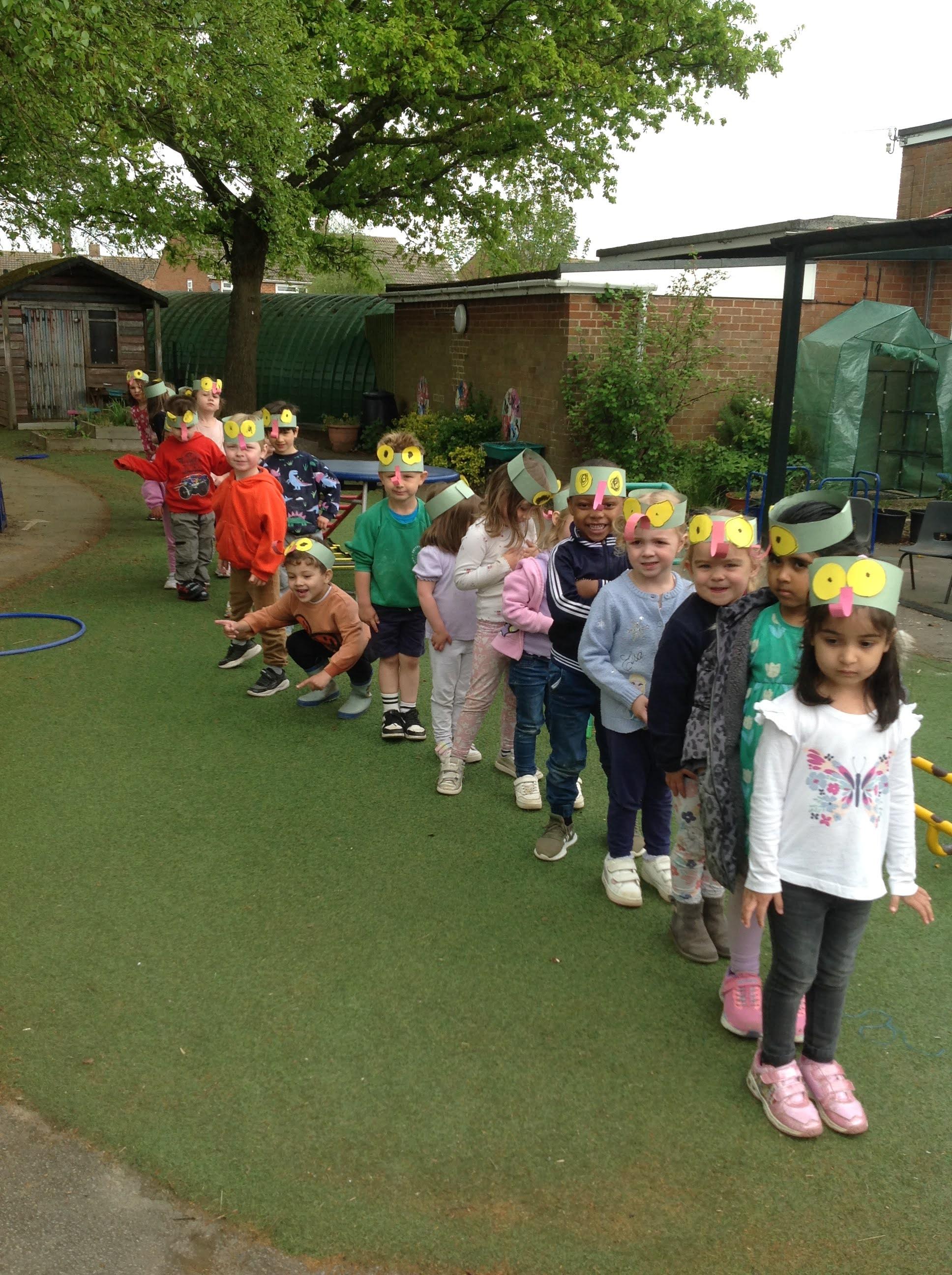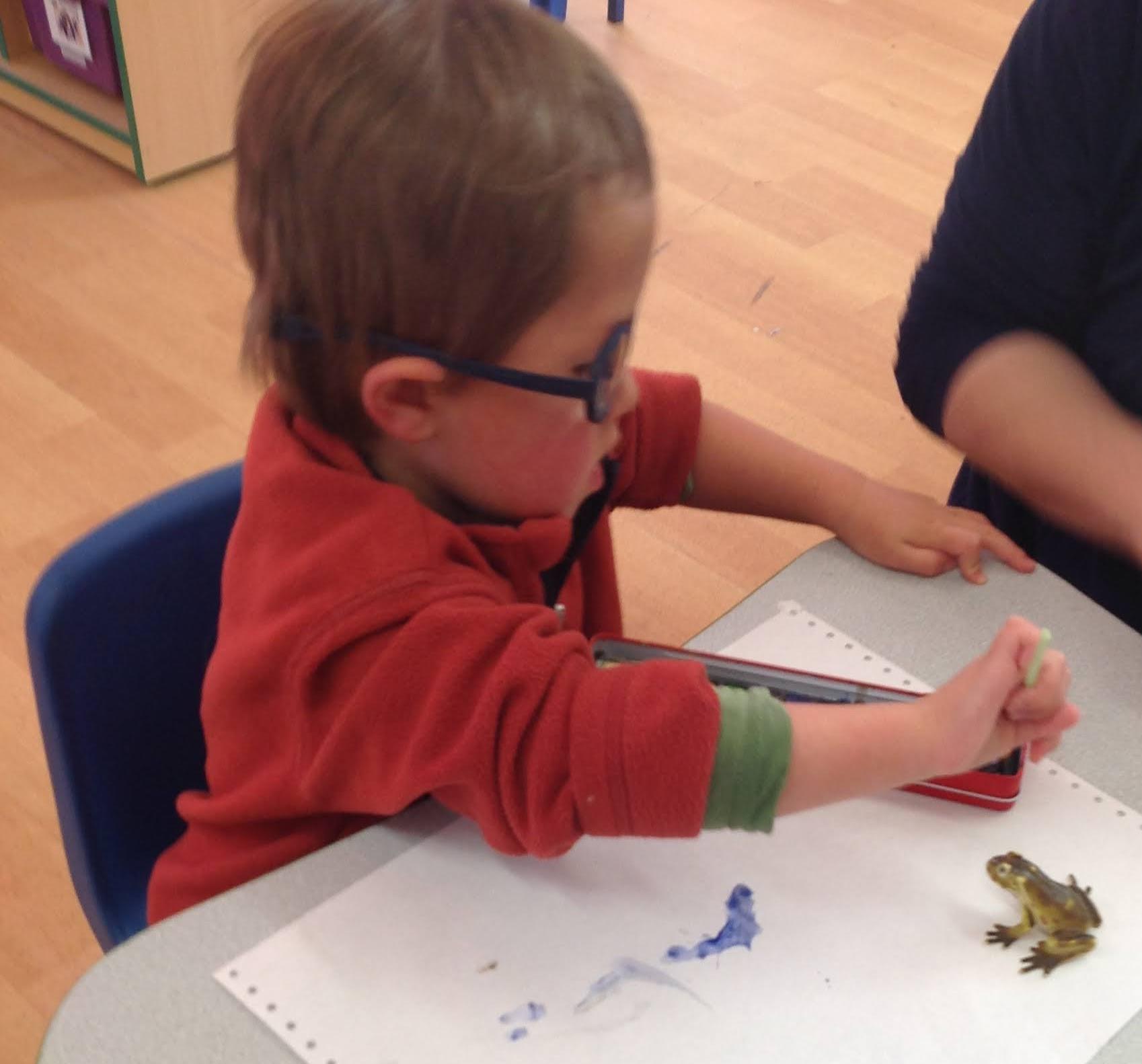 Our first week back has been very busy. We have been learning about the lifecycle of frogs. We have been using watercolours to paint pictures of the lifecycle. We have wriggled like a tadpole and froglet. Using different shapes we made a frog crown, so then we could hop and jump from the lily pad to the brick pit pond!