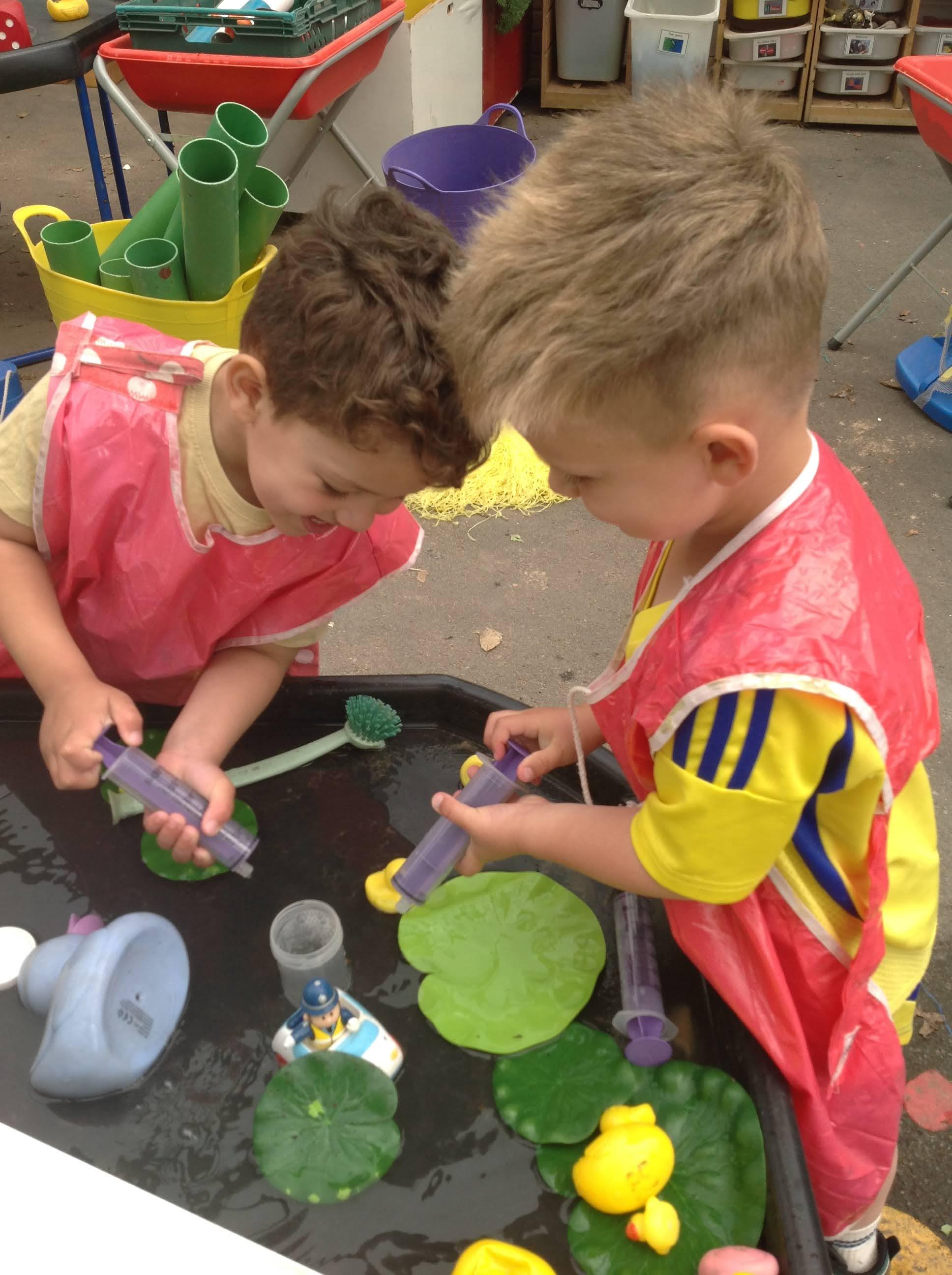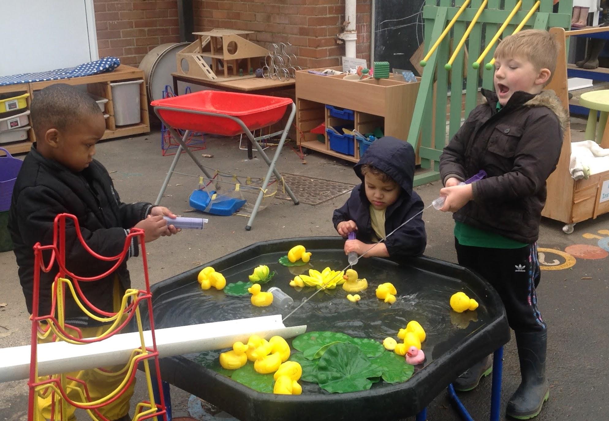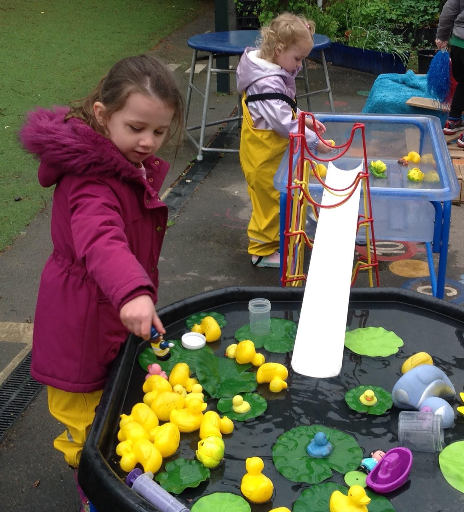 There was lots of problem solving and fun, as we explored different ways of making the ducks move from one water tray to another one.