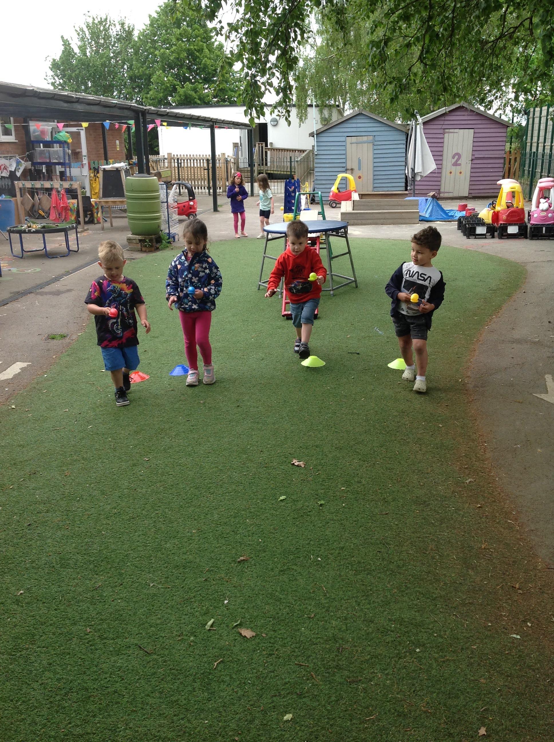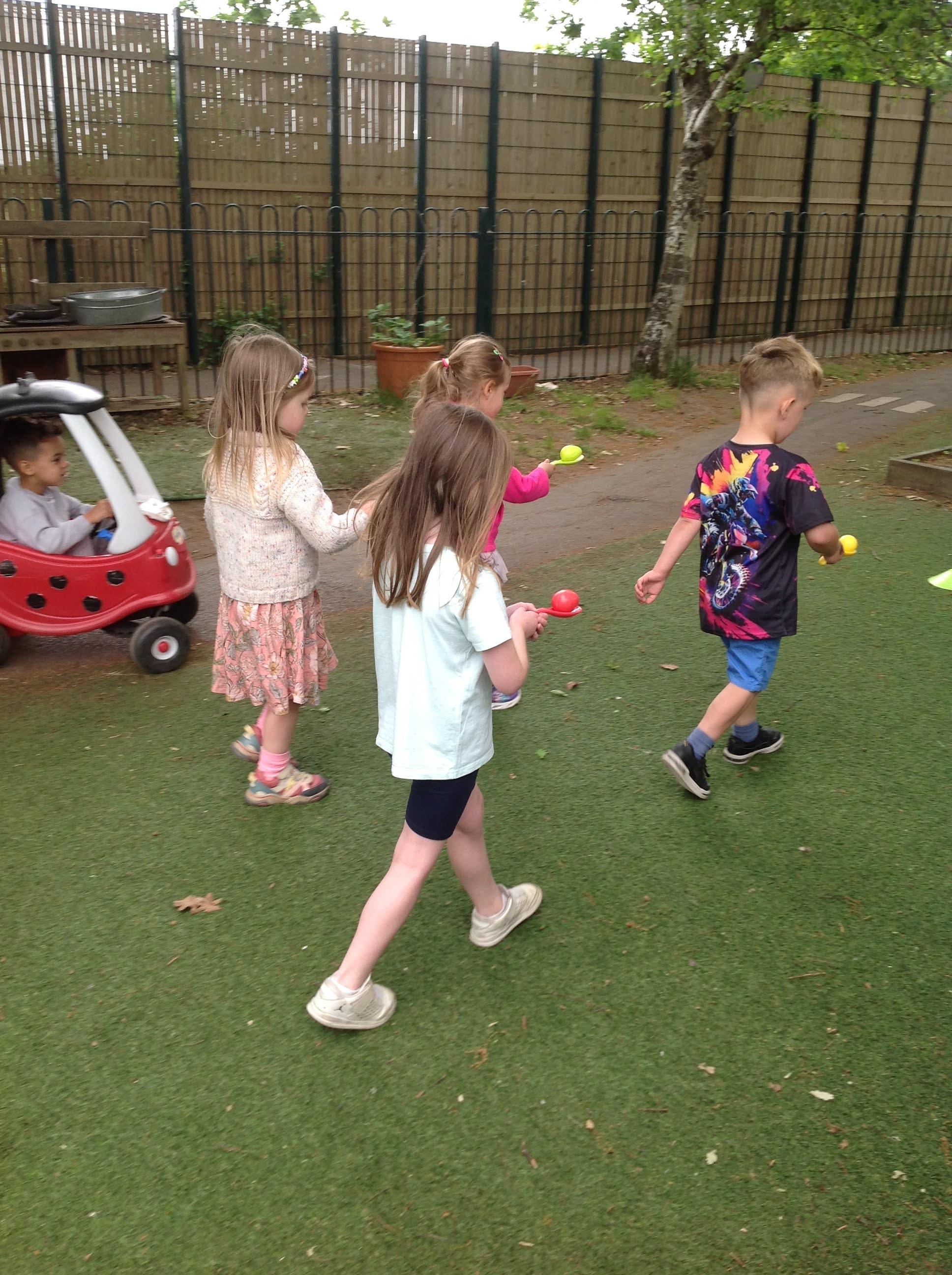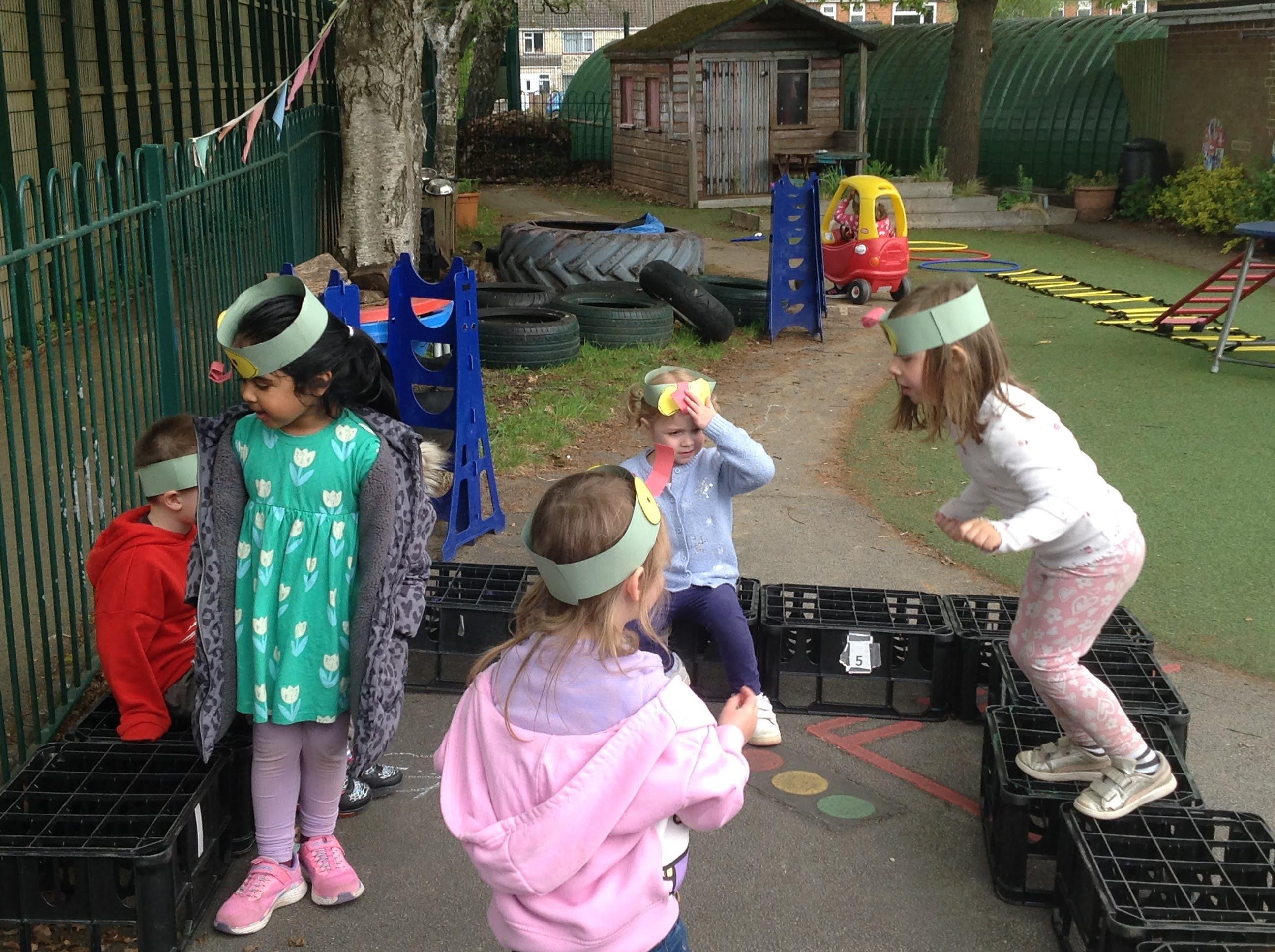 The eggs and nests in the story has been a focus for our counting and maths skills this week. We also used eggs on a spoon to demonstrate our careful balancing skills, getting ready for our races next term!