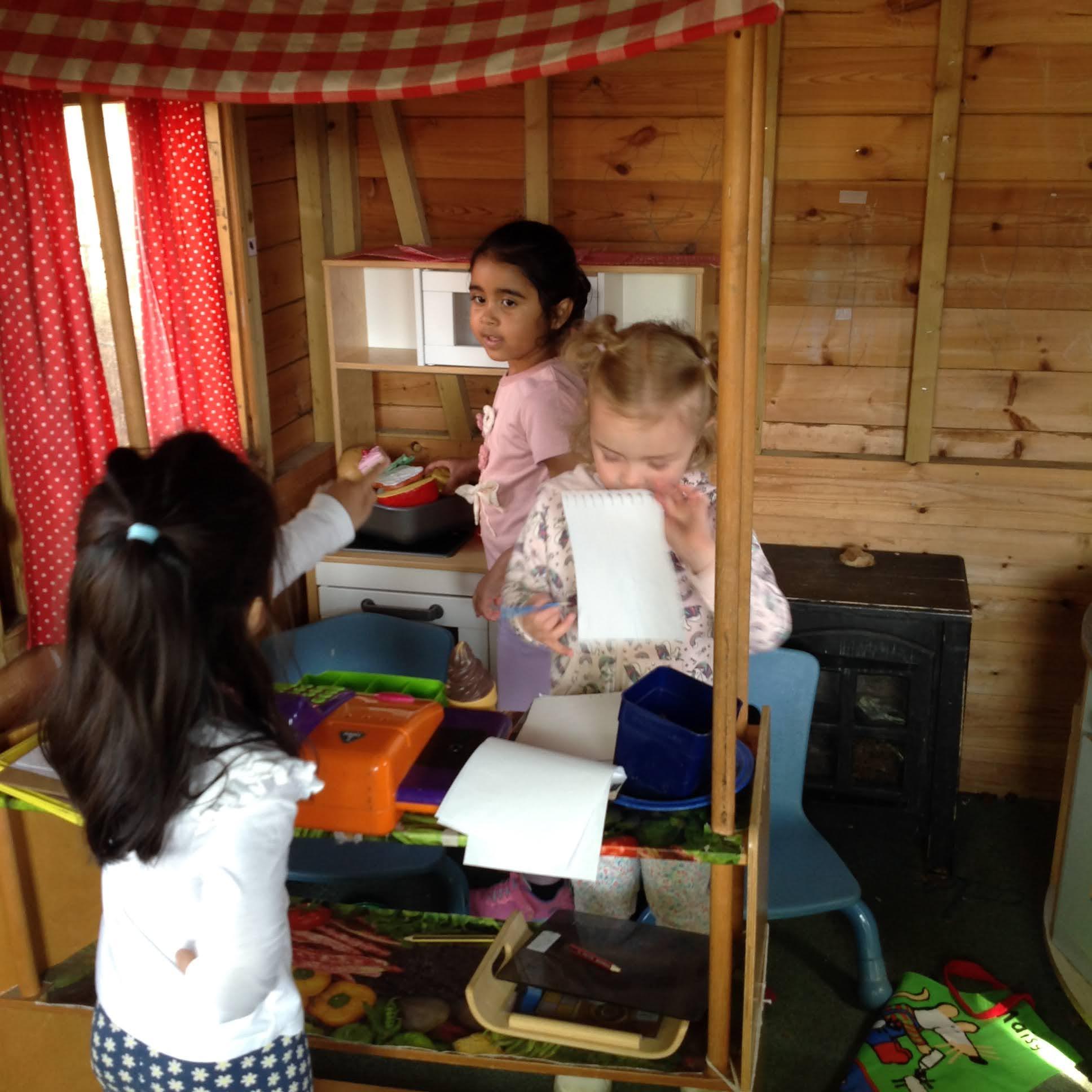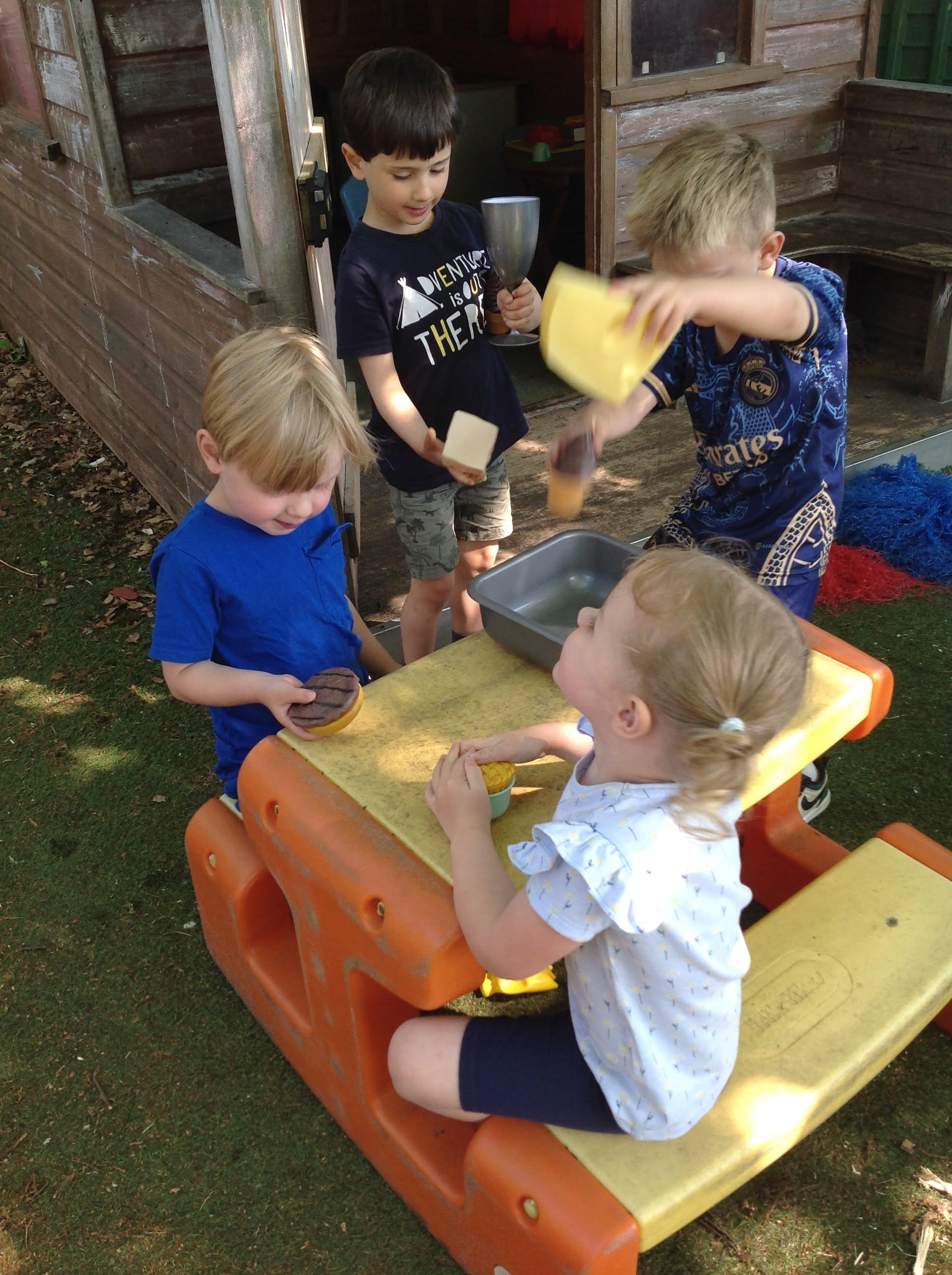 The Barn Owls have been very busy in the garden this week. The Wendy House became the Hungry Caterpillar cafe, where children took turns writing orders and serving customers.