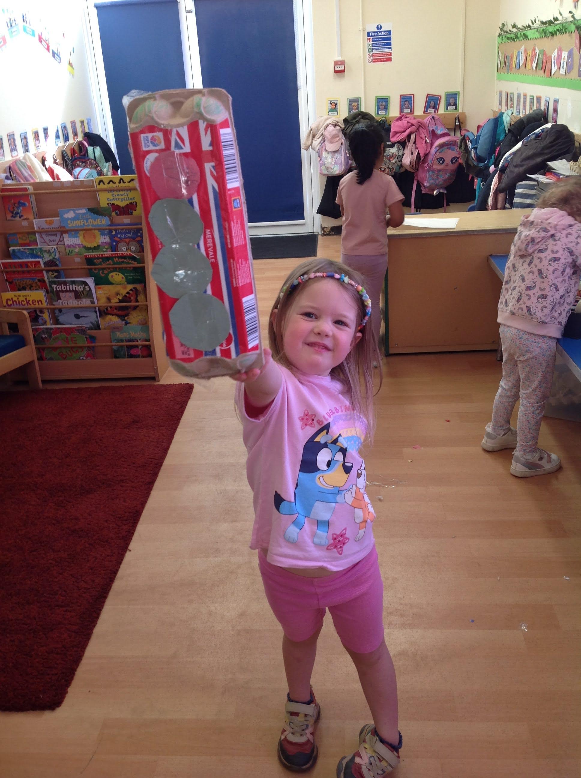 On Thursday we learnt about VE day and why is it celebrated. We decorated the garden with bunting, and made our own flags.