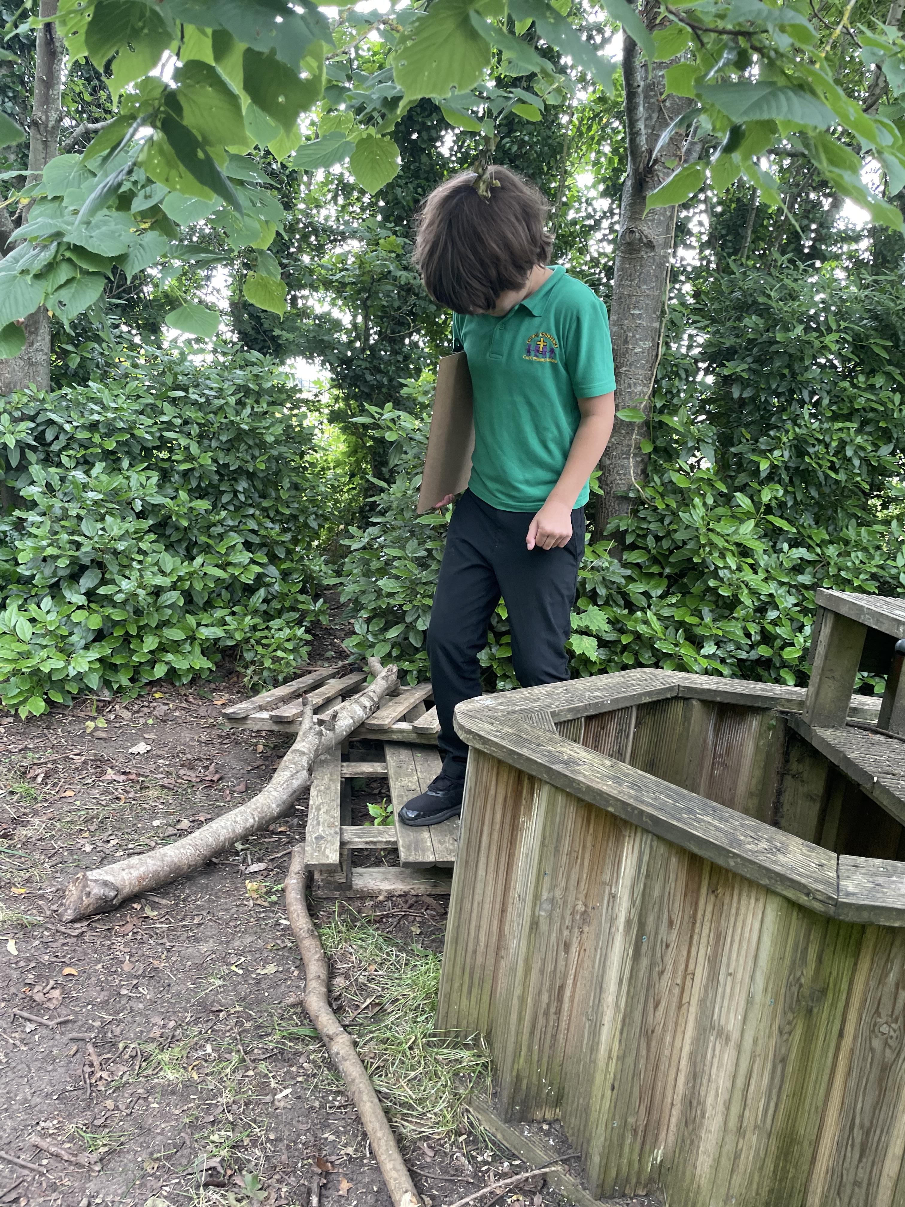 Visiting Forest School on a fact finding mission for our persuasive leaflet writing.