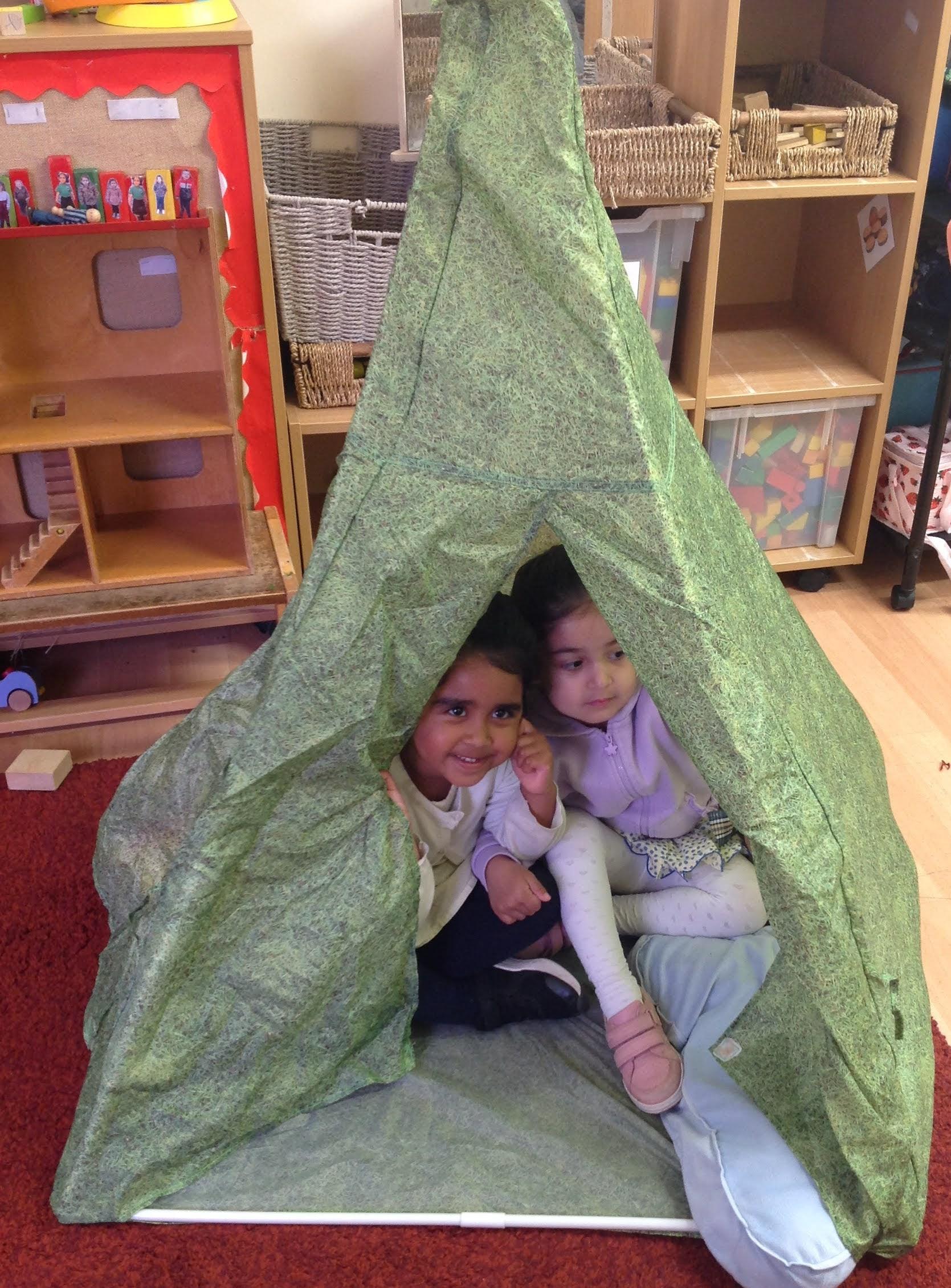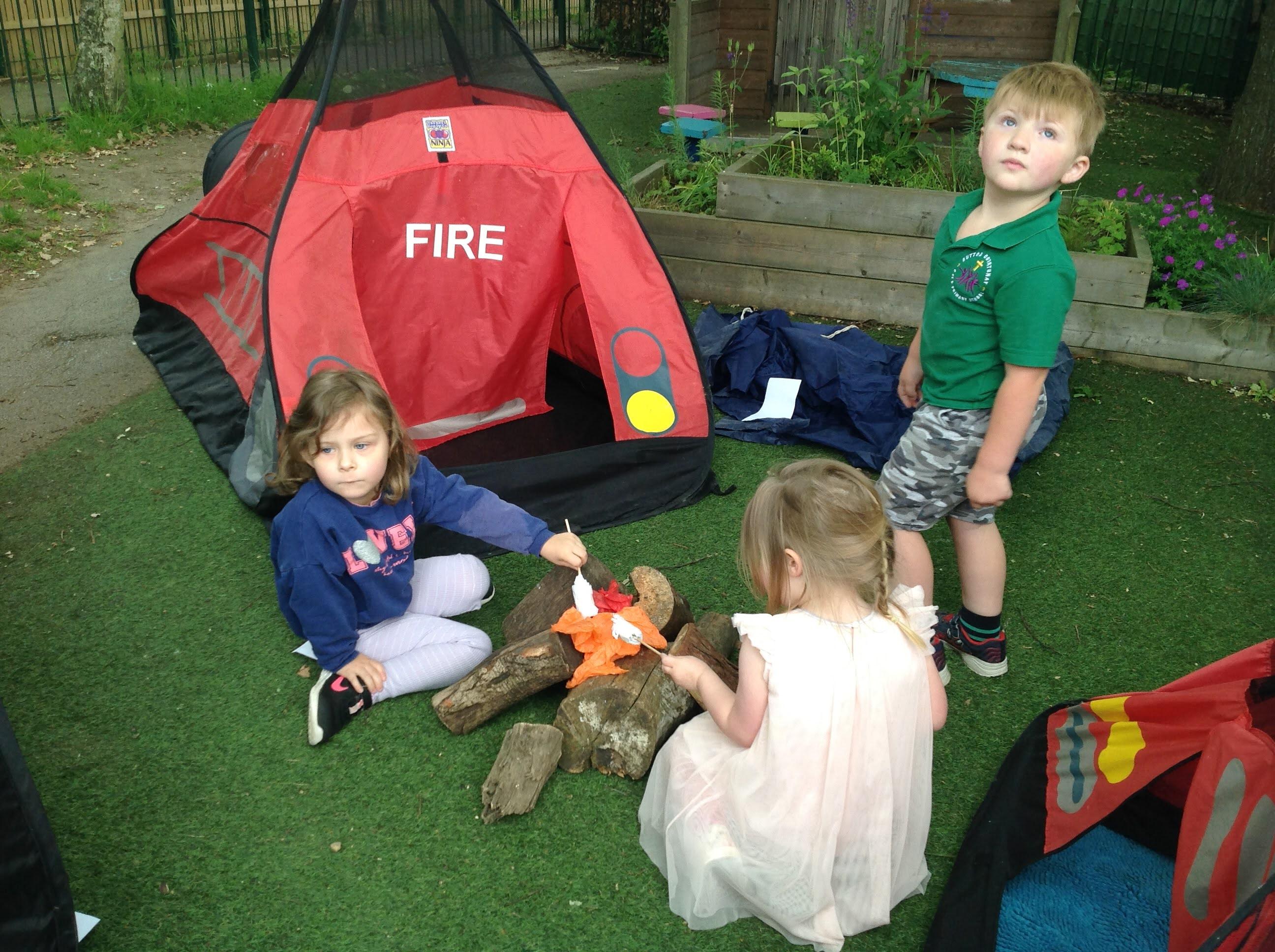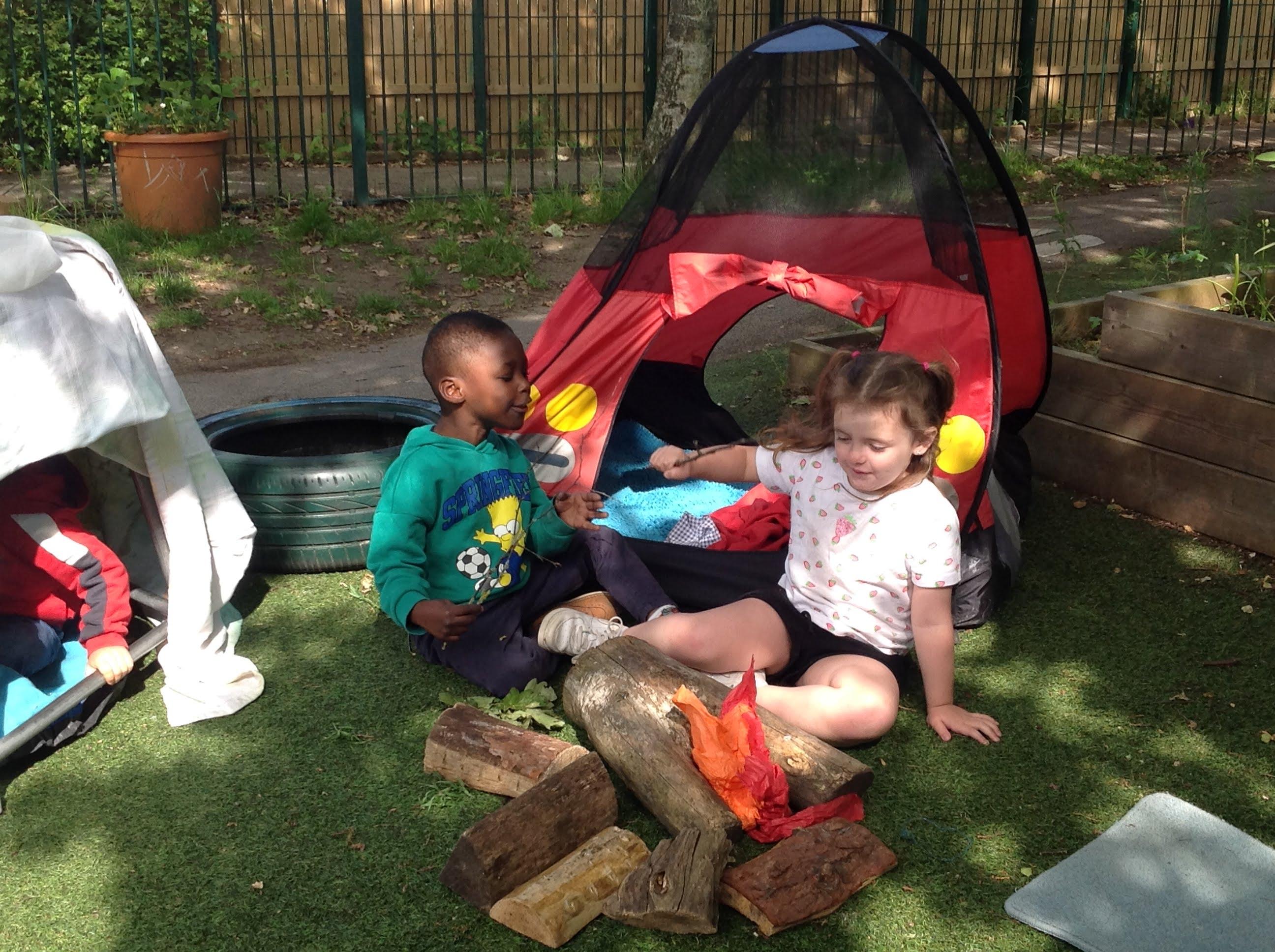 The Barn Owls have been camping this week in our garden with a pretend campfire to toast our tissue paper marshmallows! They have also been making their own tents and dens with blankets.