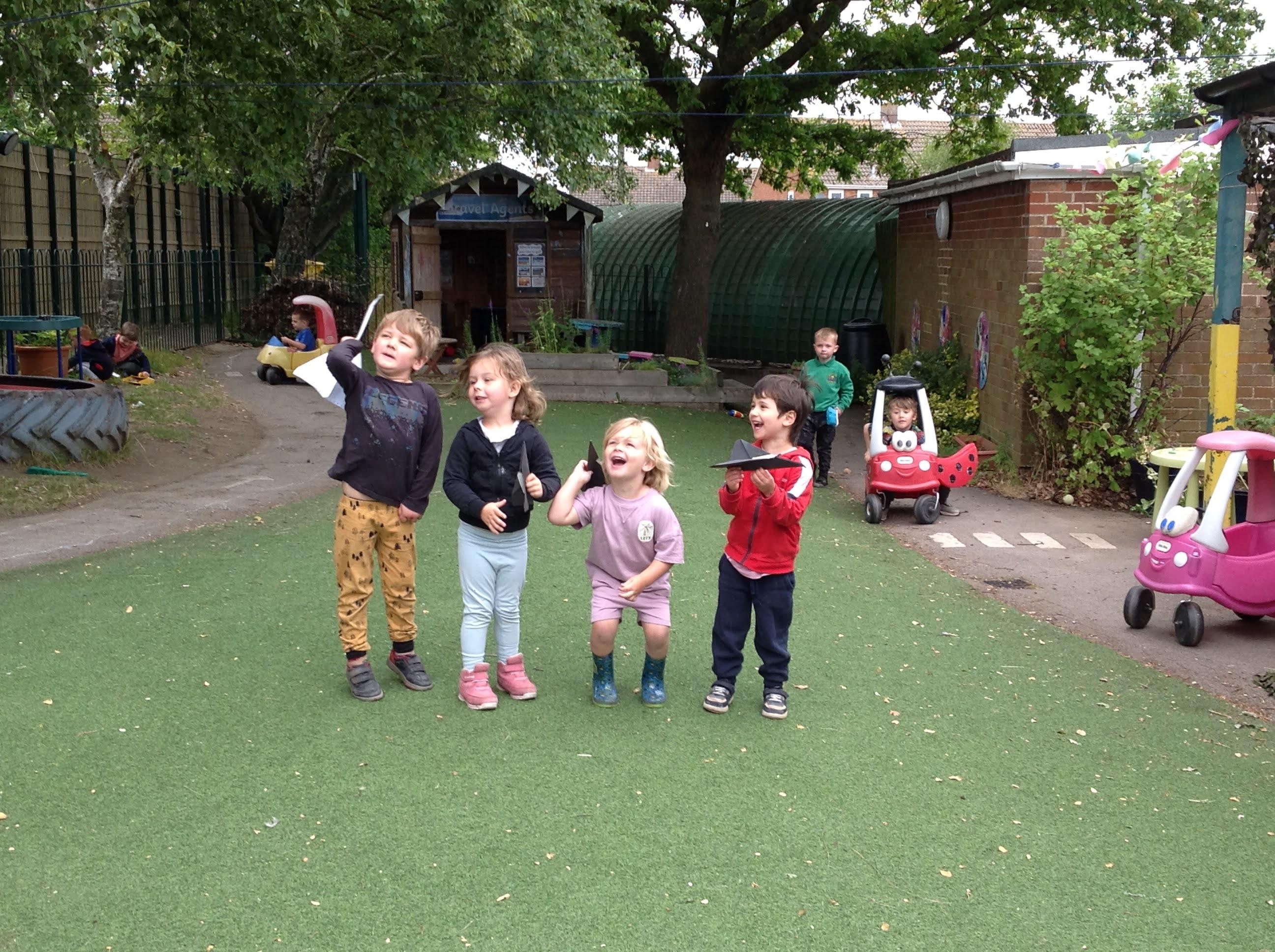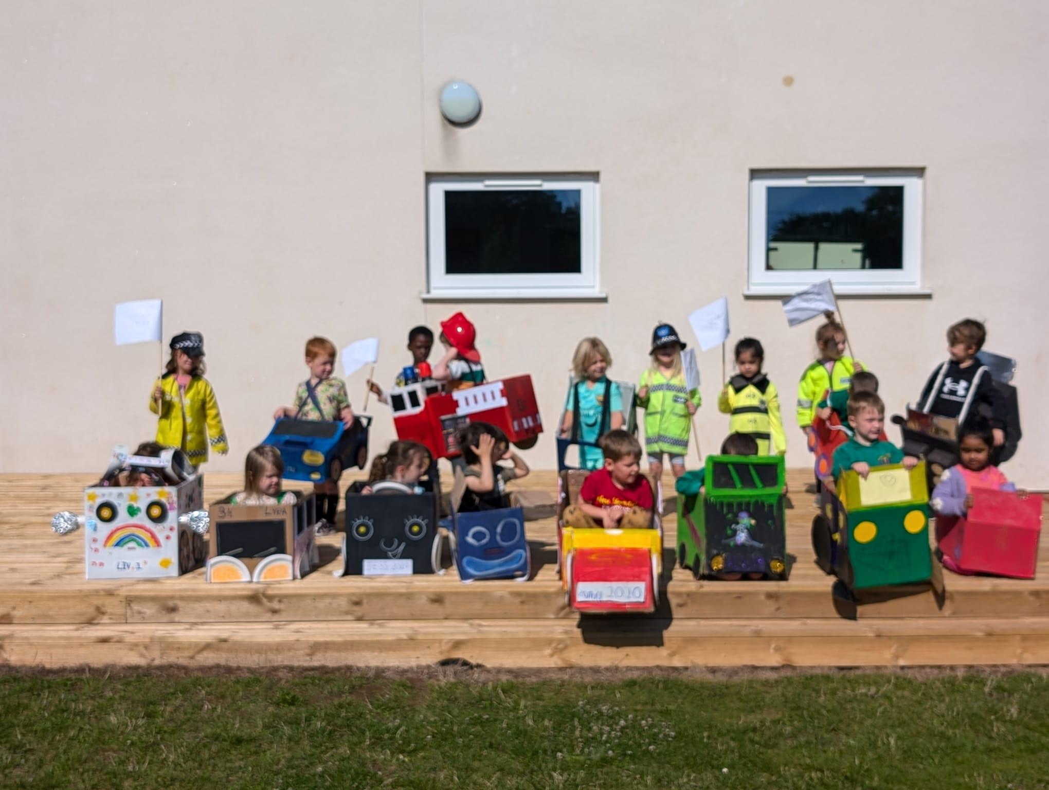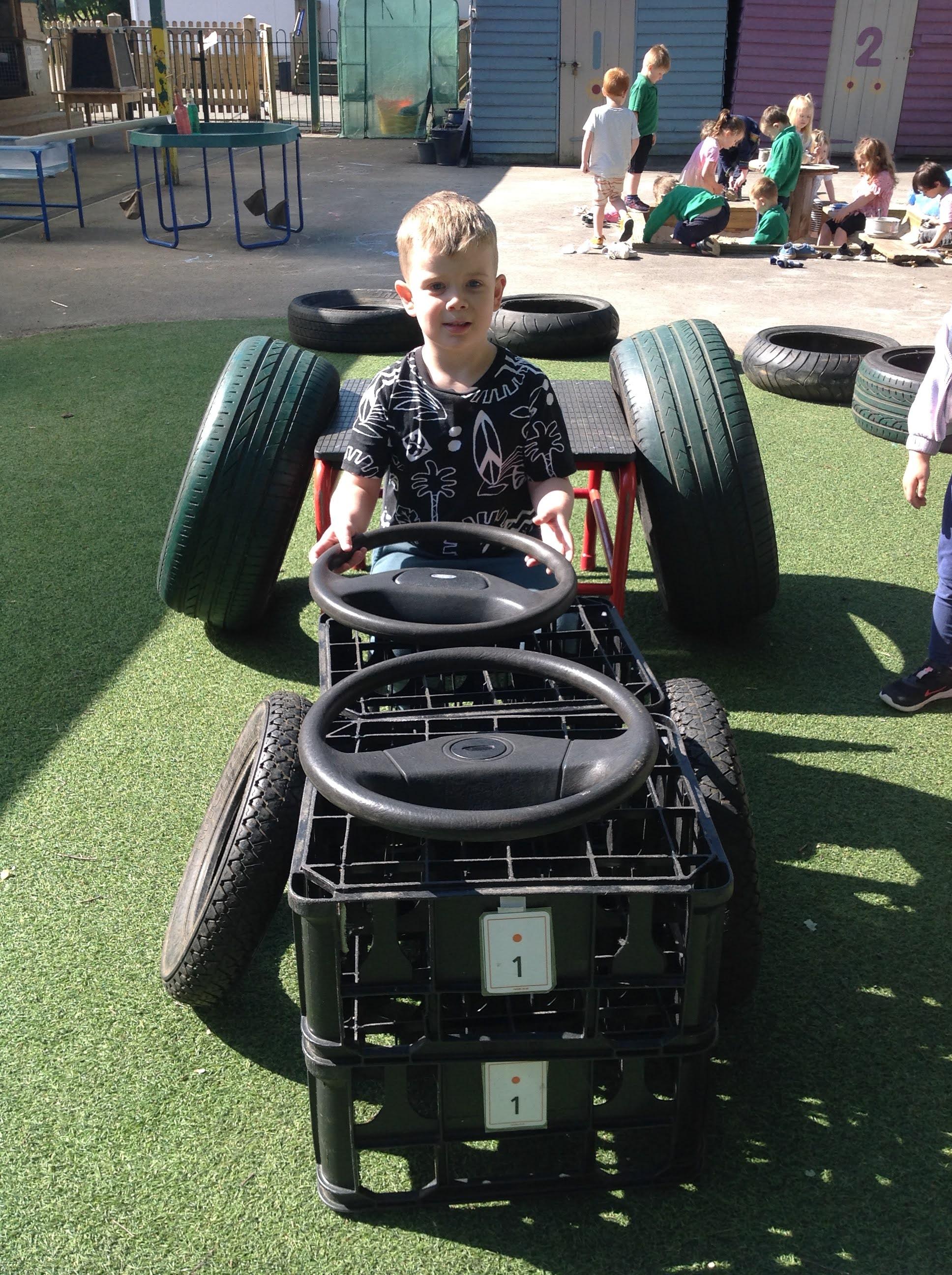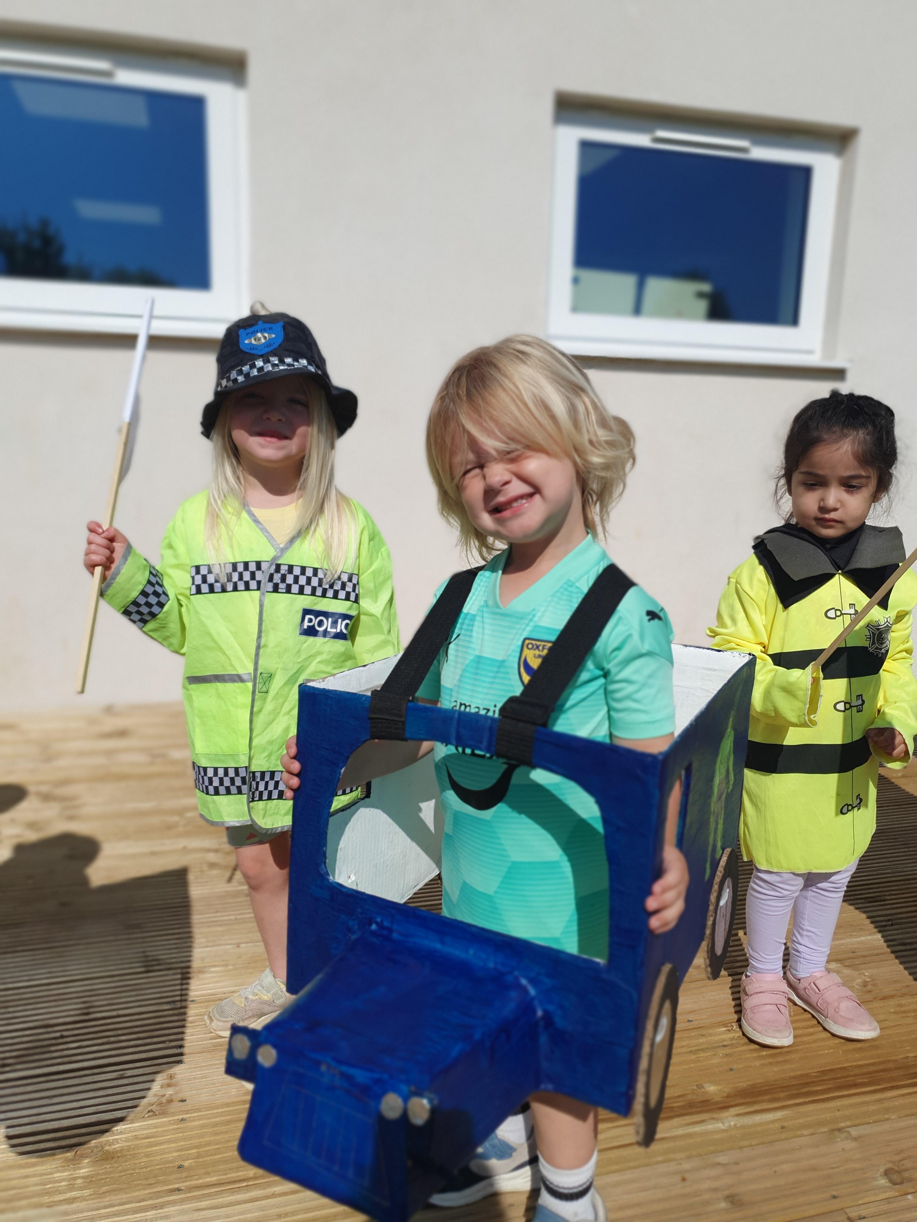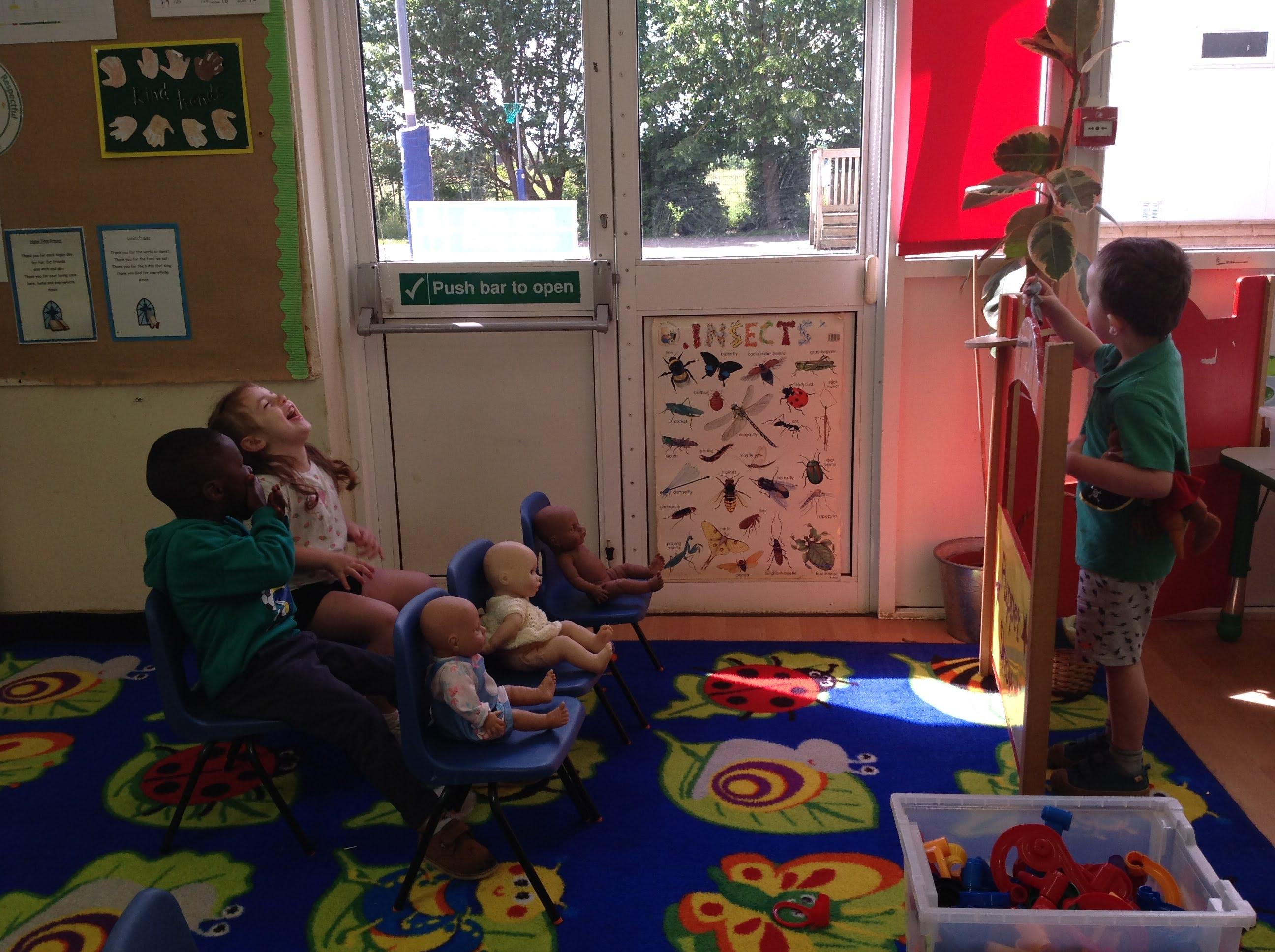 We have been making and travelling on buses, just like the red double decker buses in London. Our Wendy House has become a Travel Agents and the Barn Owls have been busy booking holidays to sunny destinations!