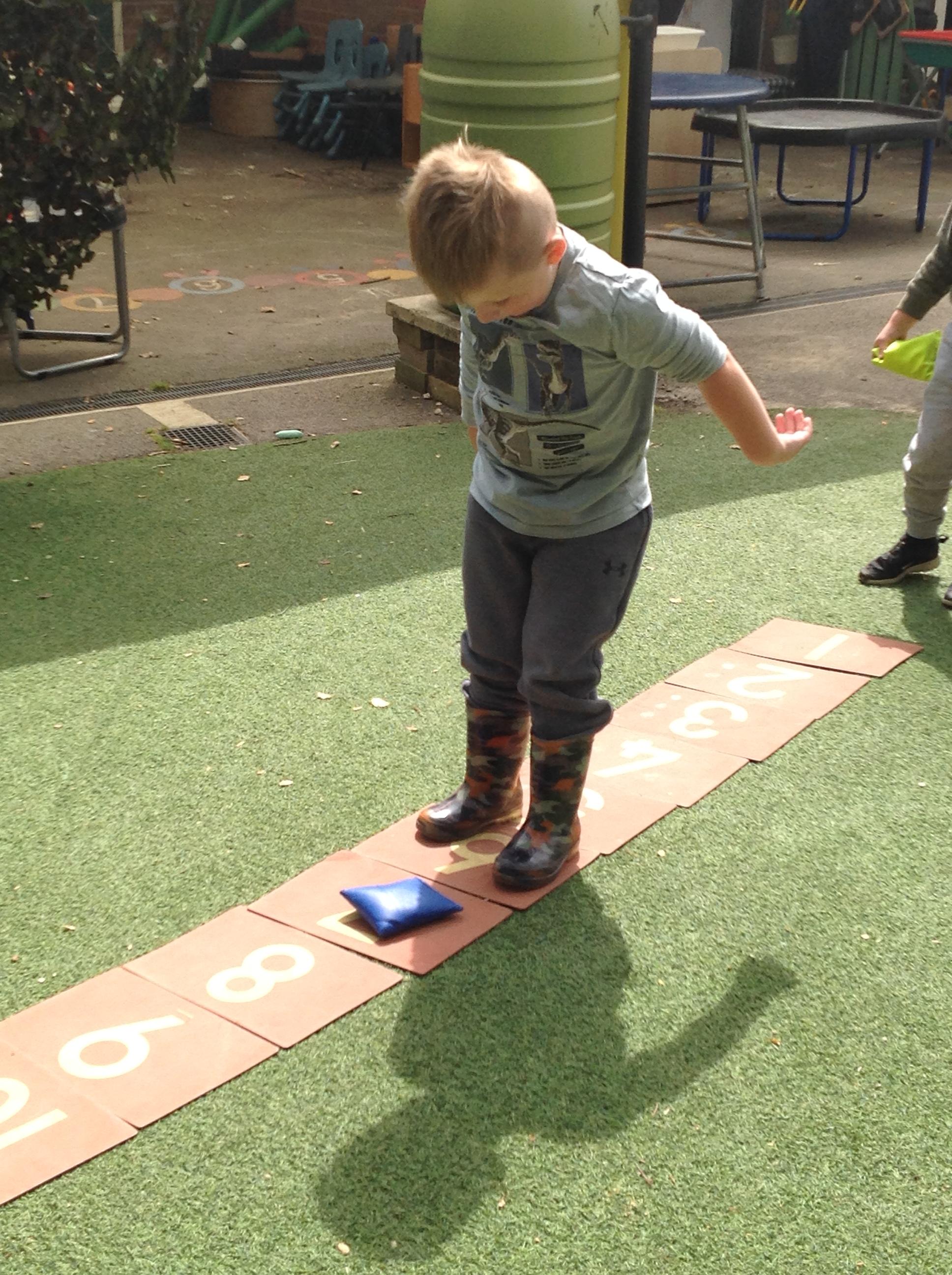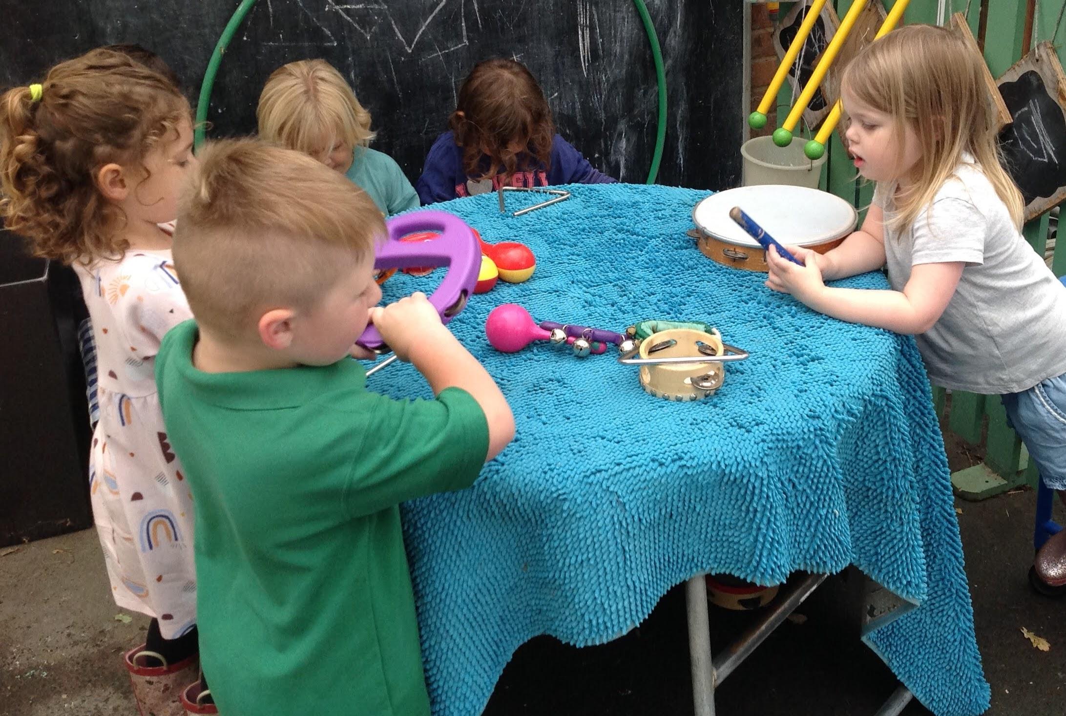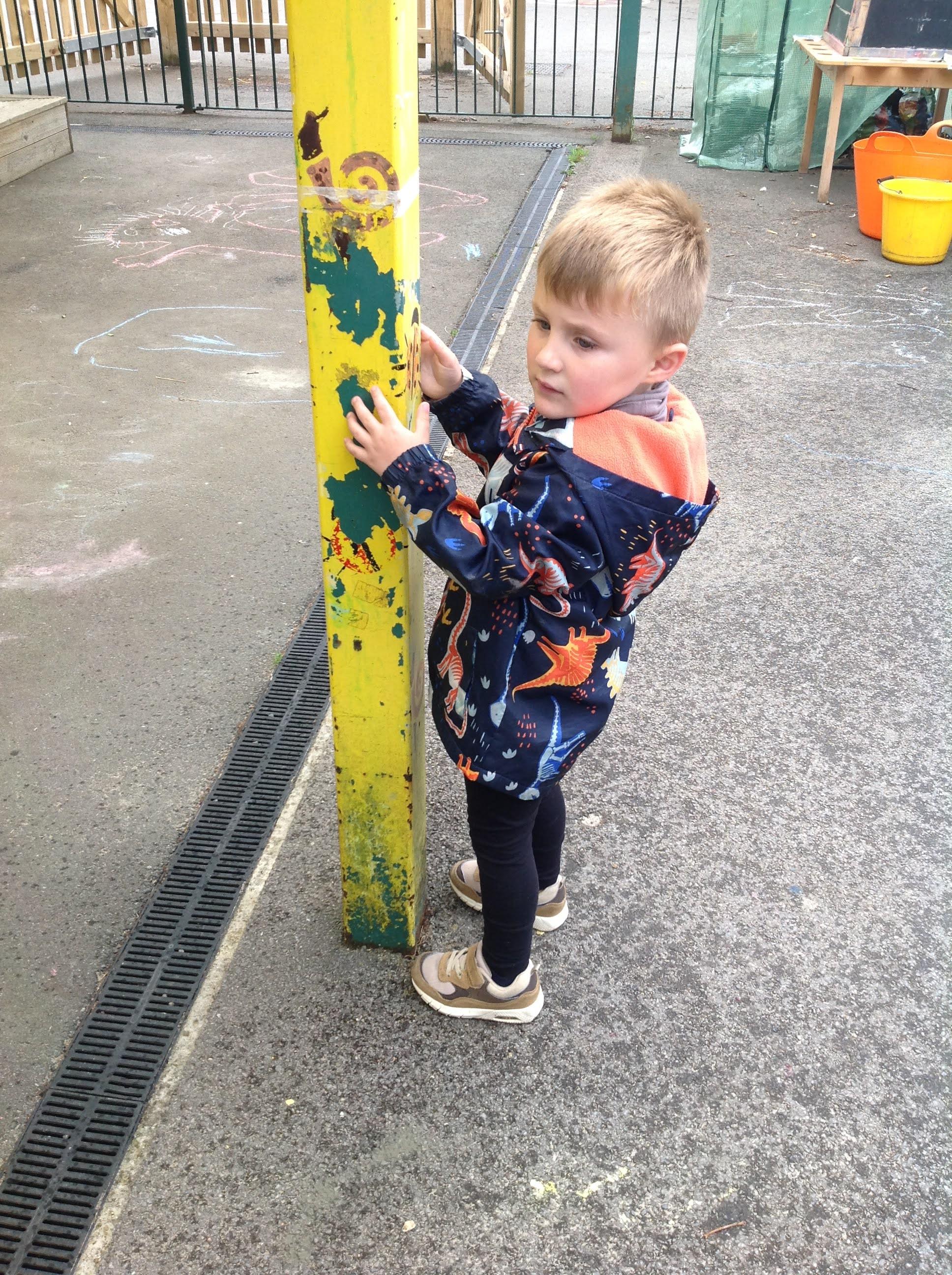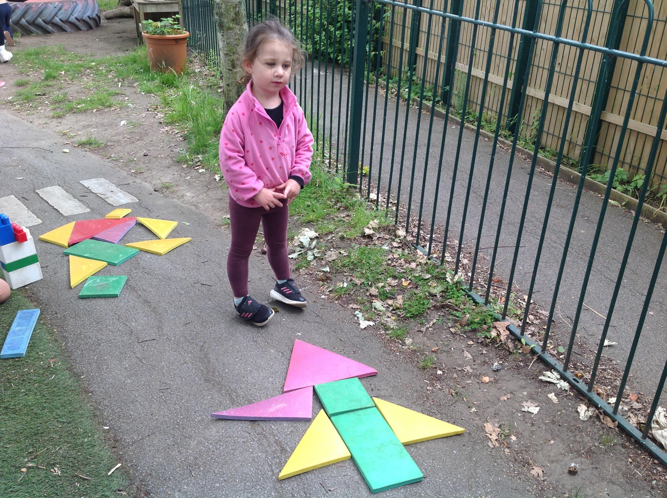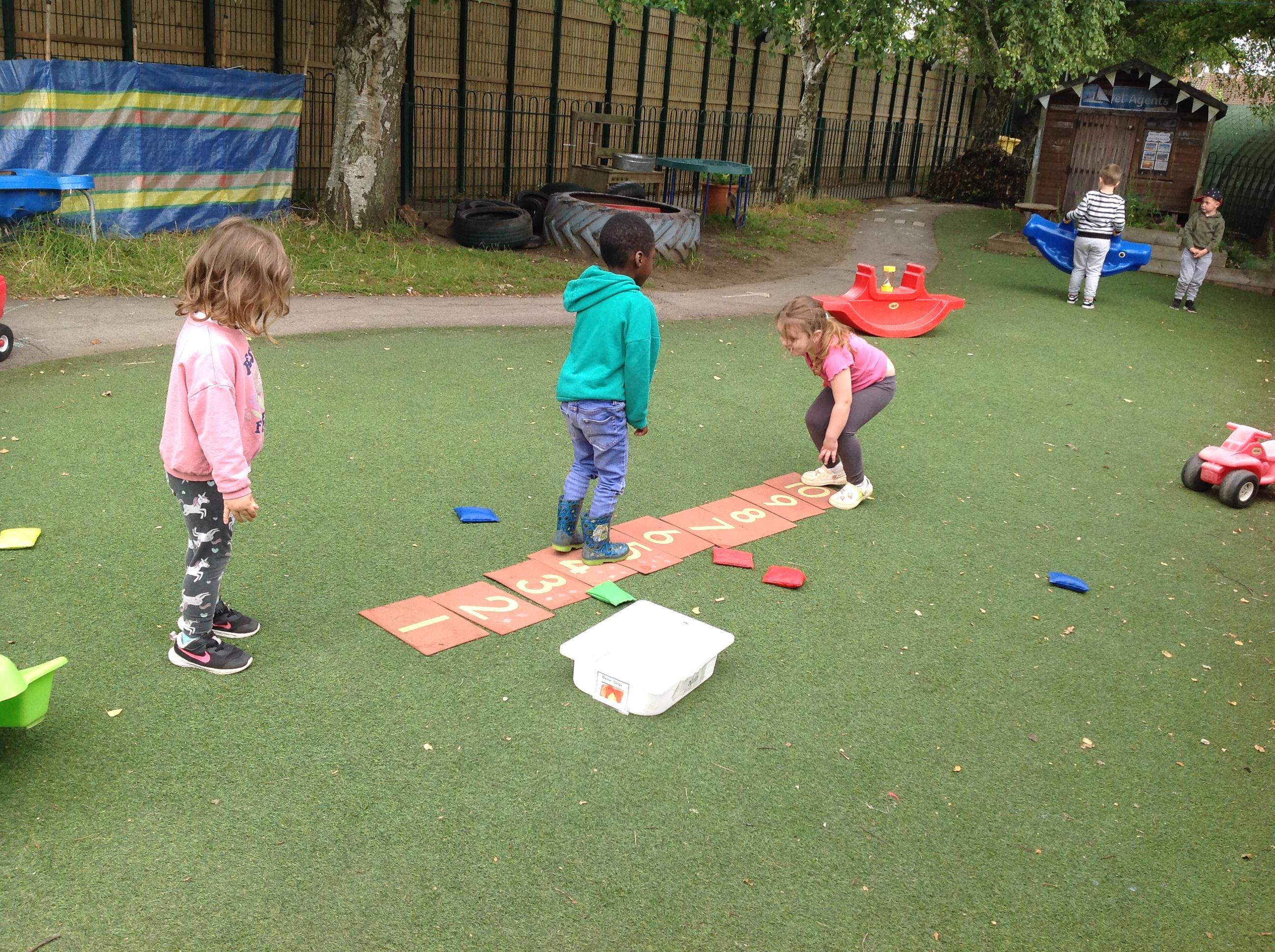 This week we have been reading the story The Train Ride by June Crebbin. We have been making trains and tracks with a variety of resources. There have also been creative ways to cool down in the heat from putting our feet in the tuff tray of water and running under the jets of water from the hose. You may have noticed that our garden kitchen has been moved about, allowing it to be easier to use water in it. There are four new water containers to hold the different colour water for mixing. All the children have enjoyed spending time in there this week.