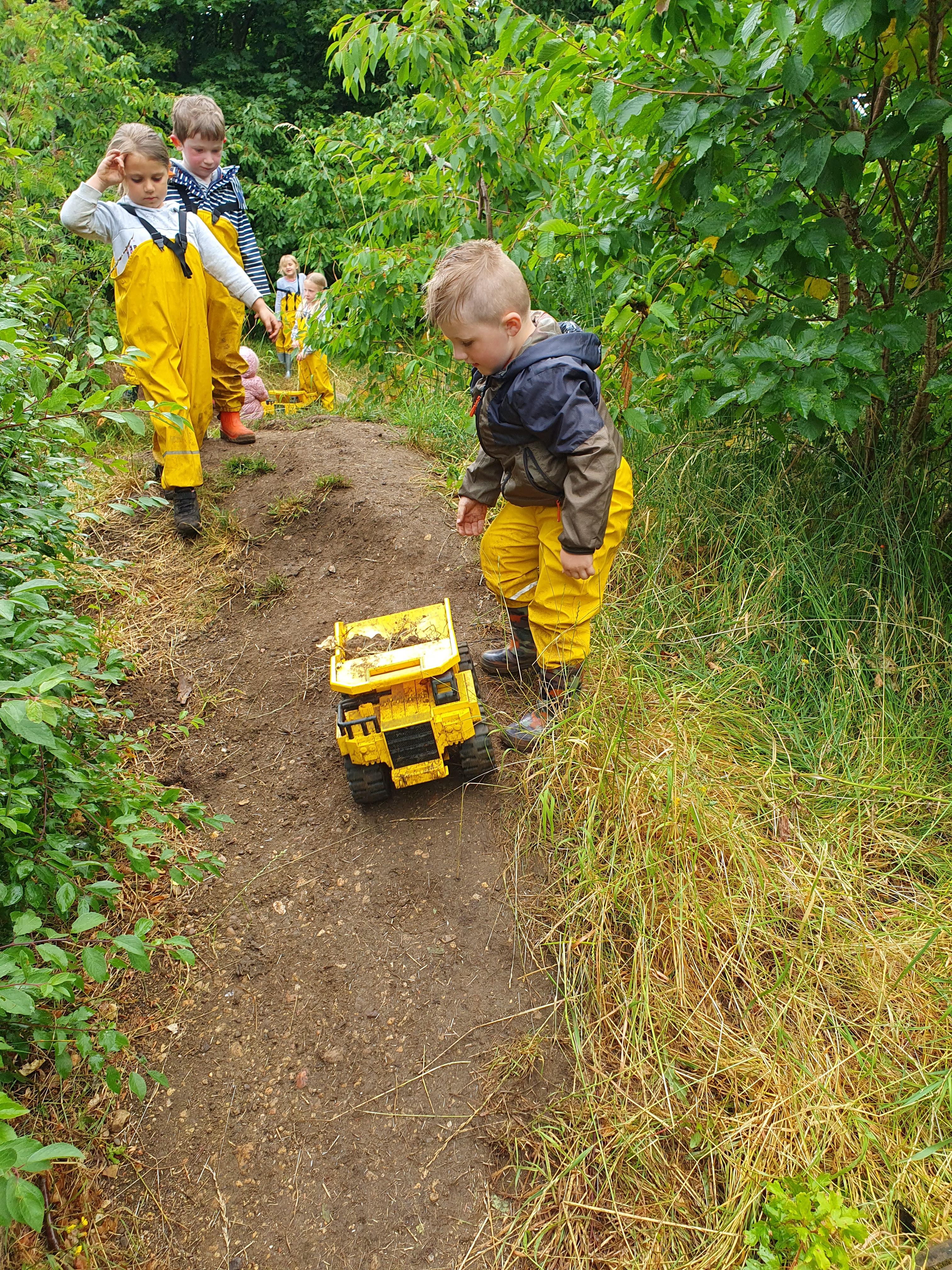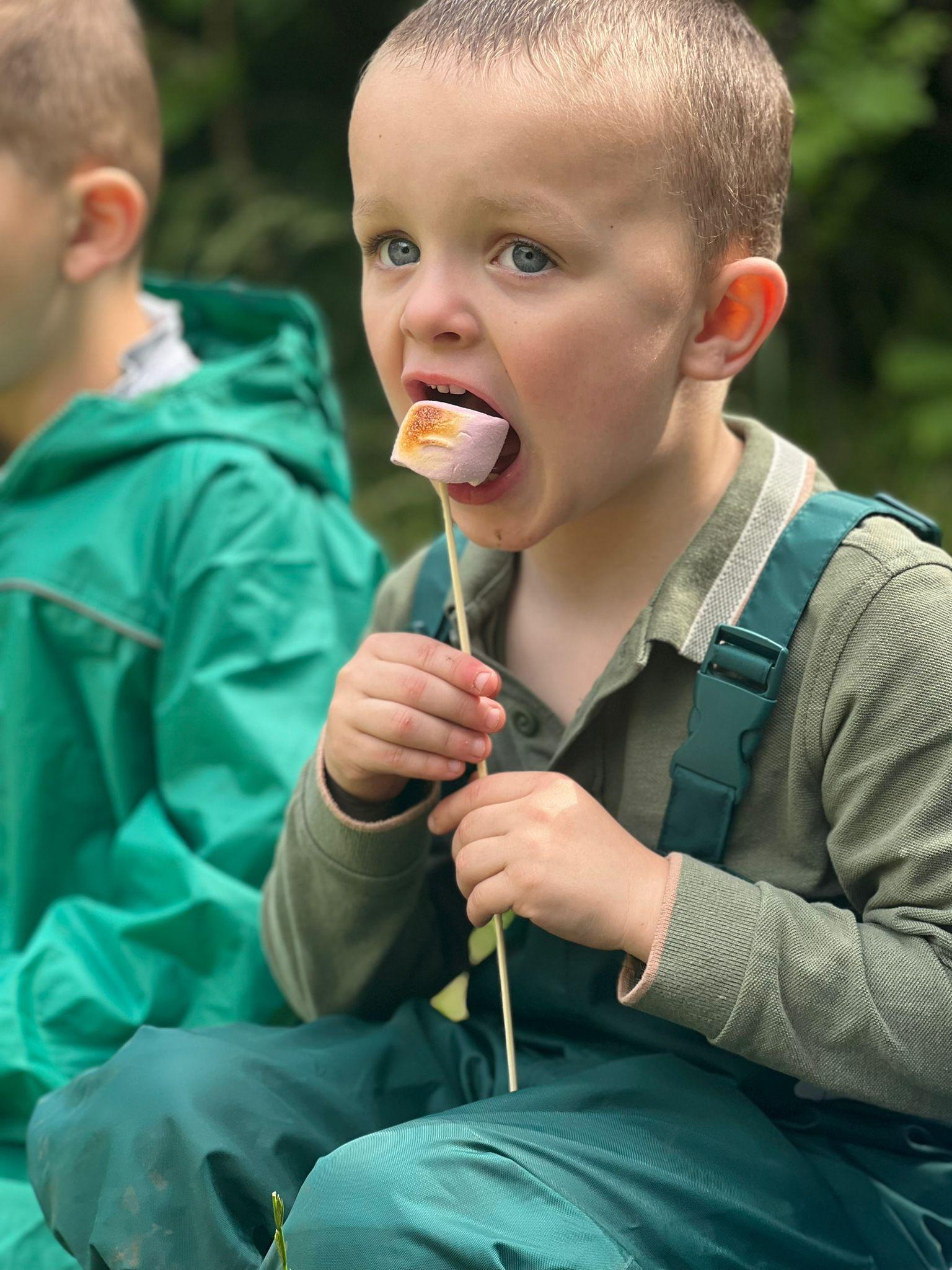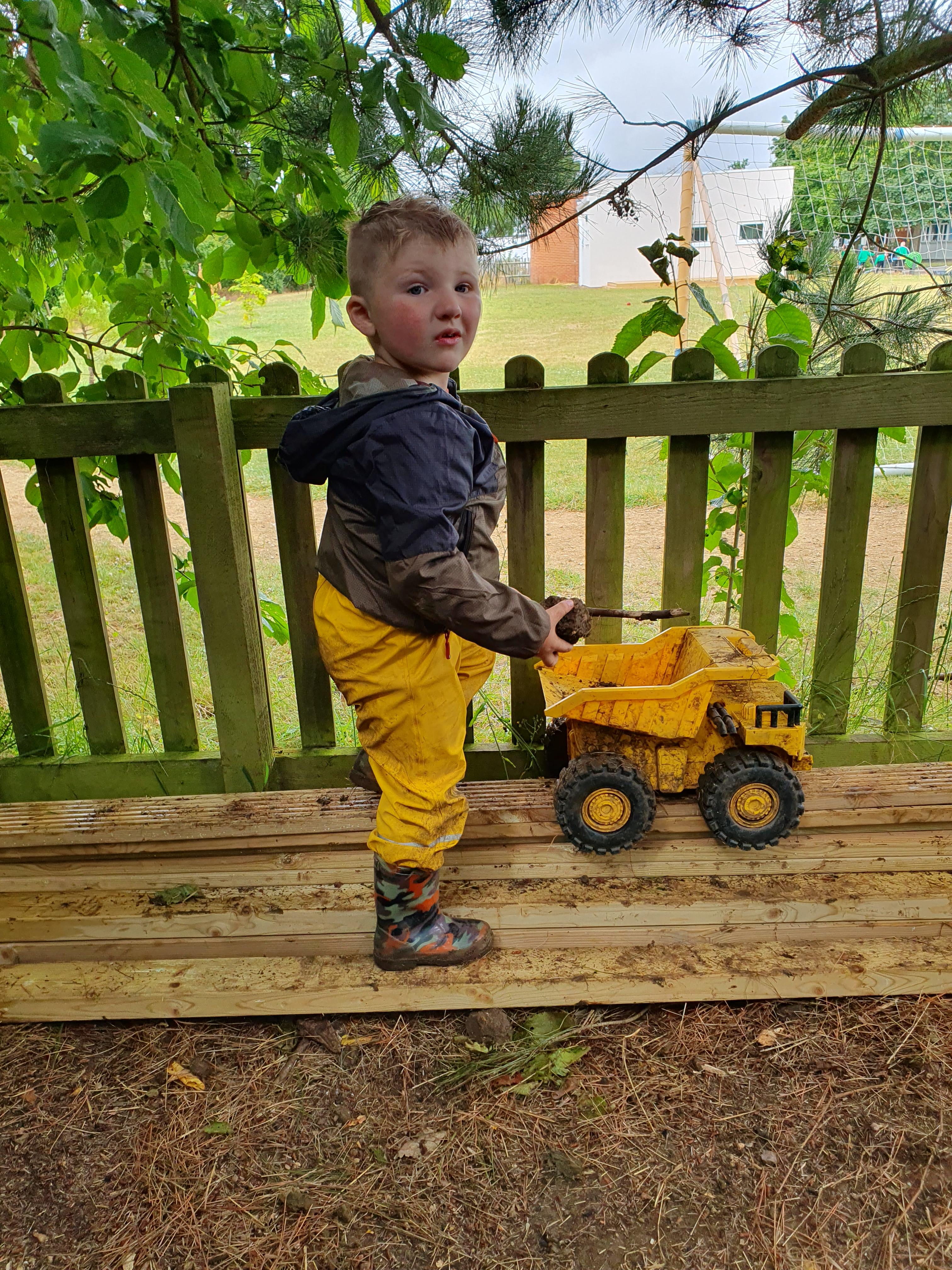 On Friday some of us had our Forest school session and the wet weather added to the fun of toasting marshmallows and pushing the diggers down the muddy hill!