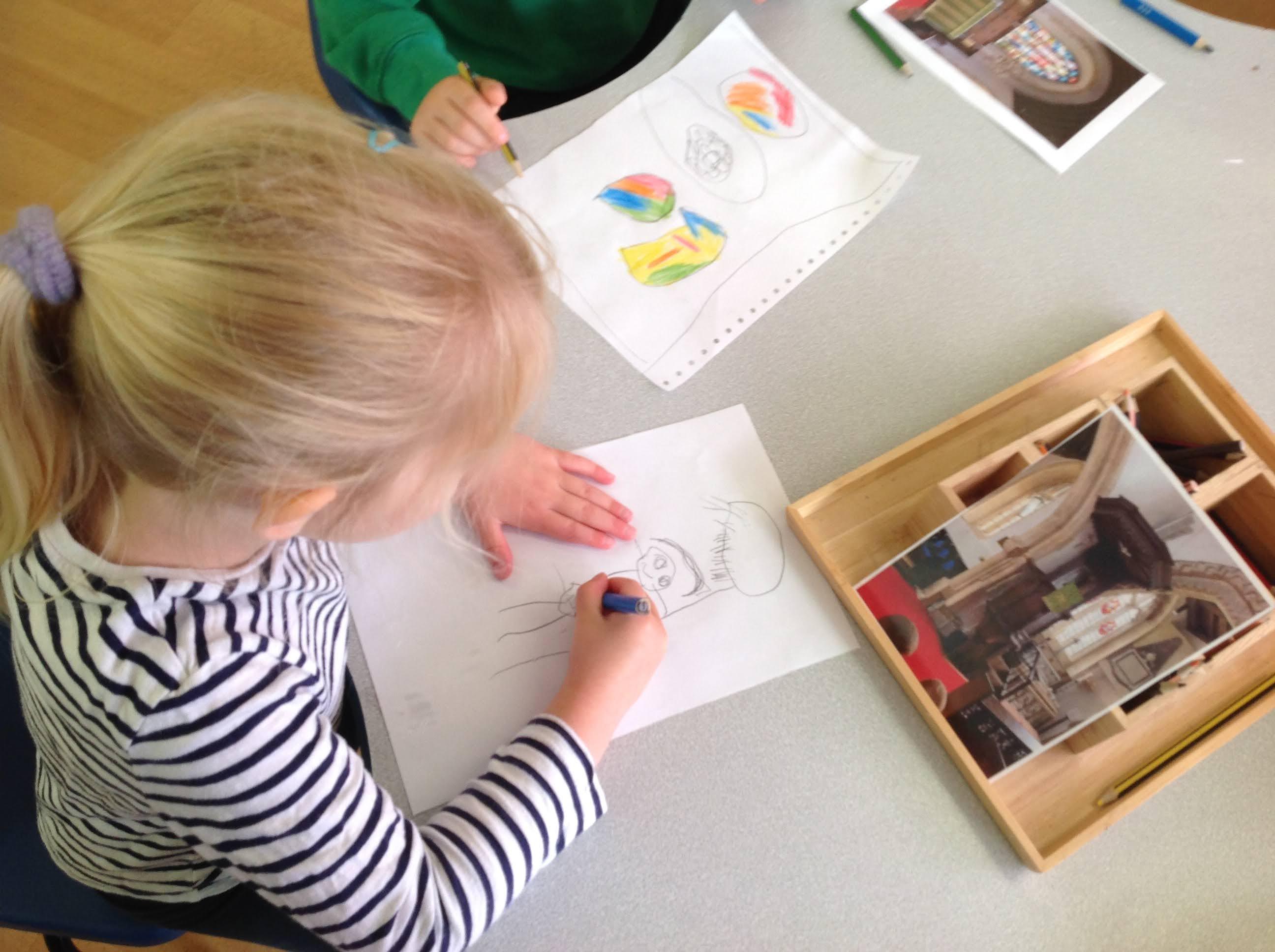It has been a very busy week as we went on the minibus to the village Green. As part of the local history week we wanted to see how the the Green had changed over time. We had looked at old black and white photographs to see what is the same and what is new. The Barn Owls had their photograph taken by the tall tree that was very small in the original photograph. We enjoyed exploring All Saints church and The Abbey.