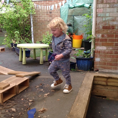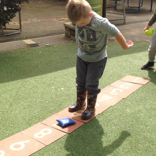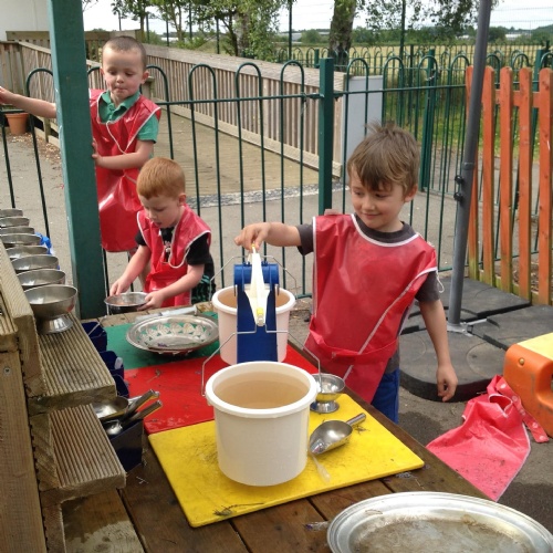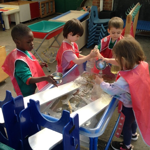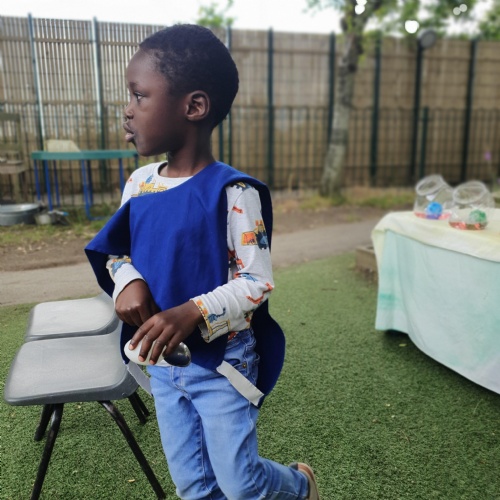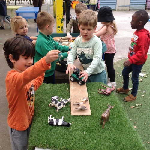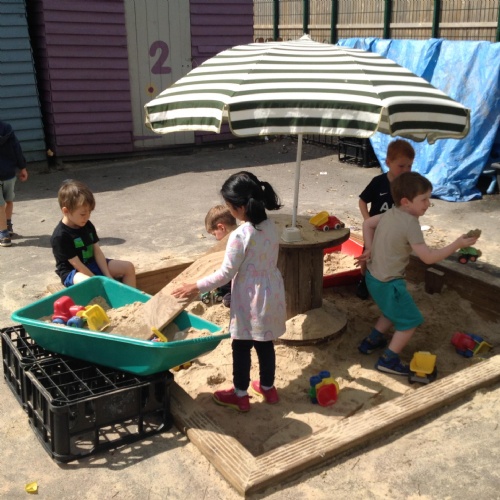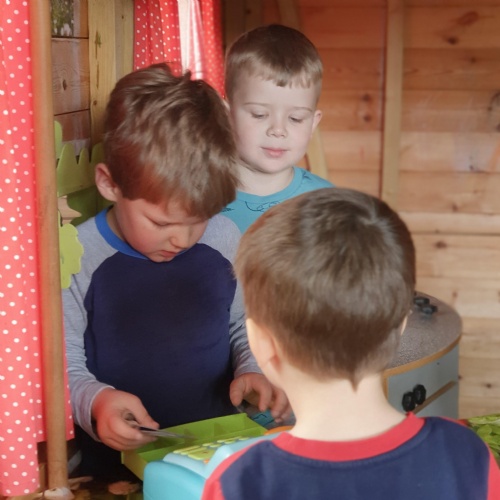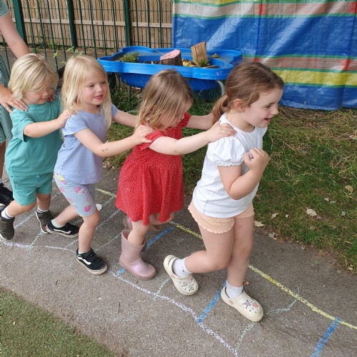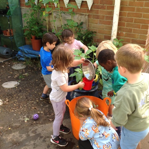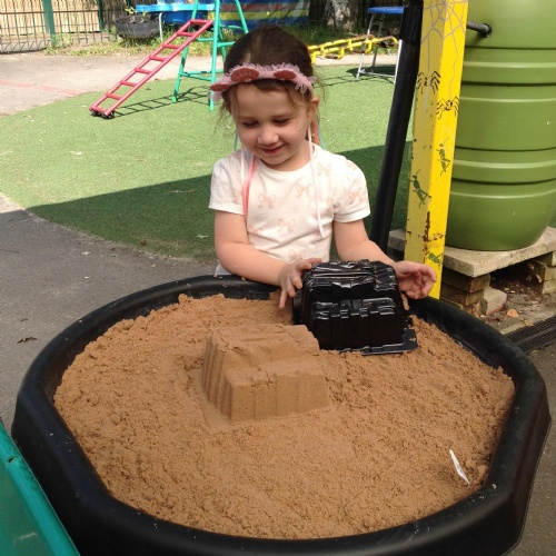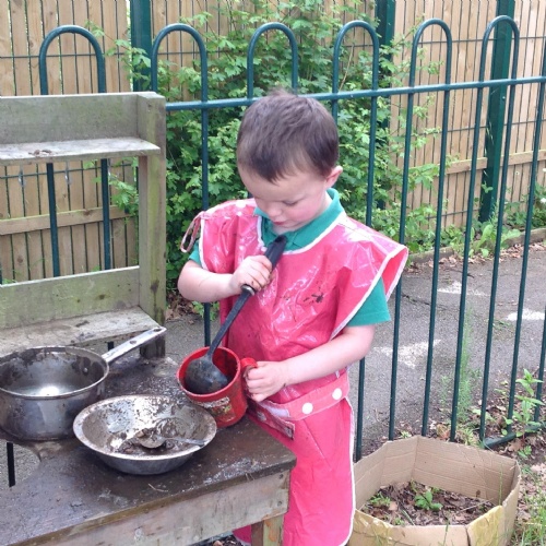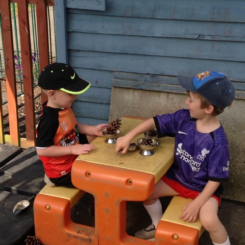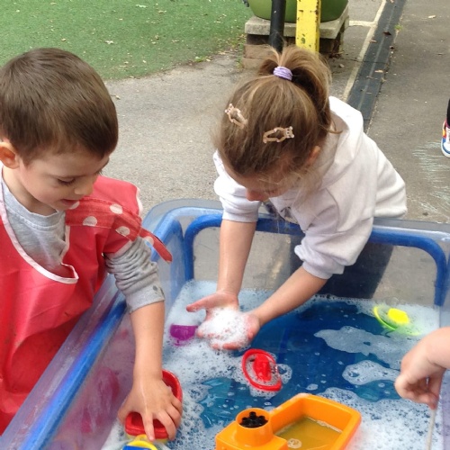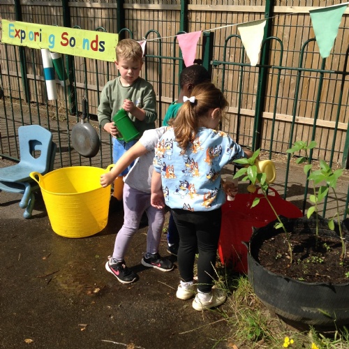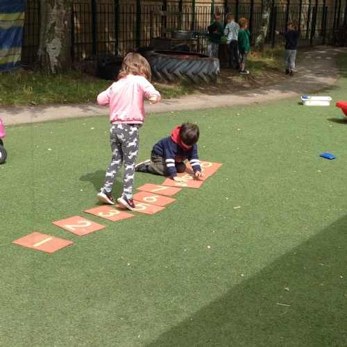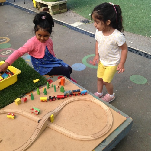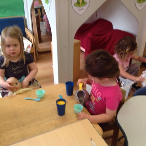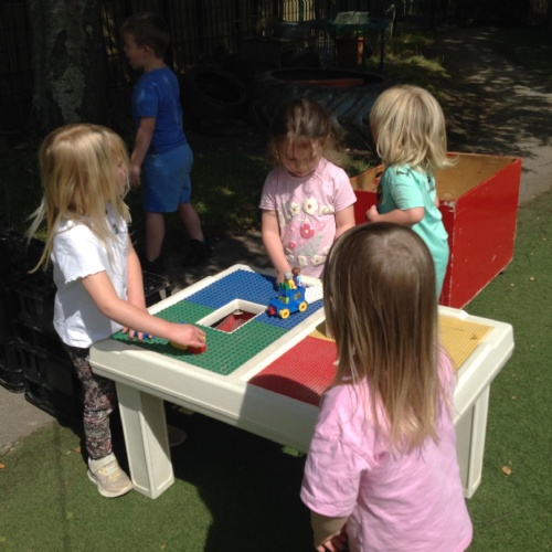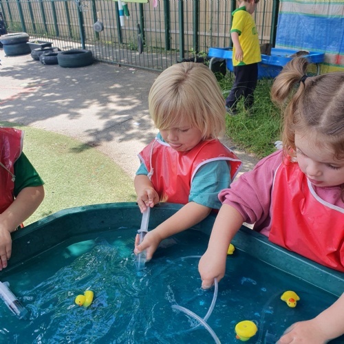 This week we have been reading the story The Train Ride by June Crebbin. We have been making trains and tracks with a variety of resources. There have also been creative ways to cool down in the heat from putting our feet in the tuff tray of water and running under the jets of water from the hose. You may have noticed that our garden kitchen has been moved about, allowing it to be easier to use water in it. There are four new water containers to hold the different colour water for mixing. All the children have enjoyed spending time in there this week.