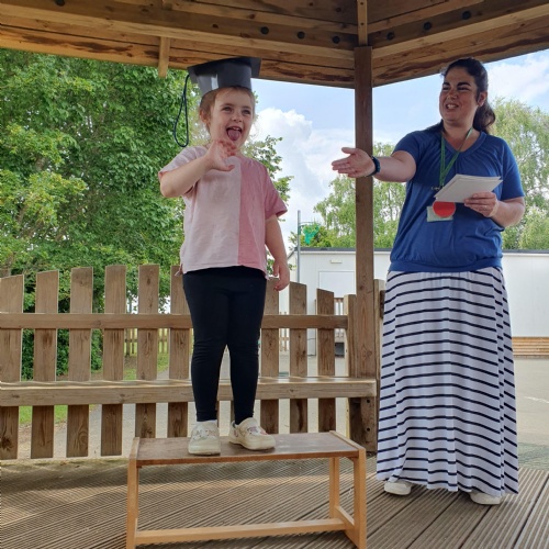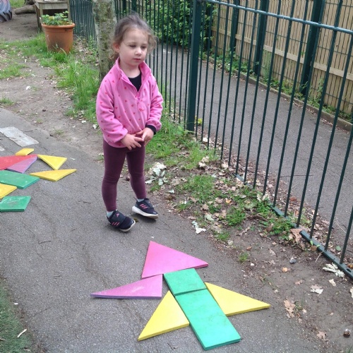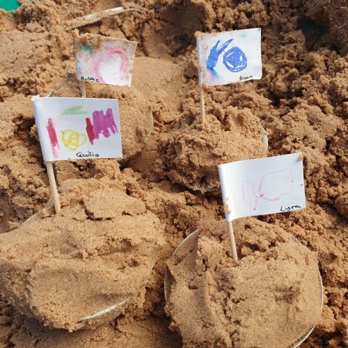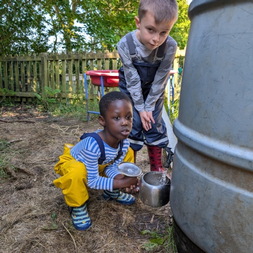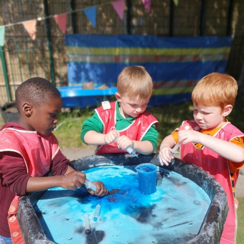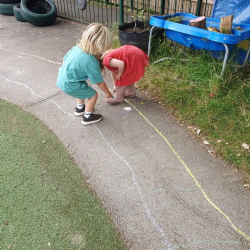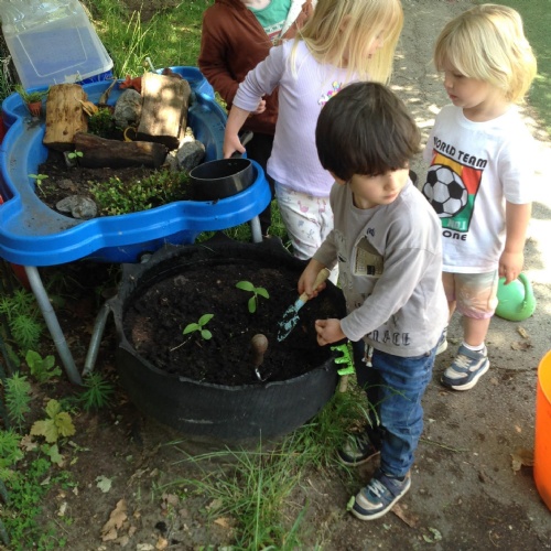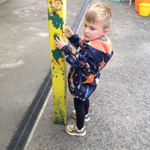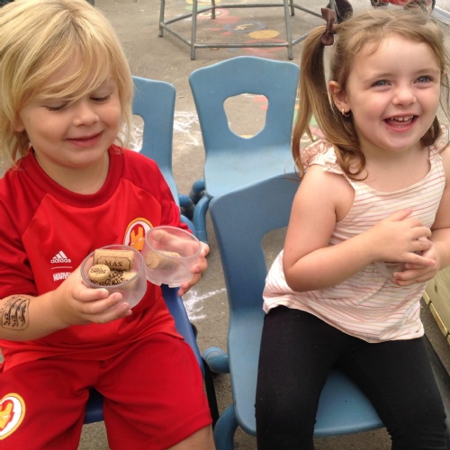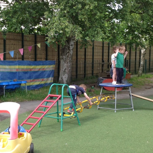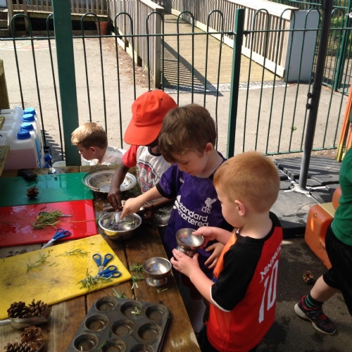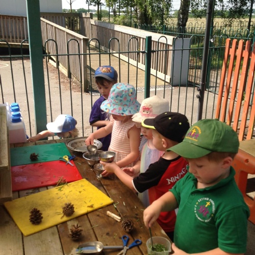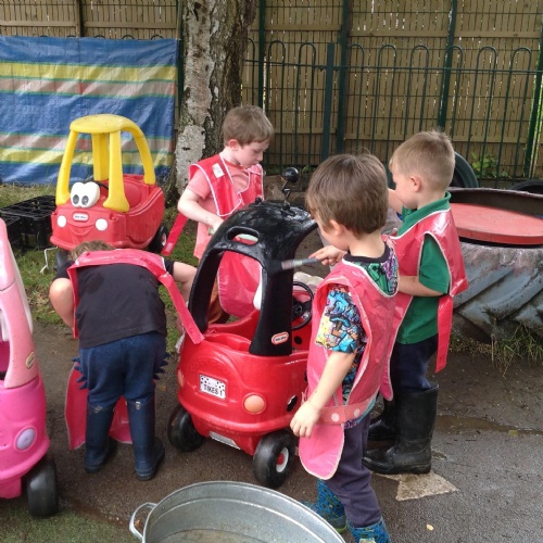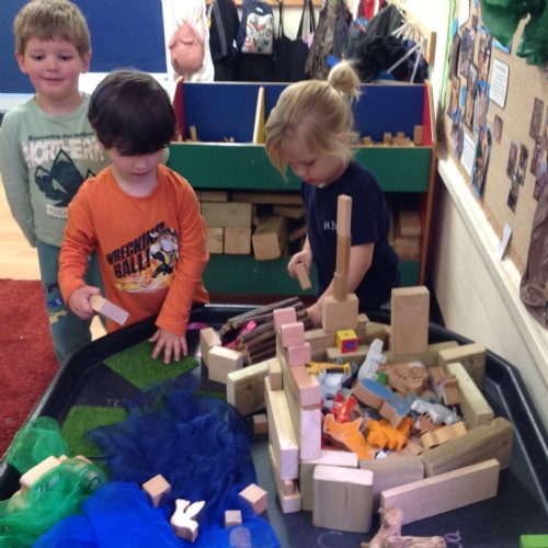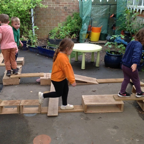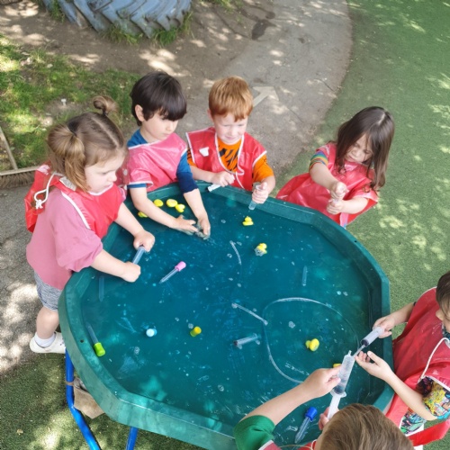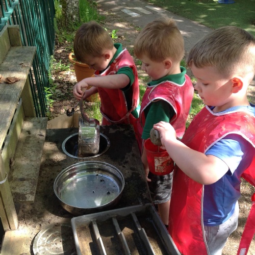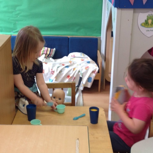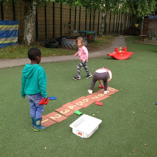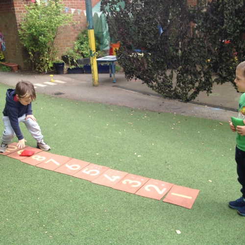 This week we have been reading the story The Train Ride by June Crebbin. We have been making trains and tracks with a variety of resources. There have also been creative ways to cool down in the heat from putting our feet in the tuff tray of water and running under the jets of water from the hose. You may have noticed that our garden kitchen has been moved about, allowing it to be easier to use water in it. There are four new water containers to hold the different colour water for mixing. All the children have enjoyed spending time in there this week.