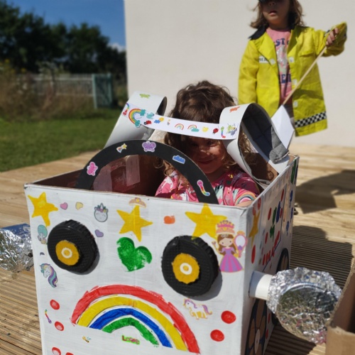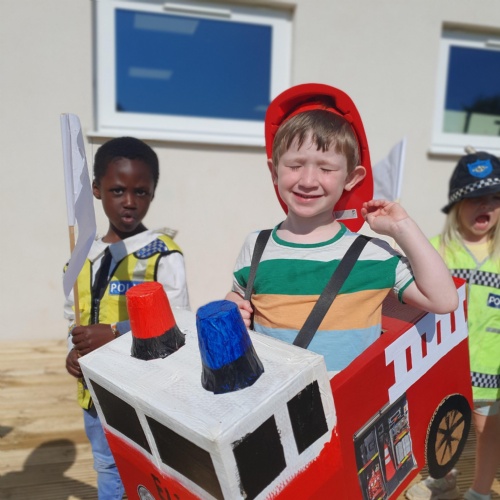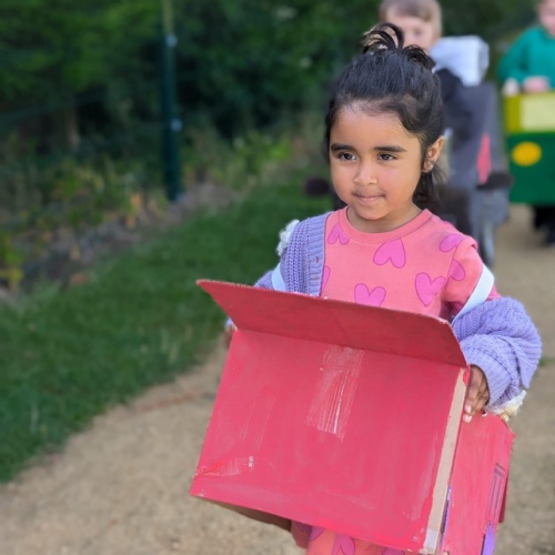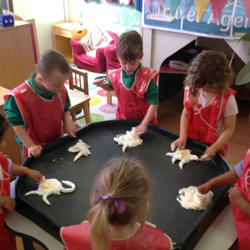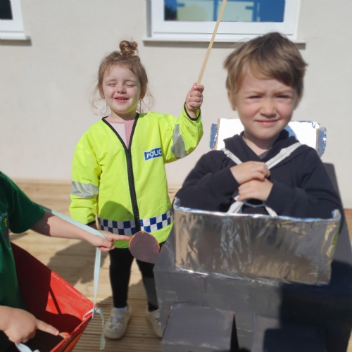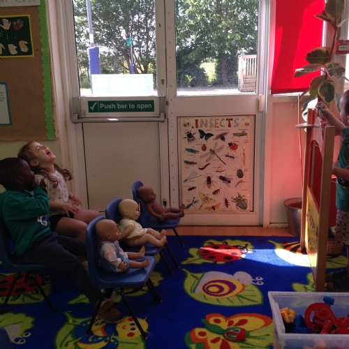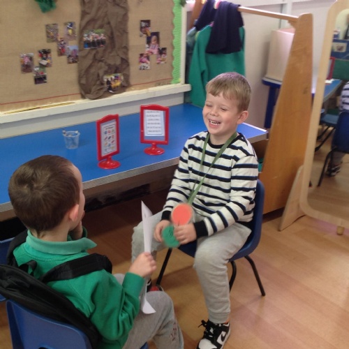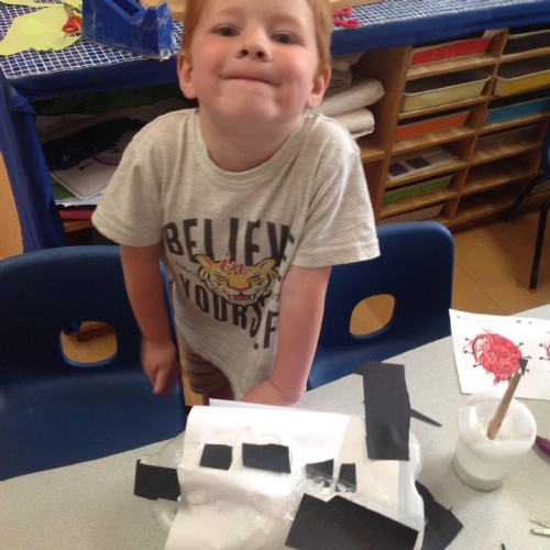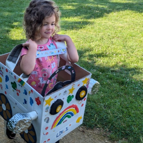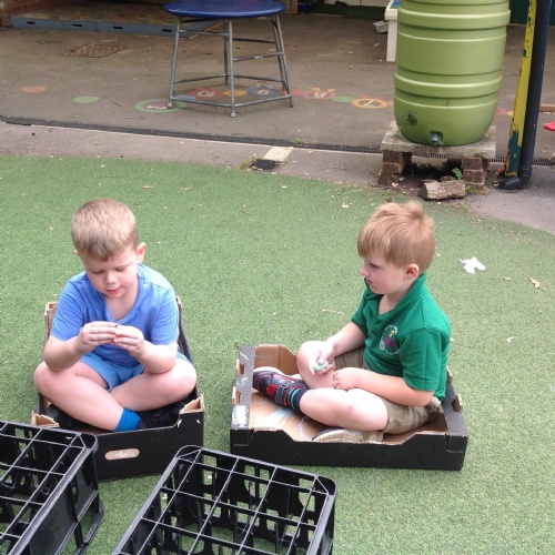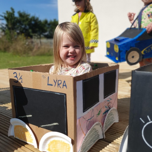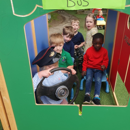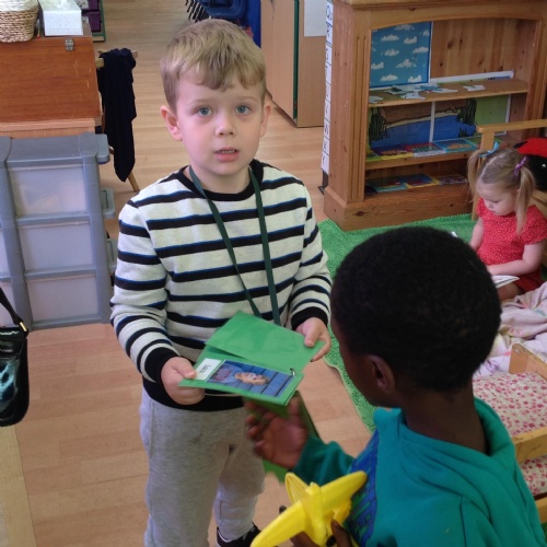We have been making and travelling on buses, just like the red double decker buses in London. Our Wendy House has become a Travel Agents and the Barn Owls have been busy booking holidays to sunny destinations!