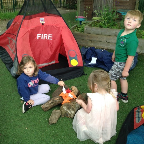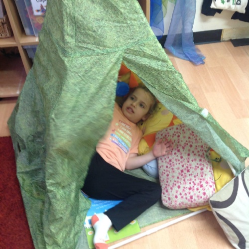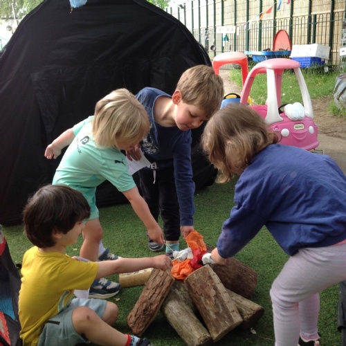 The Barn Owls have been camping this week in our garden with a pretend campfire to toast our tissue paper marshmallows! They have also been making their own tents and dens with blankets.