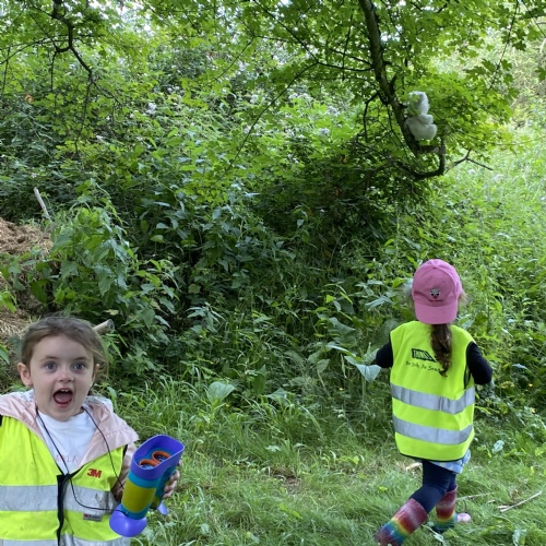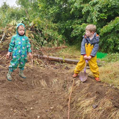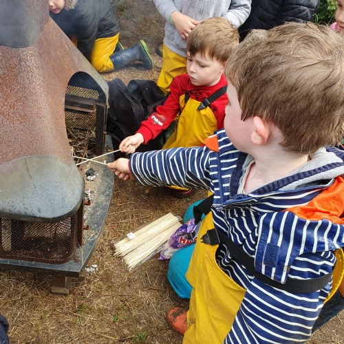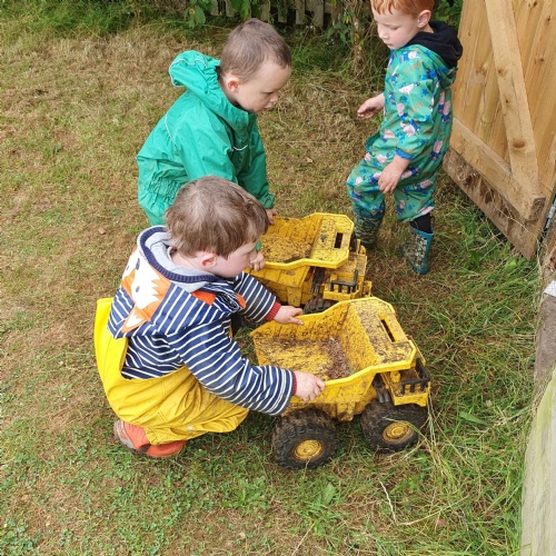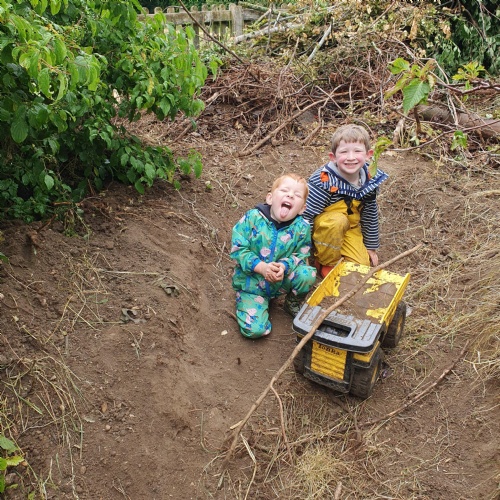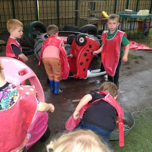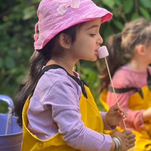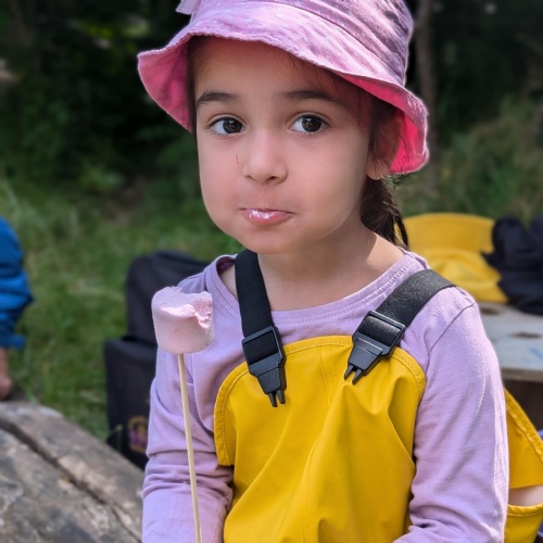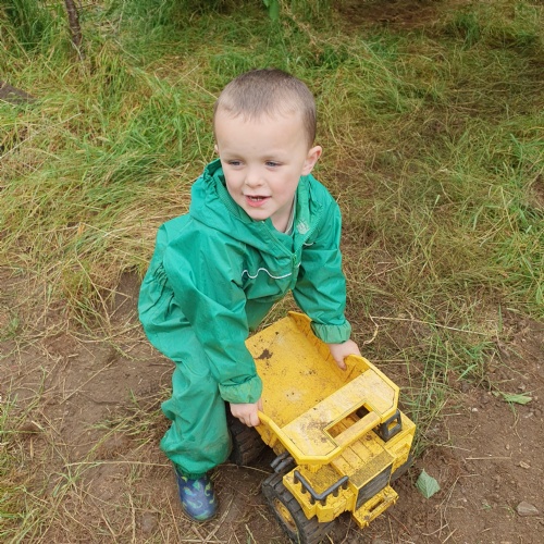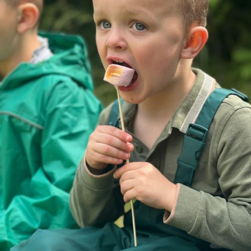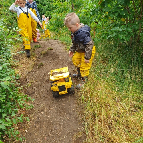 On Friday some of us had our Forest school session and the wet weather added to the fun of toasting marshmallows and pushing the diggers down the muddy hill!