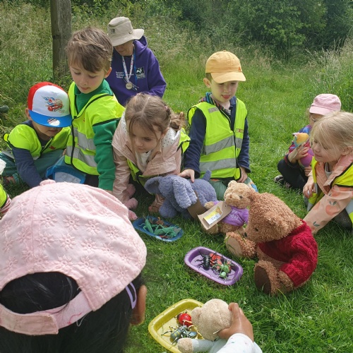 We had a wonderful day at the Sutton Courtenay Outdoor Education Centre on Wednesday, where we went for our Teddy Bear Picnic trip. The sun was shining as we learnt about the four most important things our bears need; shelter, water, air and food. We then had lots of different activities where we could find water, by making our own pretend pond and going on a grub hunt. Then, finally making a shelter in the woods for our bears. The Barn Owls were brilliant on our day out. We even meet a dinosaur called Dennis there! After we enjoyed our own picnic lunch in the woods, we went on a bear hunt using our binoculars, we saw lots of different types of bears hiding in the woods. Of course, when we asked our children what they enjoyed about the day, they all mentioned the mini bus journey! Thank you Mrs Potter for organising the bus and being our driver for the day.