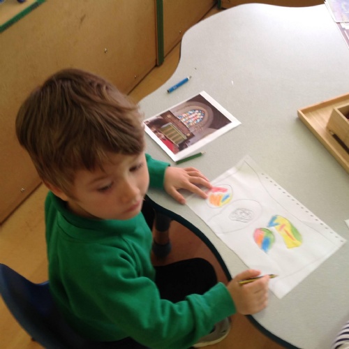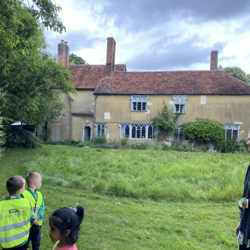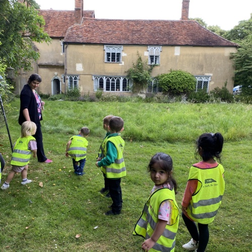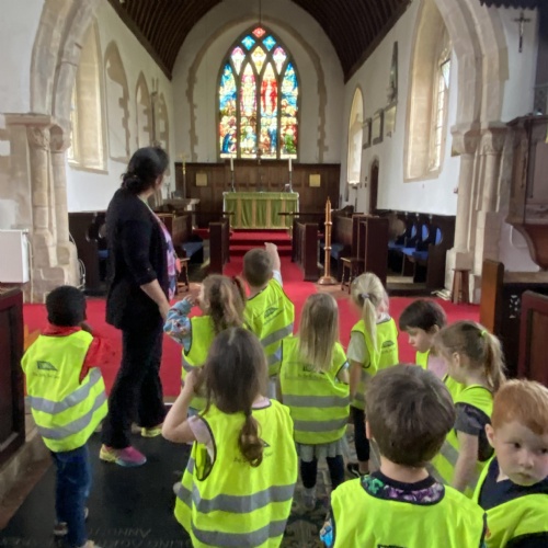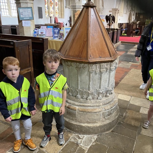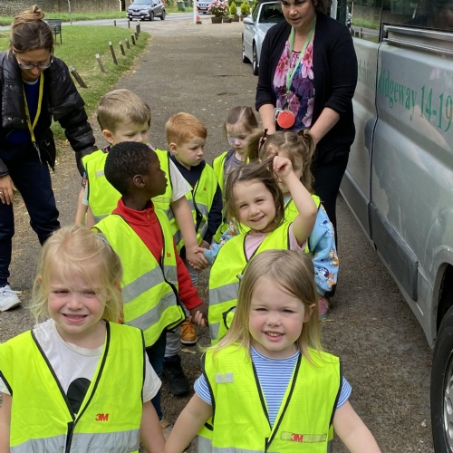 It has been a very busy week as we went on the minibus to the village Green. As part of the local history week we wanted to see how the the Green had changed over time. We had looked at old black and white photographs to see what is the same and what is new. The Barn Owls had their photograph taken by the tall tree that was very small in the original photograph. We enjoyed exploring All Saints church and The Abbey.