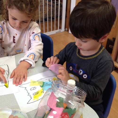 This week we have been reading the book The Colour Monster goes to School by Anna Llenas. He has lot of different feelings about starting school. The Barn Owls have been exploring those feelings through stories, art and music. Our role play area this week has been the school uniform and book bags. Our transition day on Wednesday went very well. Our older Barn Owls were very excited to visit the Robins class, and our younger Barn Owls enjoyed being the only children left in the class!